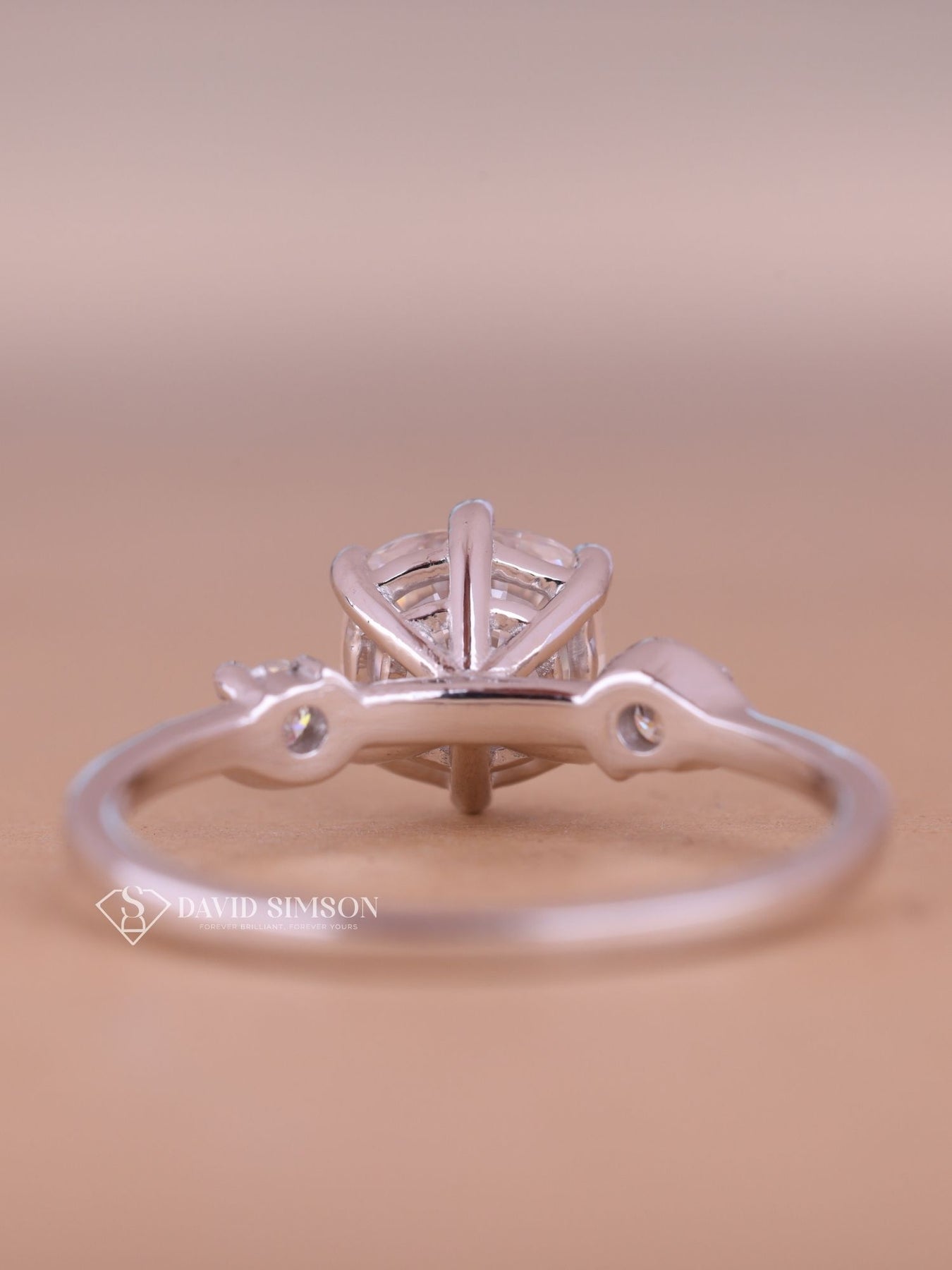 1.0CT-2.0CT Cushion Cut Moissanite Unique Three Stone Diamond Engagement Ring