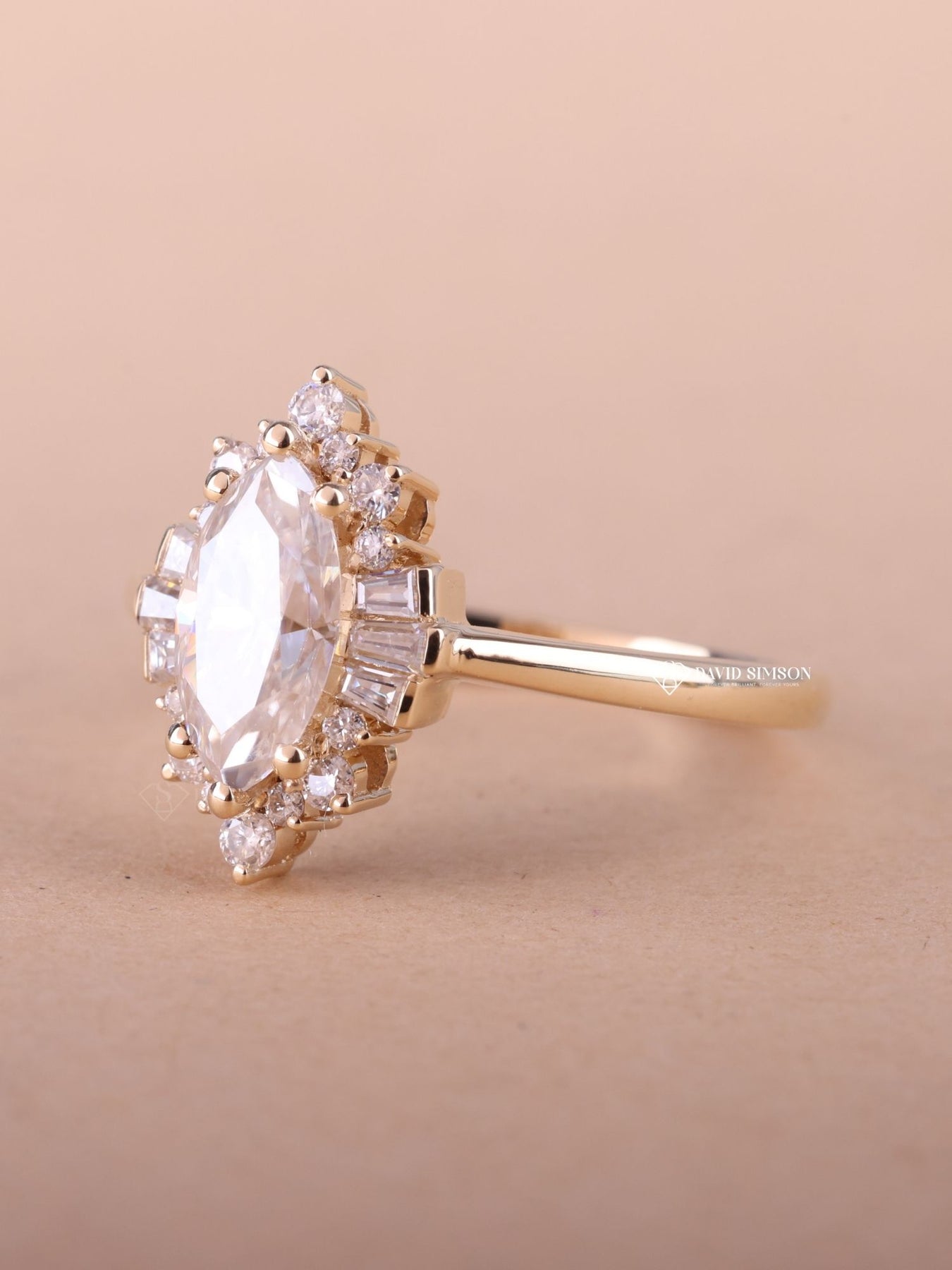 1.0CT-2.0CT Marquise Cut Moissanite Diamond Cluster Engagement Ring
