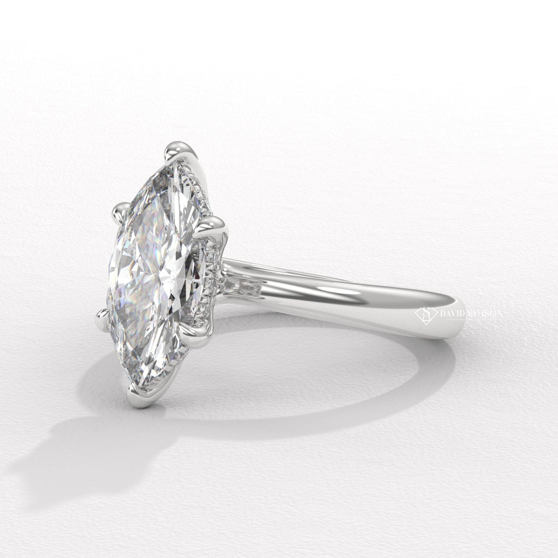 1.0CT-2.0CT Marquise Moissanite Solitaire Diamond Hidden Halo Engagement Ring