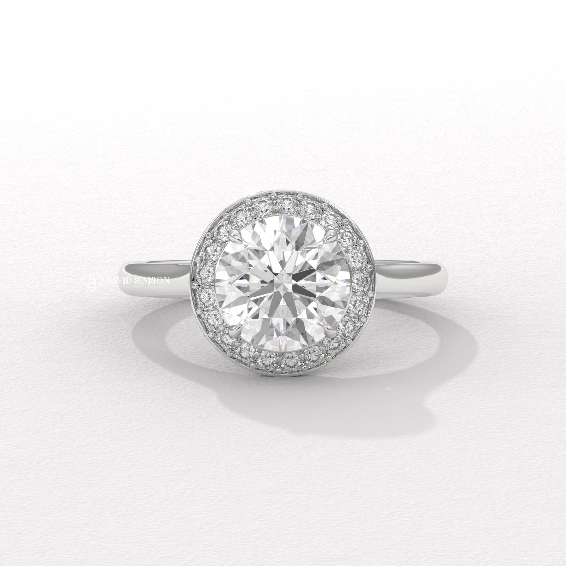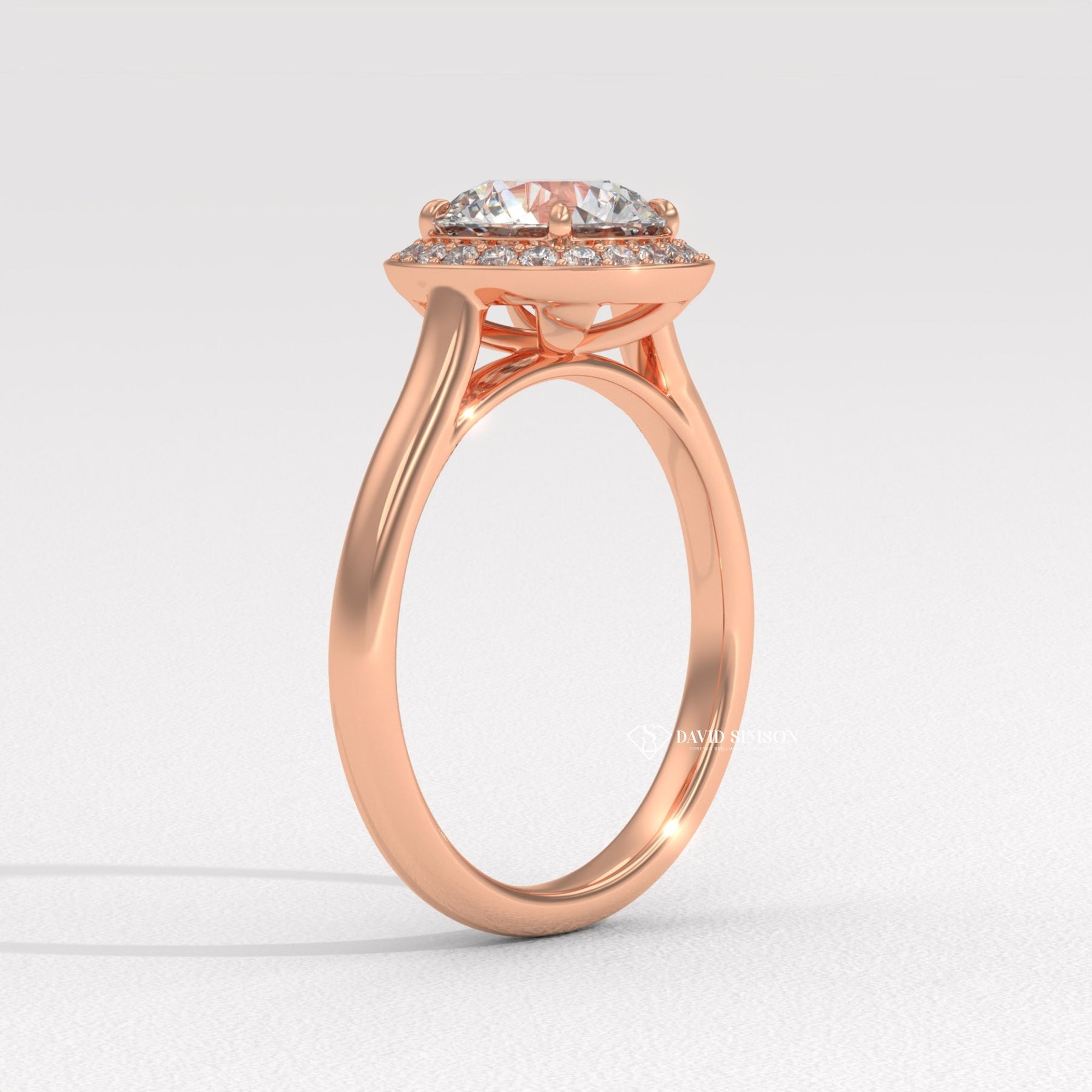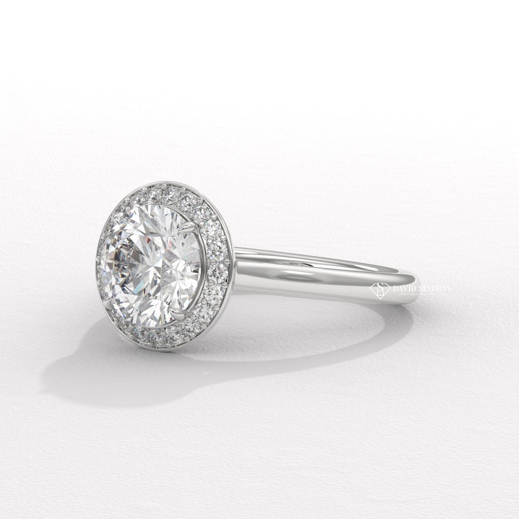 1.0CT-2.0CT Round Cut Moissanite Channel Halo Diamond Solitaire Engagement Ring