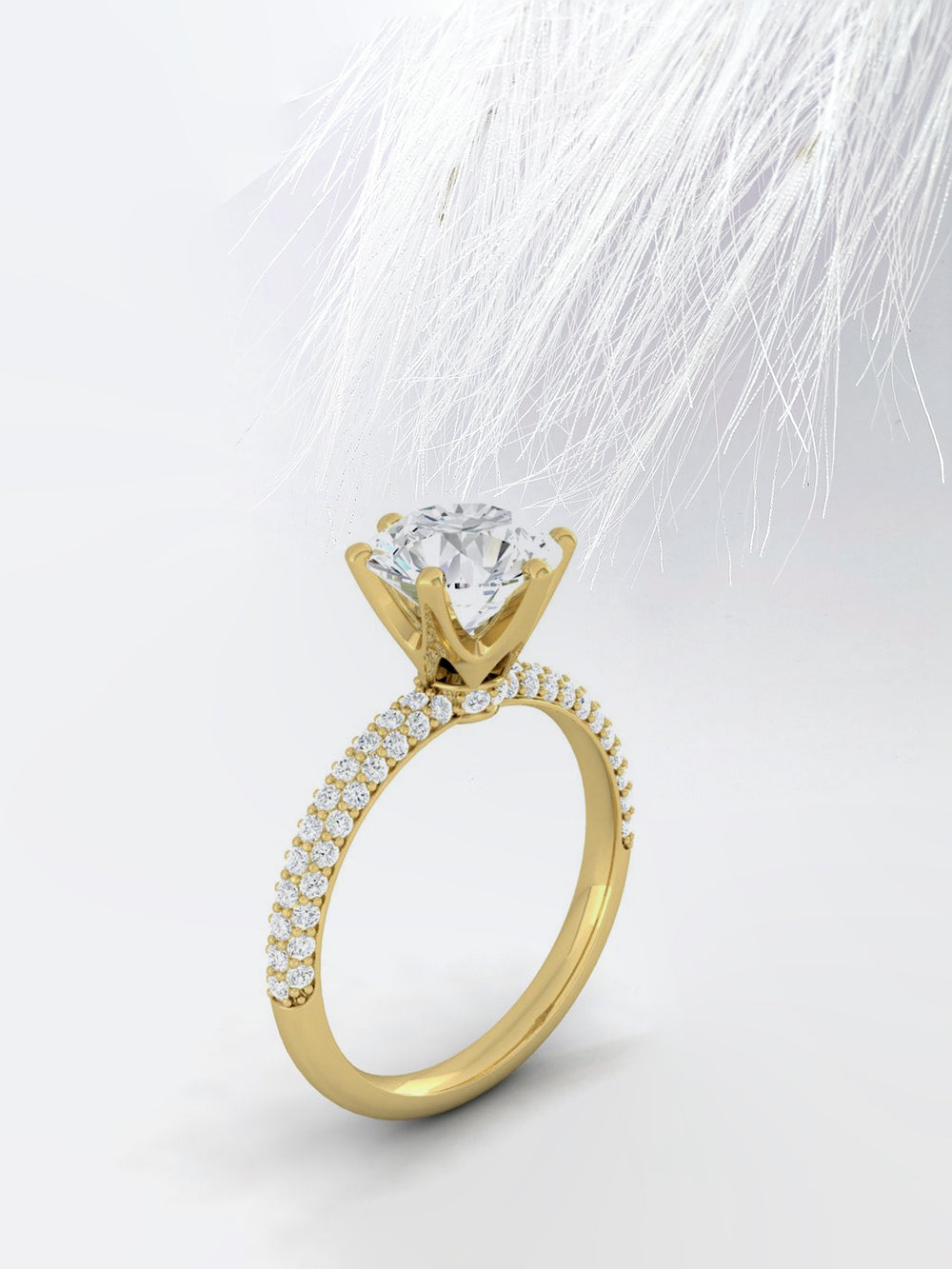1.25CT Round Cut Moissanite Three Side Pave Engagement Ring