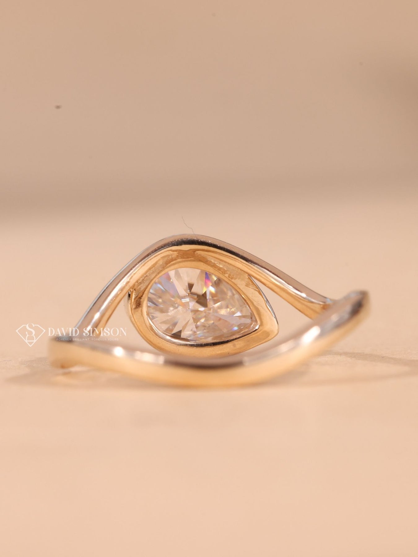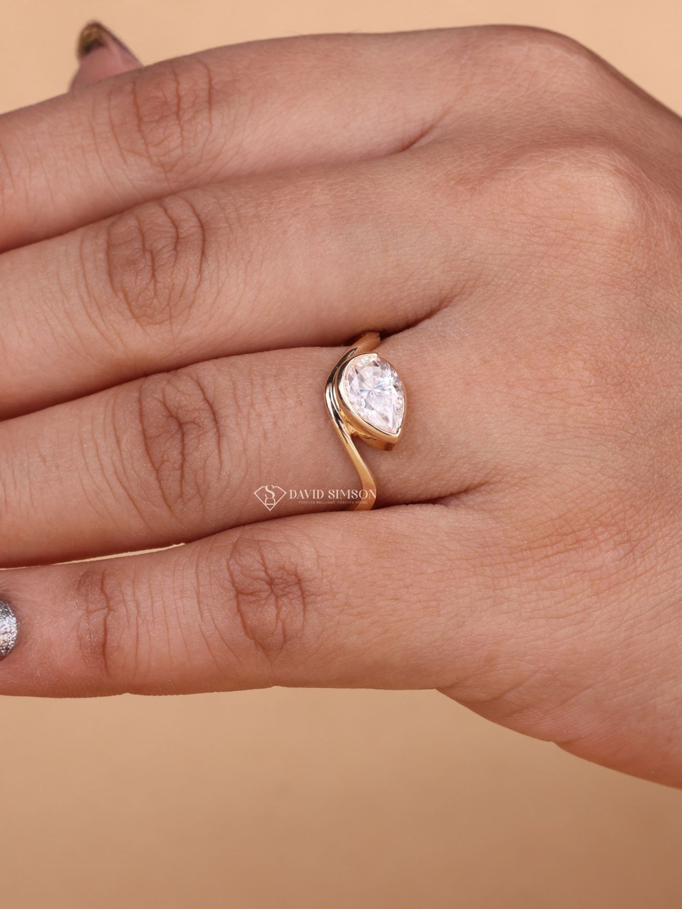 1.50CT-2.50CT Bezel Set Pear Cut Moissanite Diamond Engagement Ring