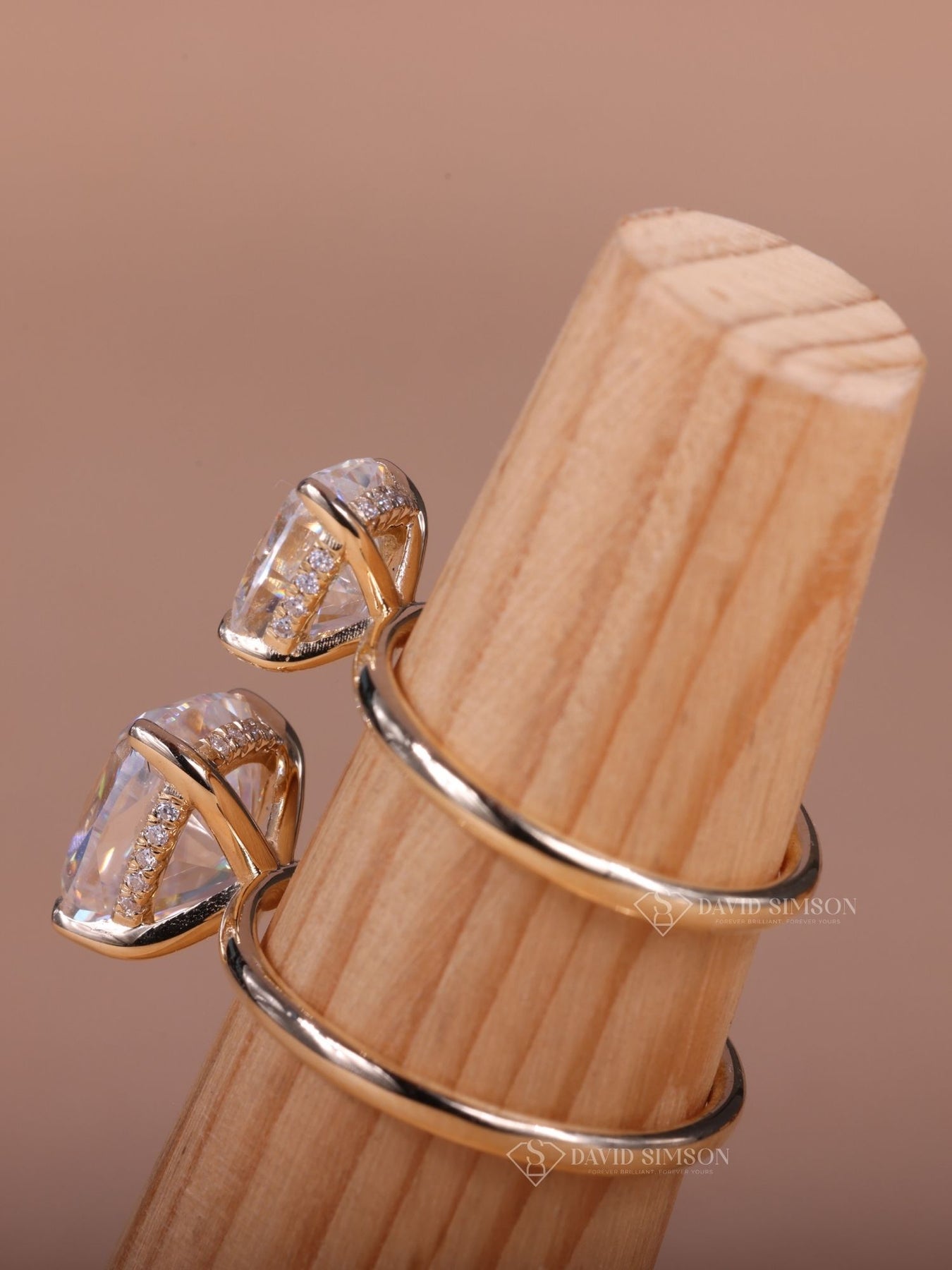 1.50CT-2.50CT Cushion Cut Moissanite Diamond Hidden Halo Engagement Ring