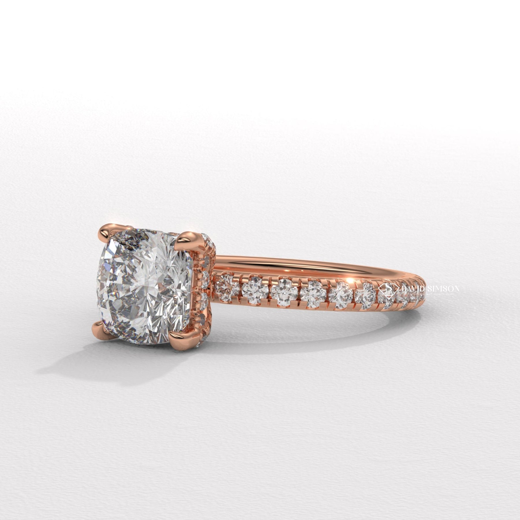 1.50CT-2.50CT Cushion Moissanite Hidden Halo Diomond Engagement Ring