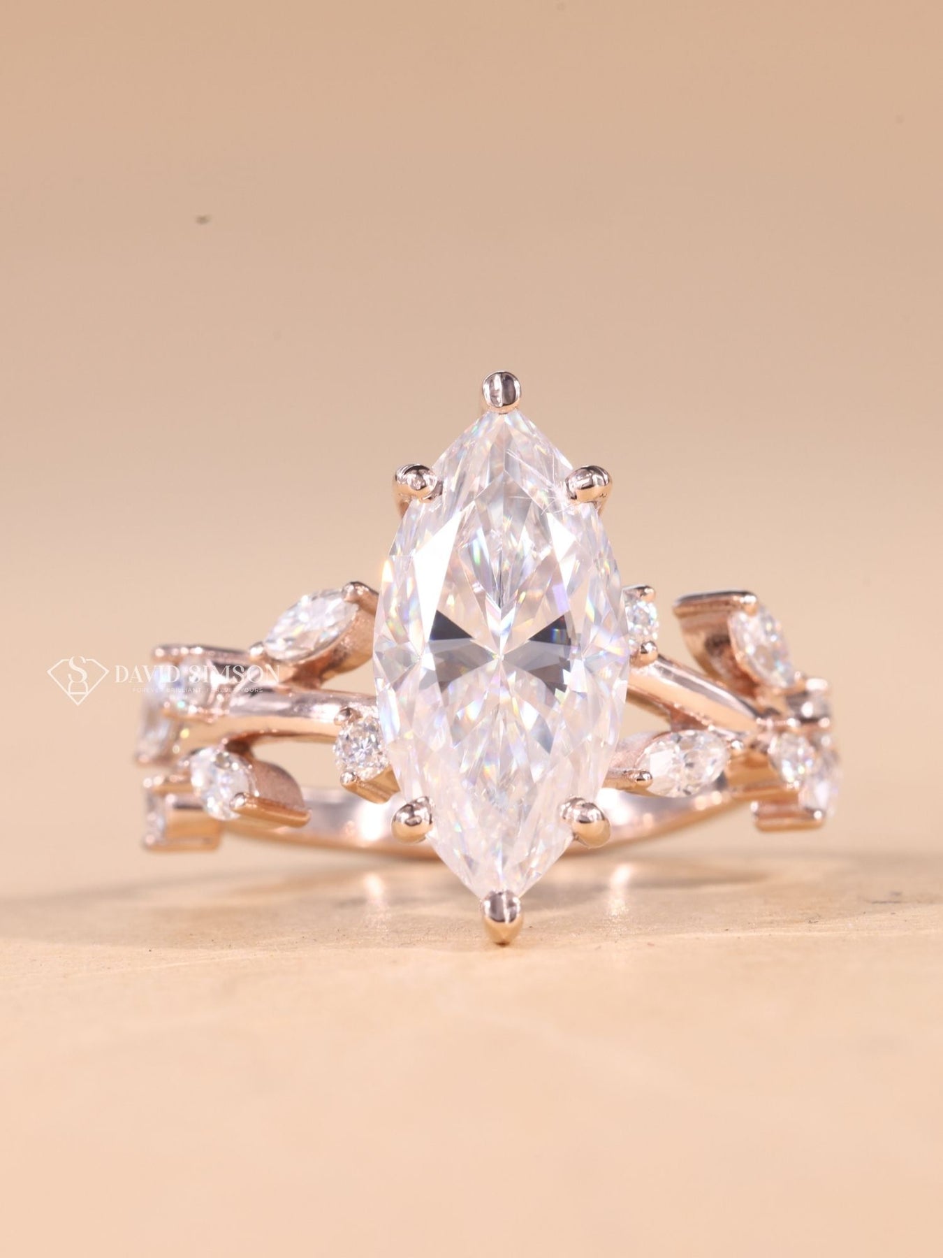 1.50CT-2.50CT Marquise Cut Moissanite Diamond Nature Inspired Engagement Ring