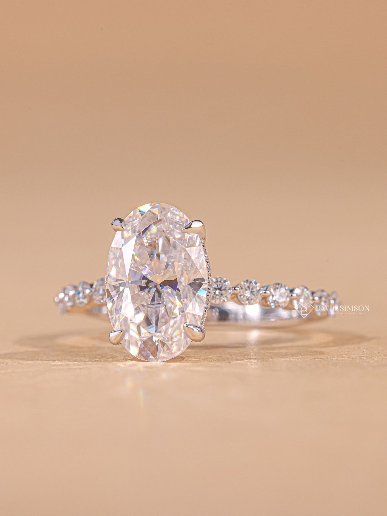1.50CT-2.50CT Oval Cut Diamond Moissanite Pave & Hidden Halo Engagement Ring