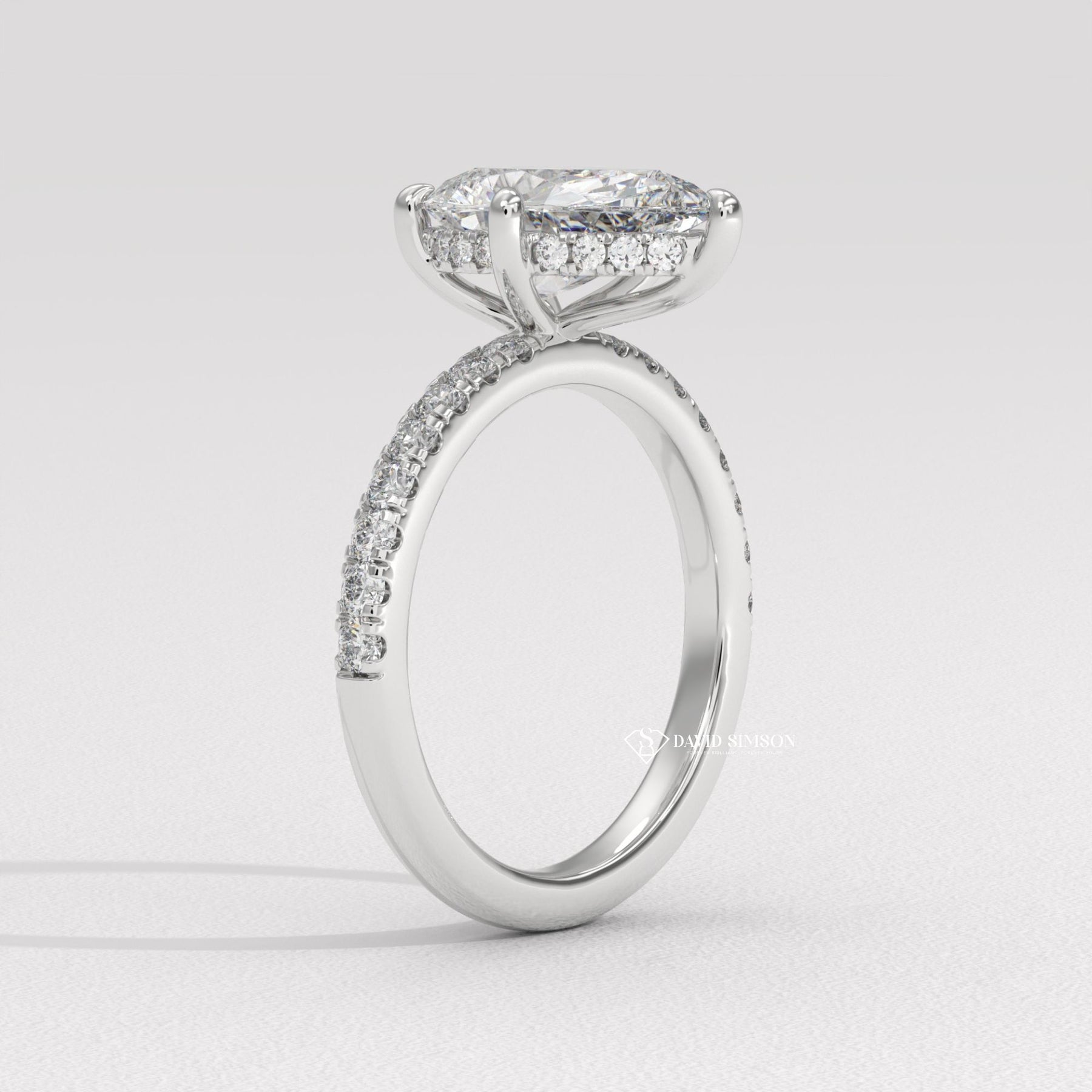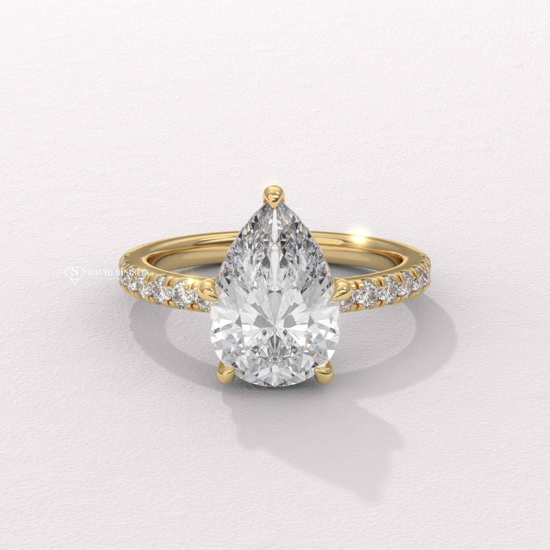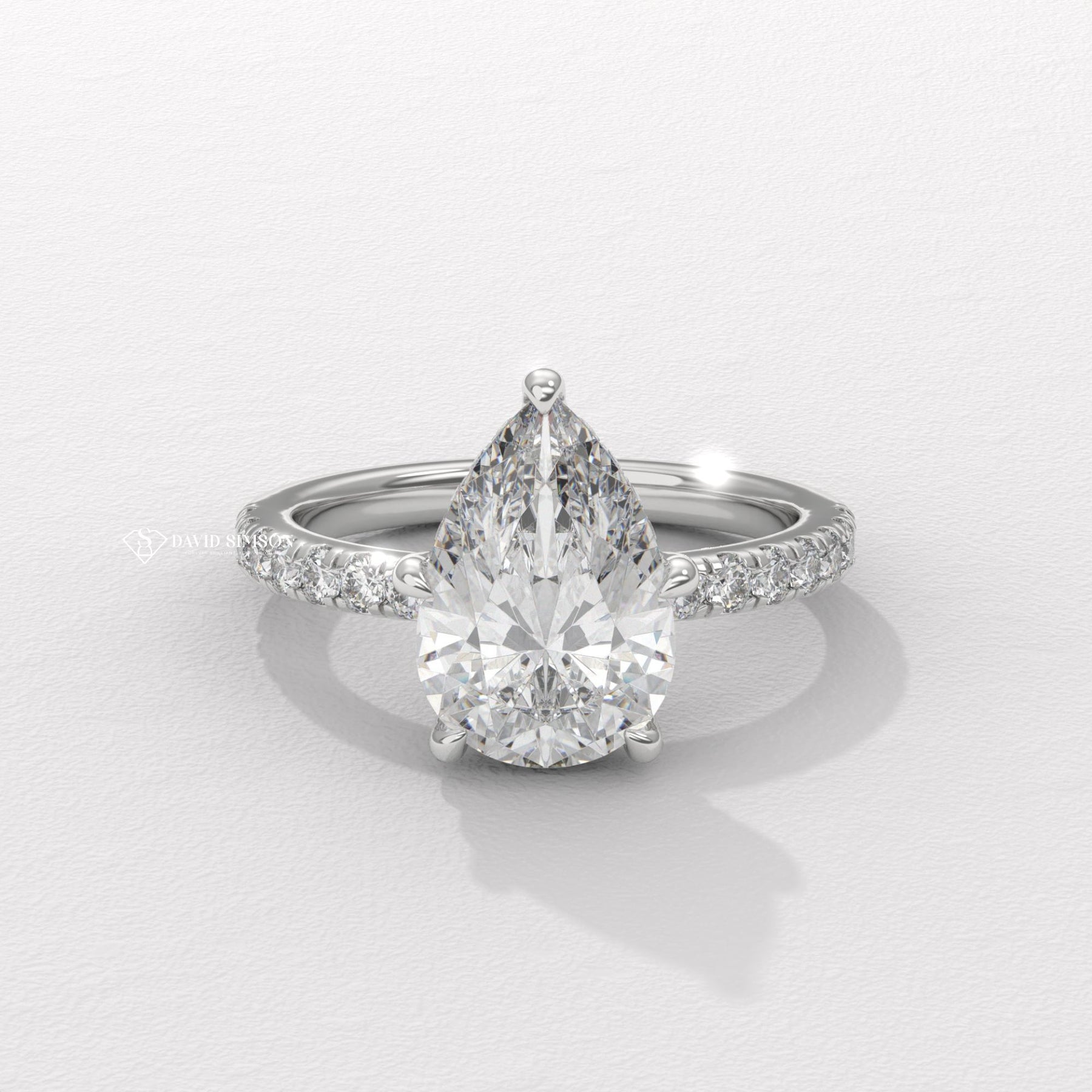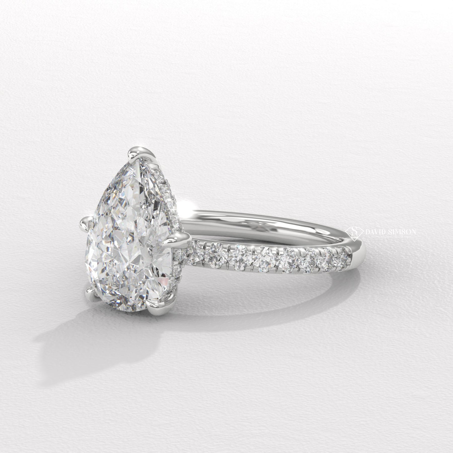 1.50CT-2.50CT Pear Moissanite Diamond Hidden Halo Engagement Ring