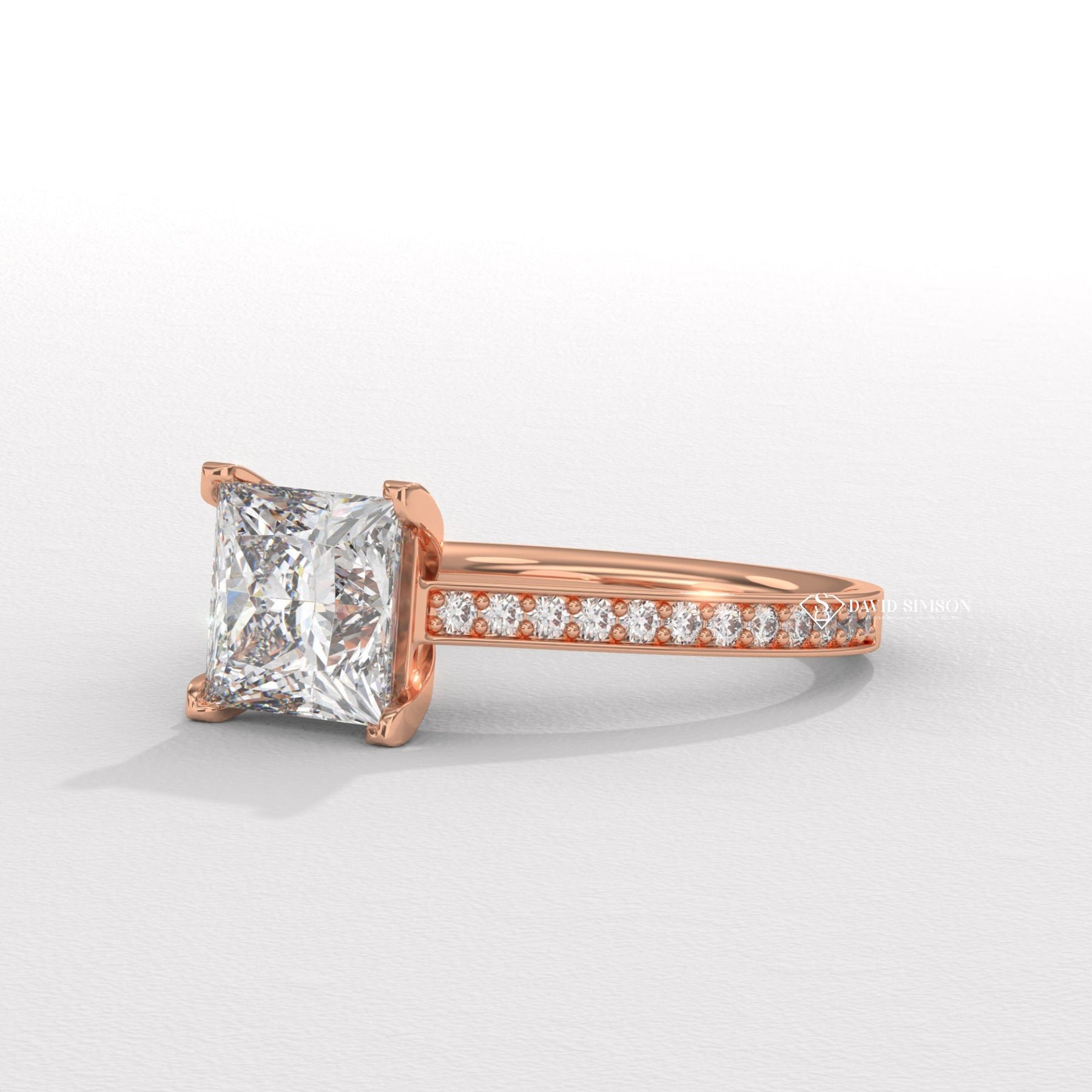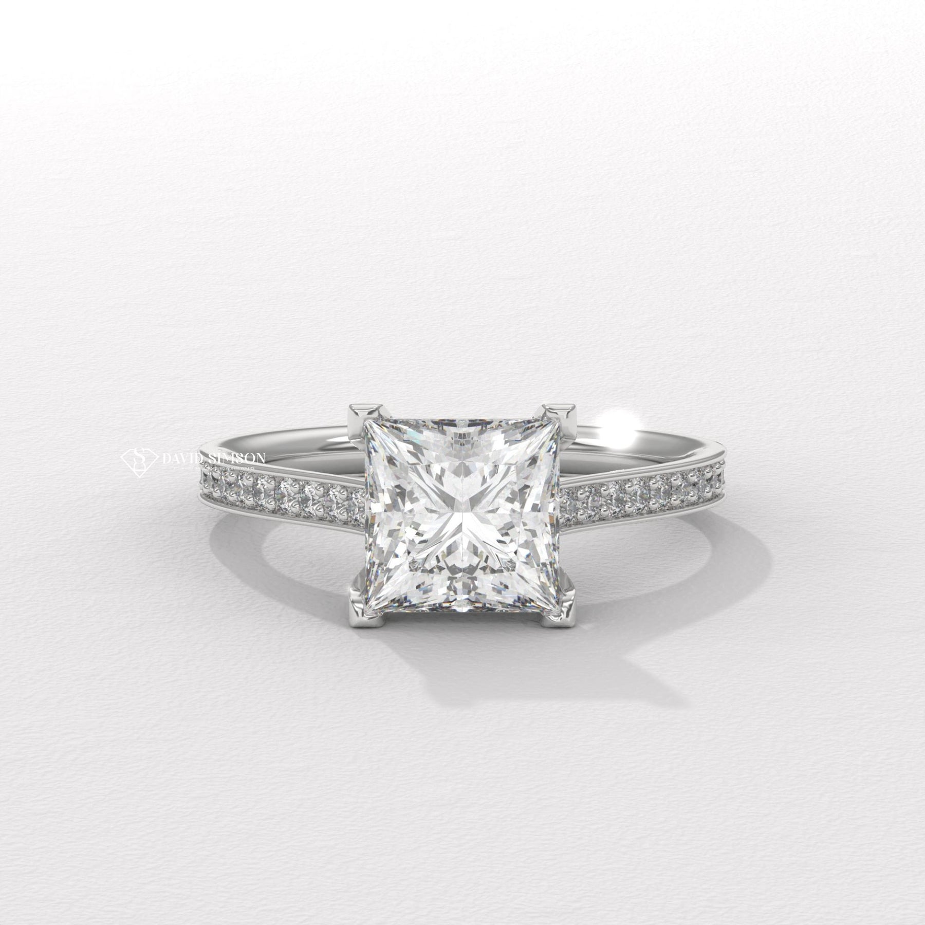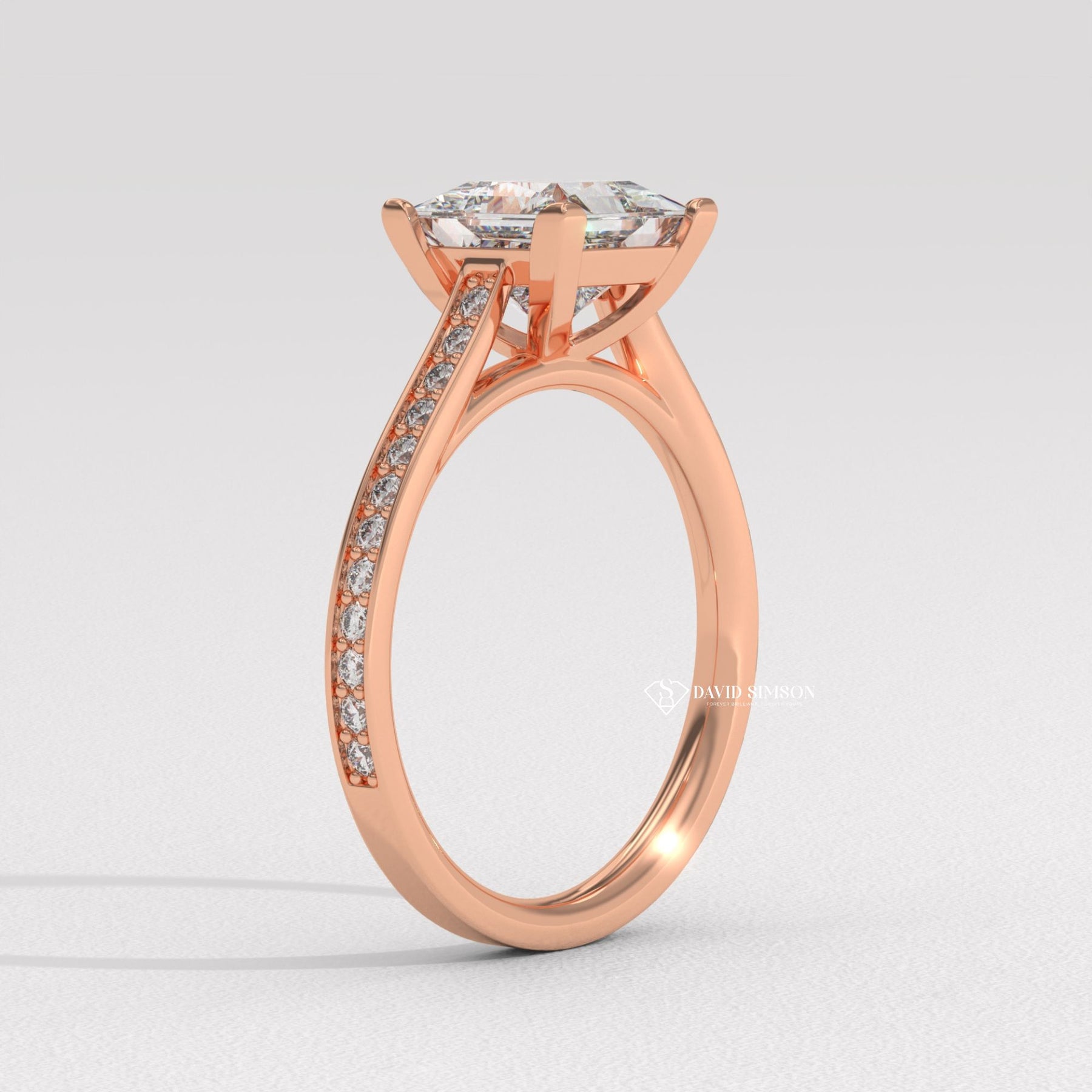 Princess split shank engagement ring, Princess channel set engagement ring, Princess swirl engagement ring, Princess unique engagement ring, Princess traditional engagement ring,