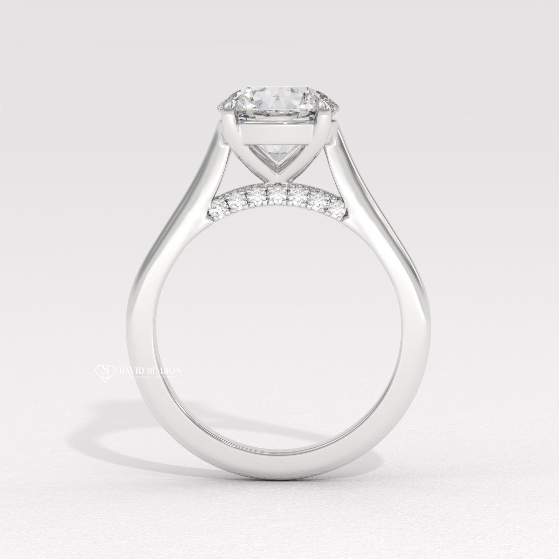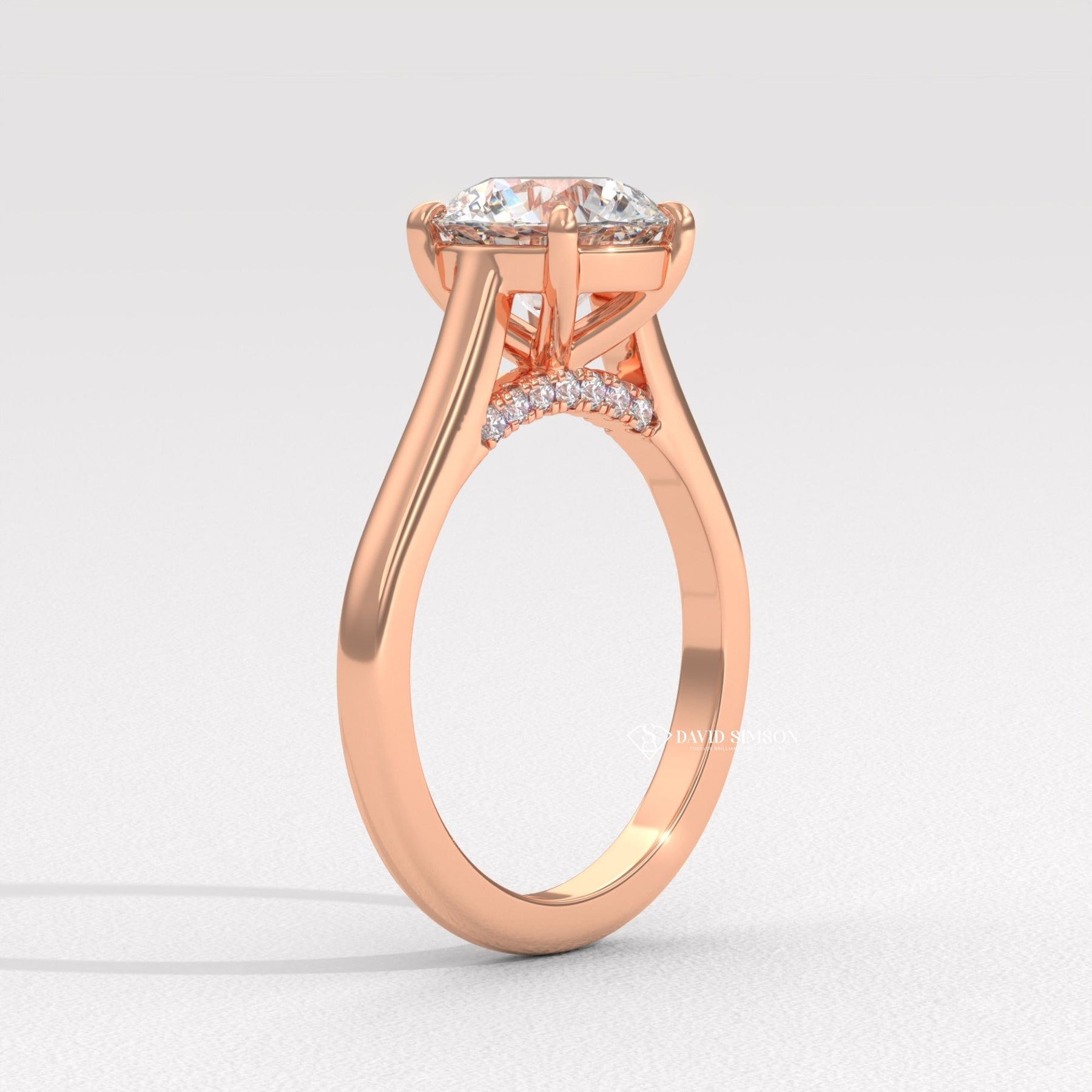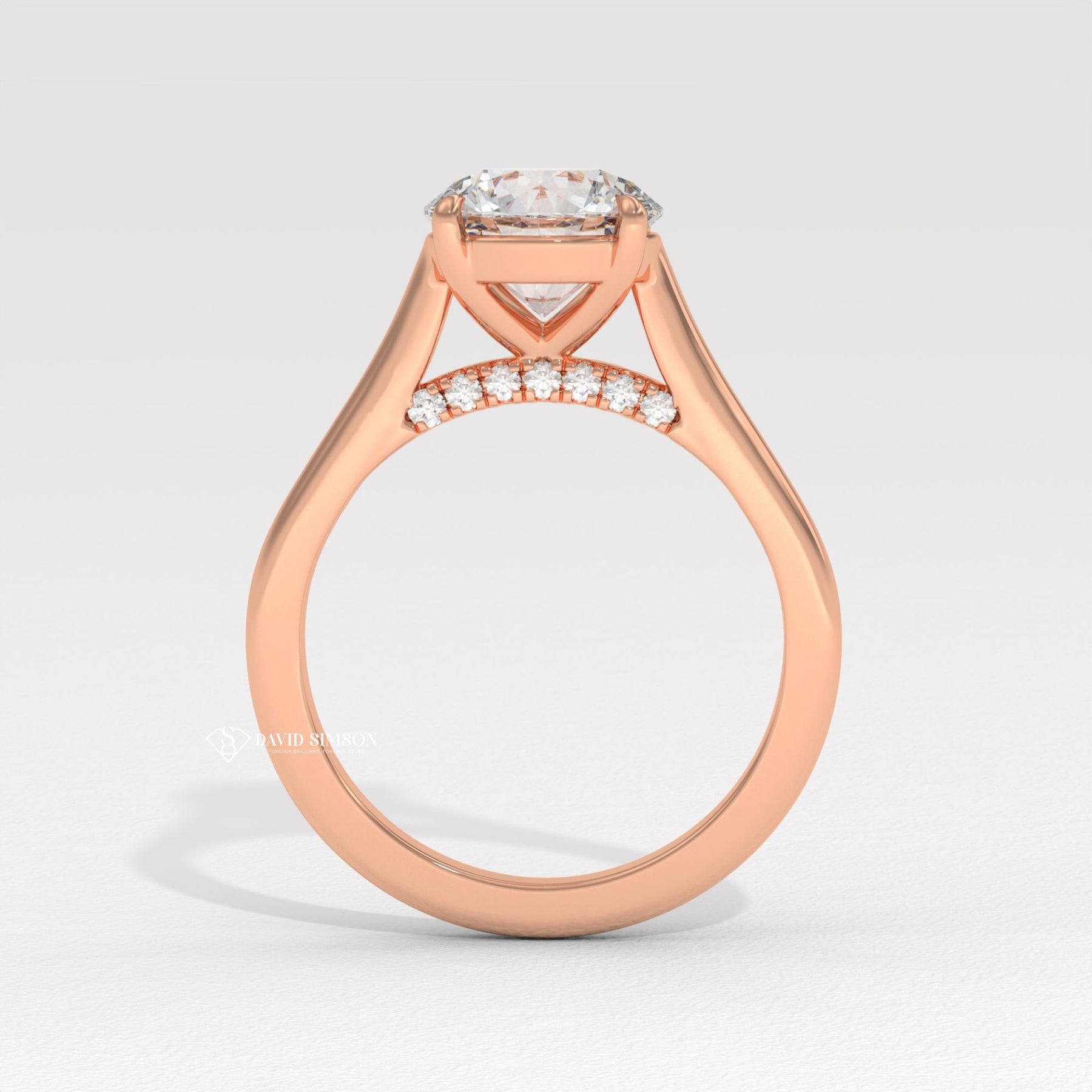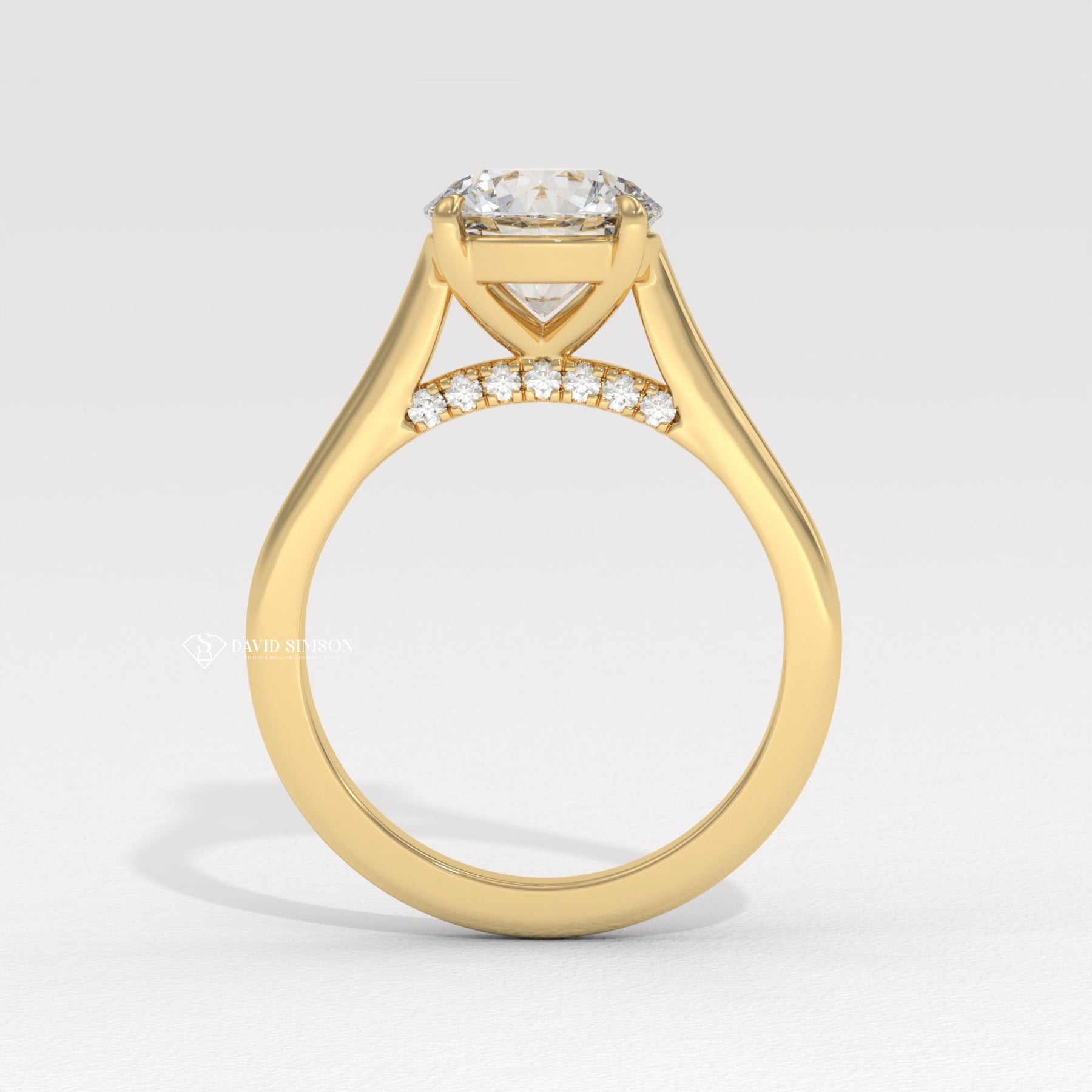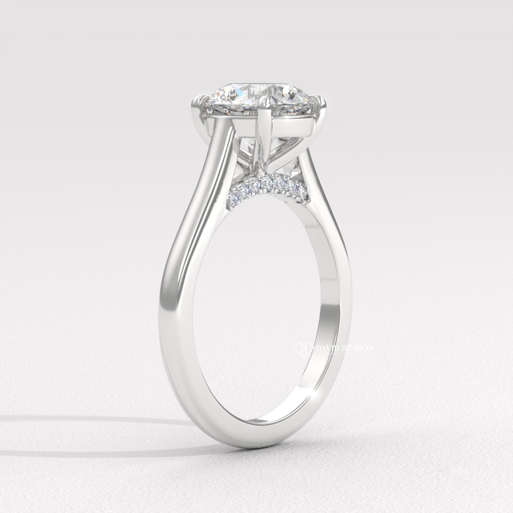 This 1.50CT to 2.50CT round moissanite bridge set diamond solitaire engagement ring is a timeless expression of elegance and refined beauty. The brilliant round cut moissanite center stone delivers exceptional fire and sparkle, creating a radiant focal point. A beautifully crafted diamond bridge adds subtle brilliance and architectural detail, enhancing the ring’s profile while maintaining a classic solitaire look. Designed for everyday comfort and lasting durability, this engagement ring blends modern craftsmanship with romantic sophistication, making it a perfect choice for a meaningful proposal and a lifetime of love and celebration.