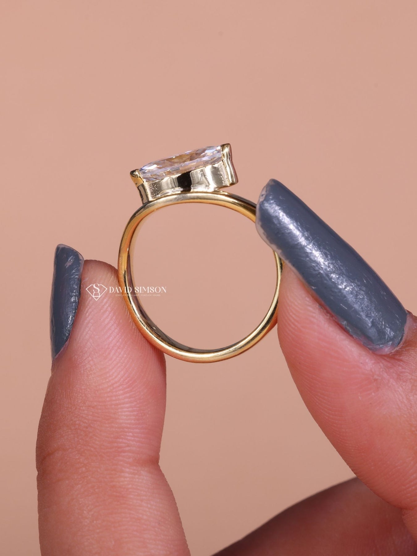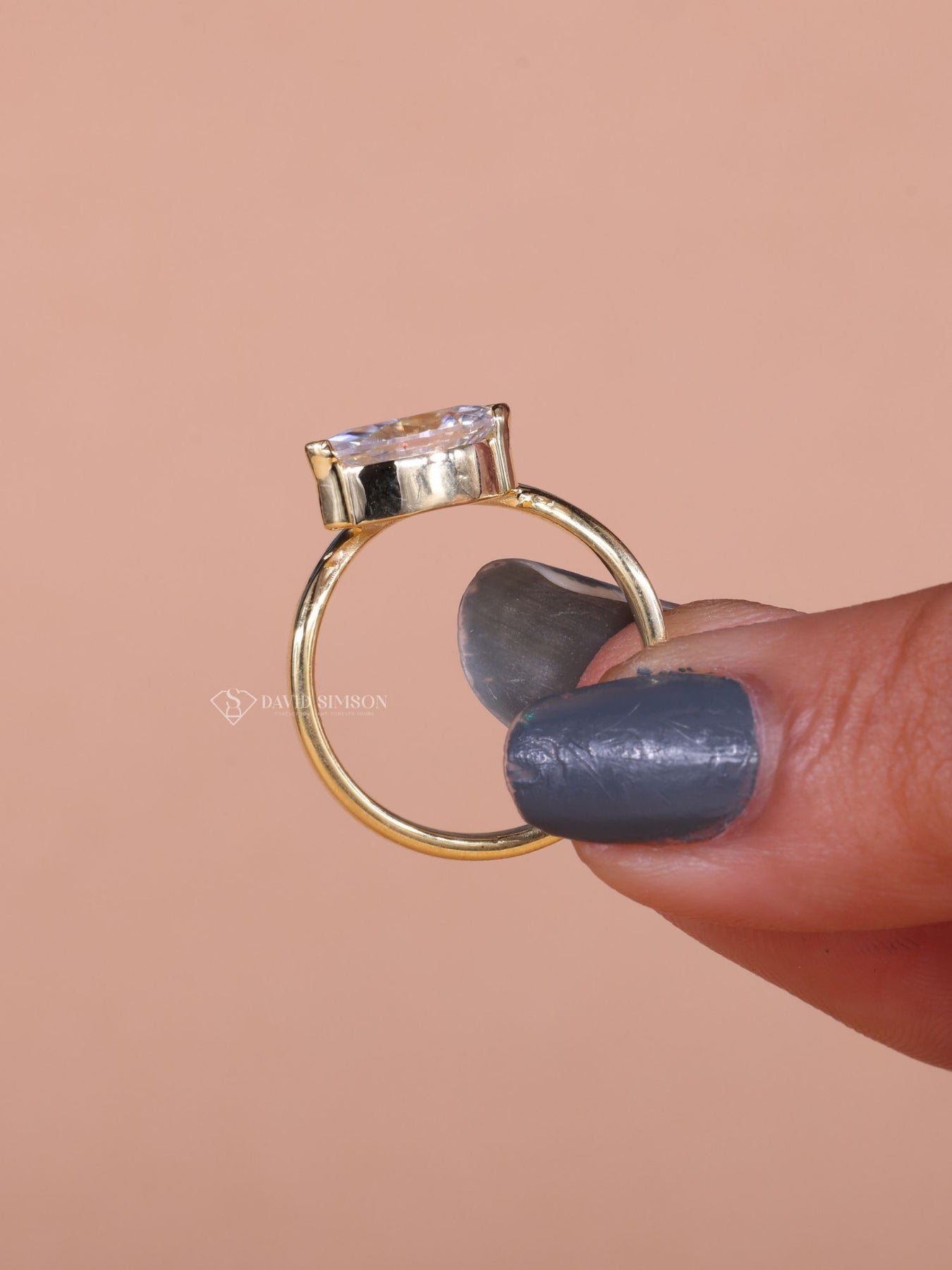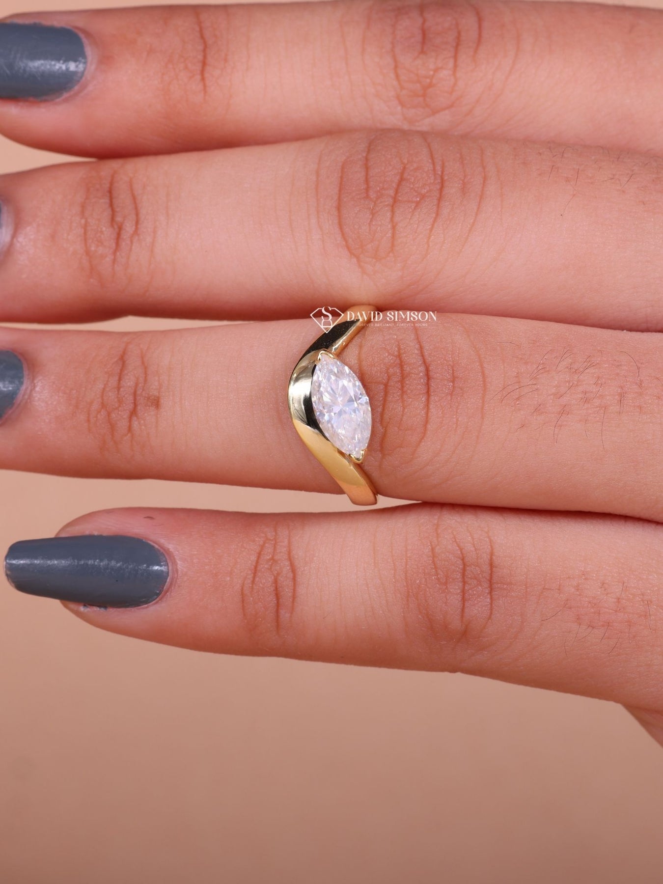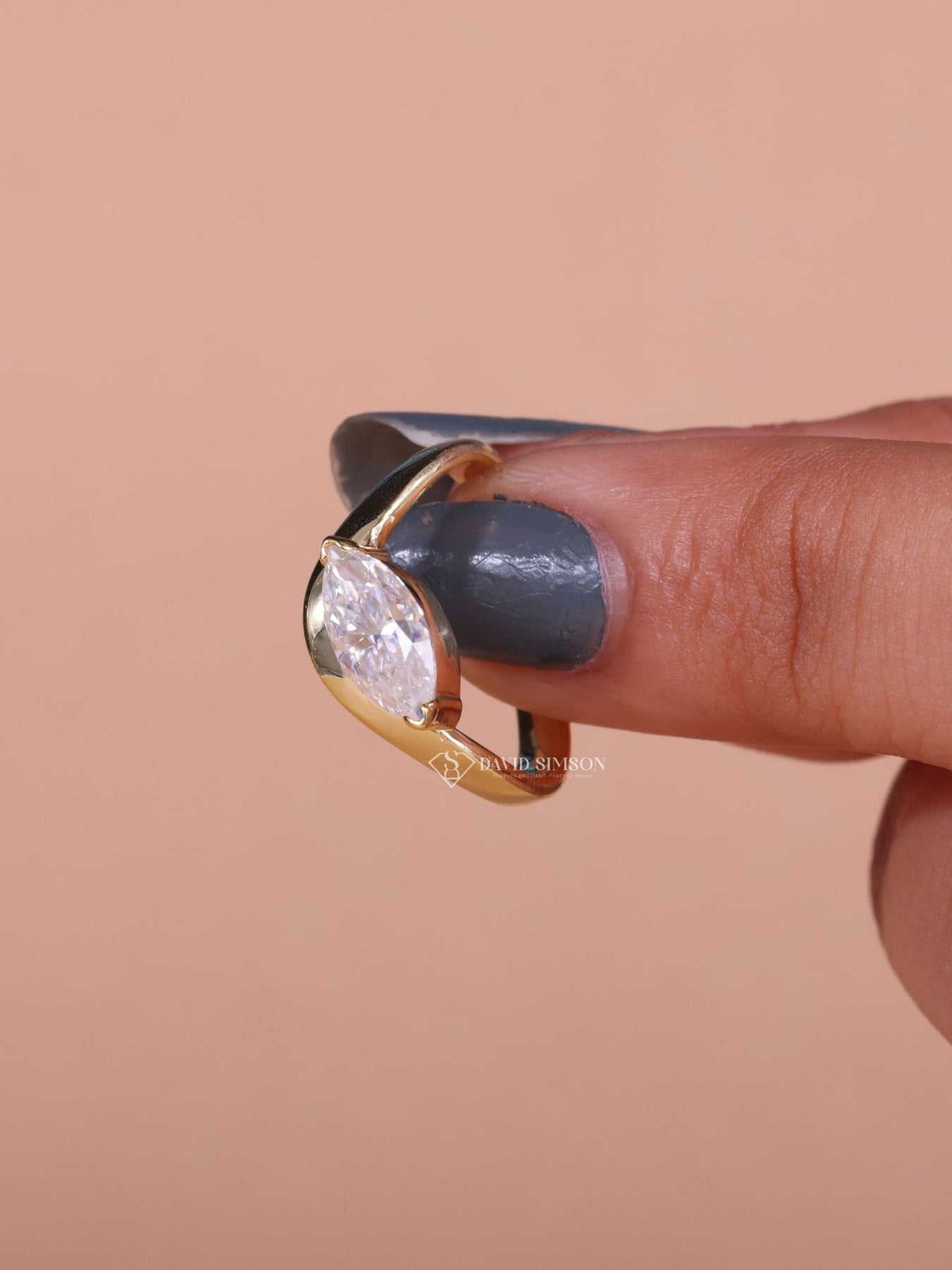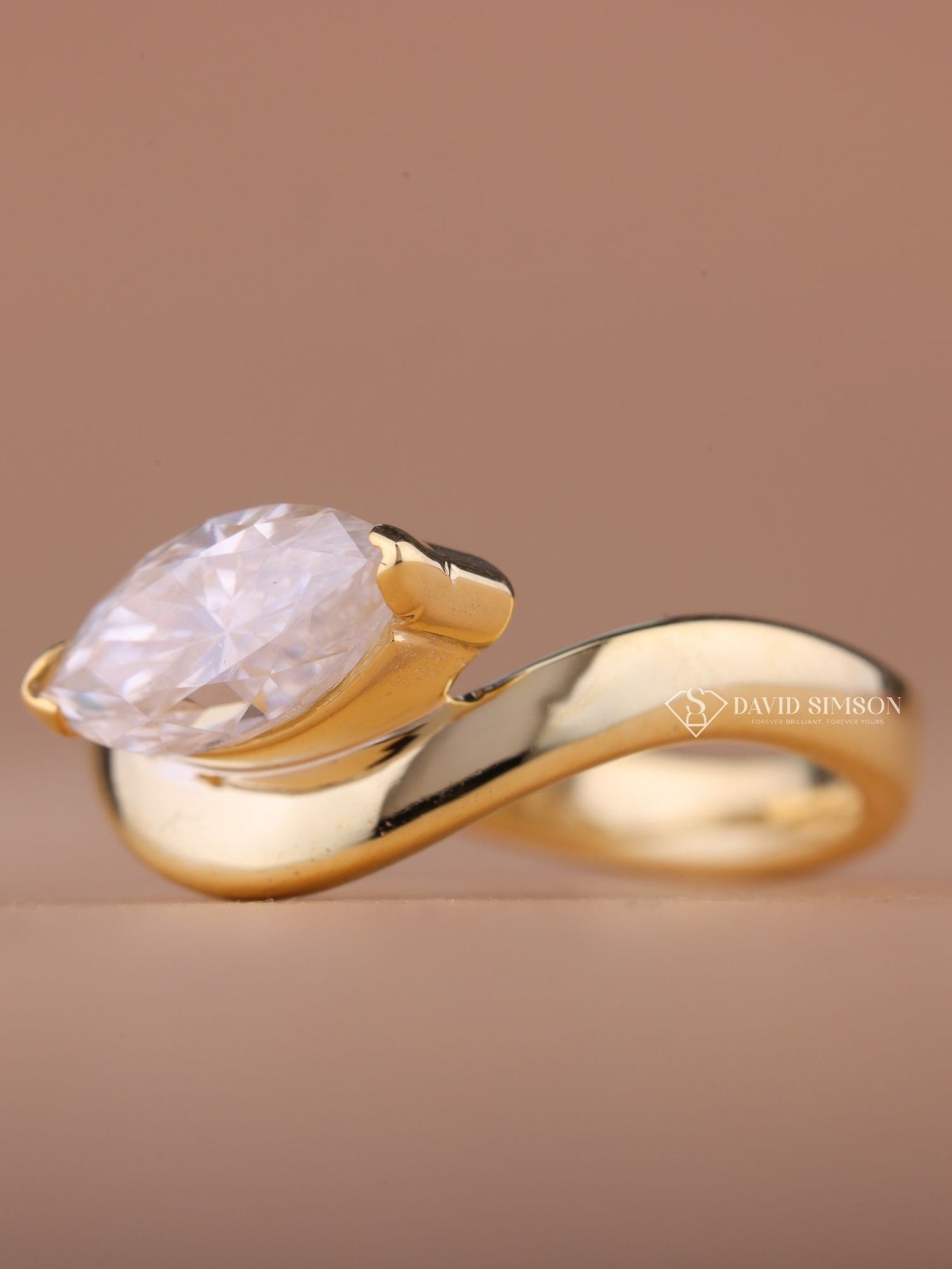 1.50CT-3.50CT Marquise Cut Moissanite East West Wave set Engagement Ring