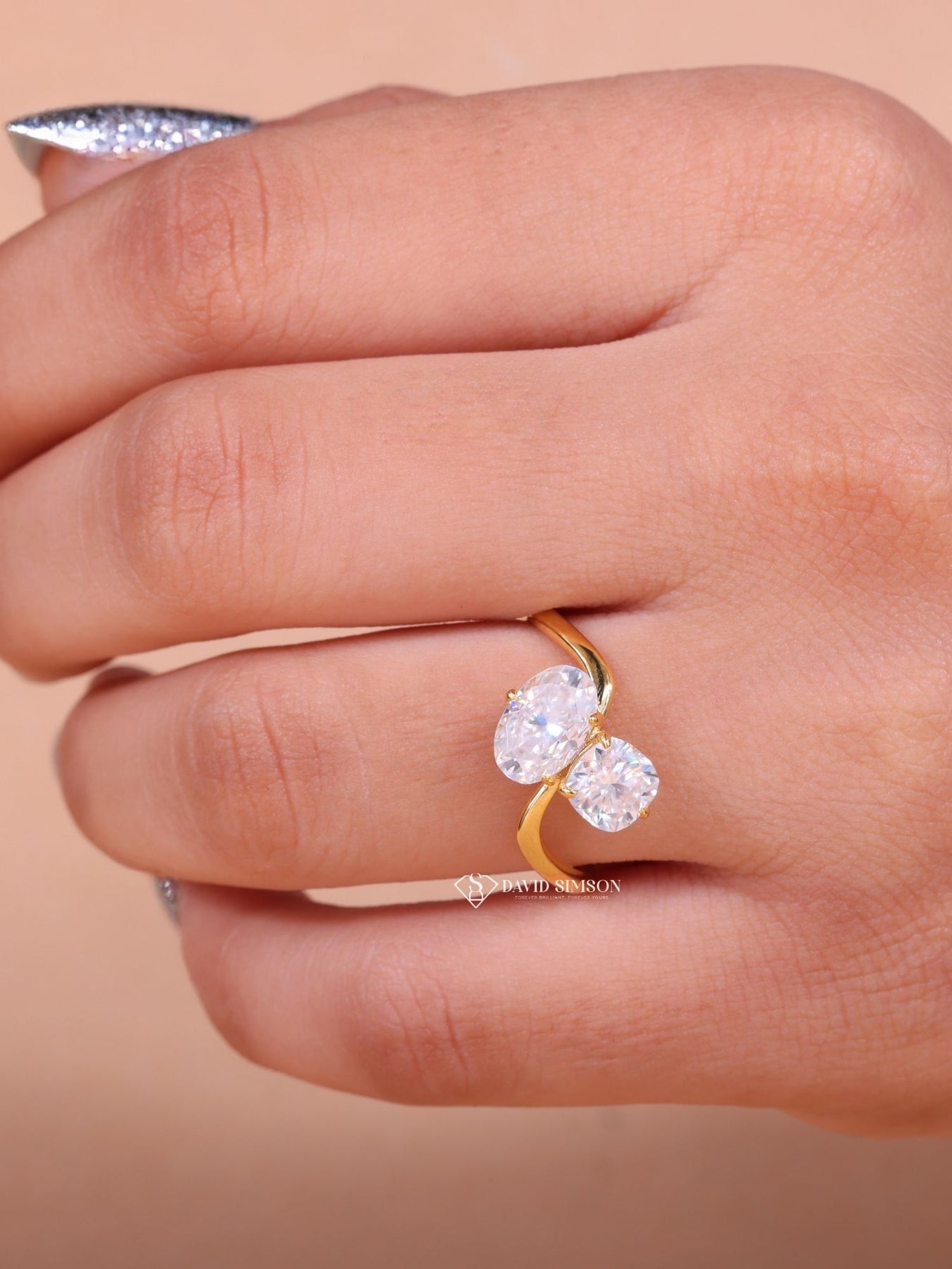 1.50CT Oval & 1.0CT Cushion Cut Moissanite Toi et Moi Diamond Engagement Ring