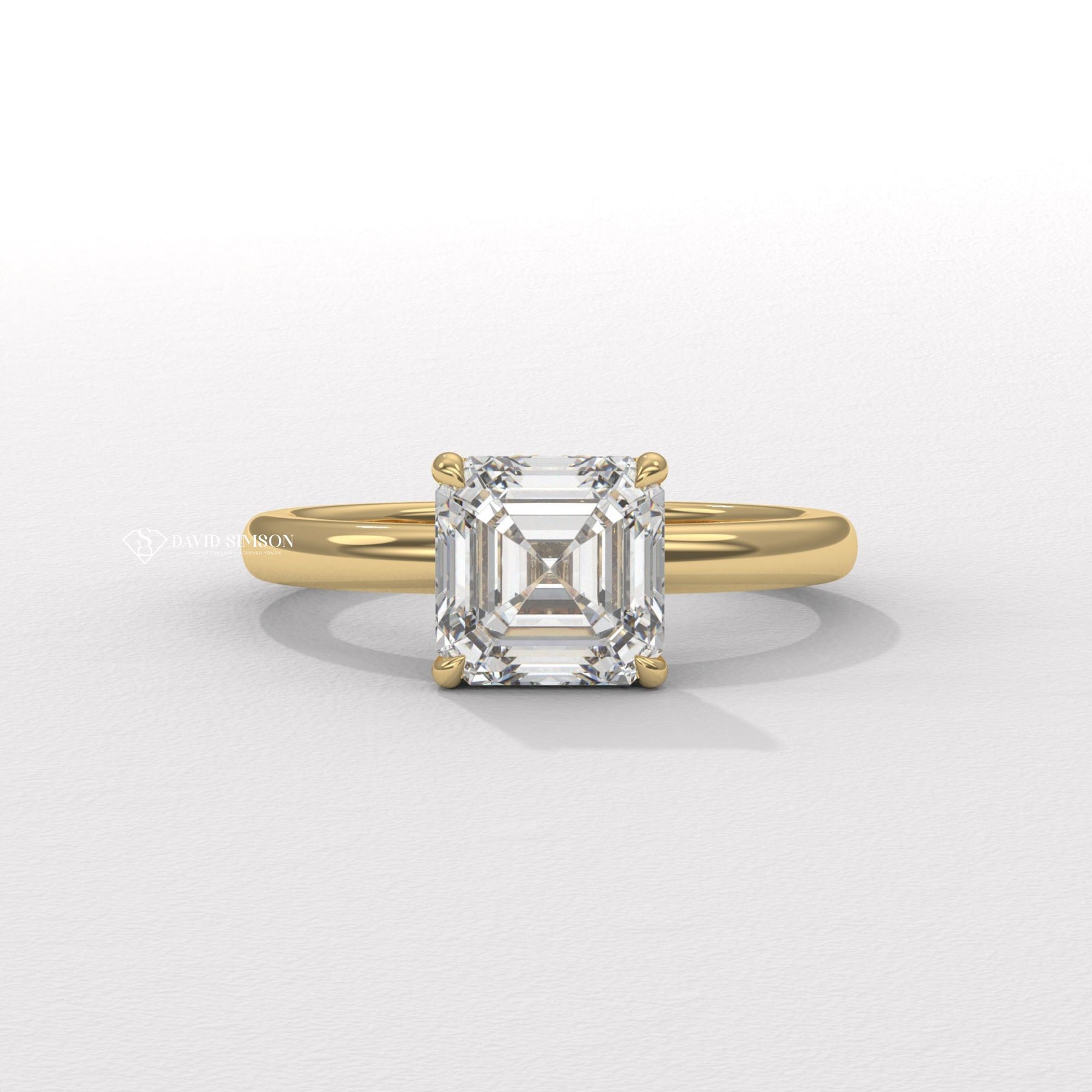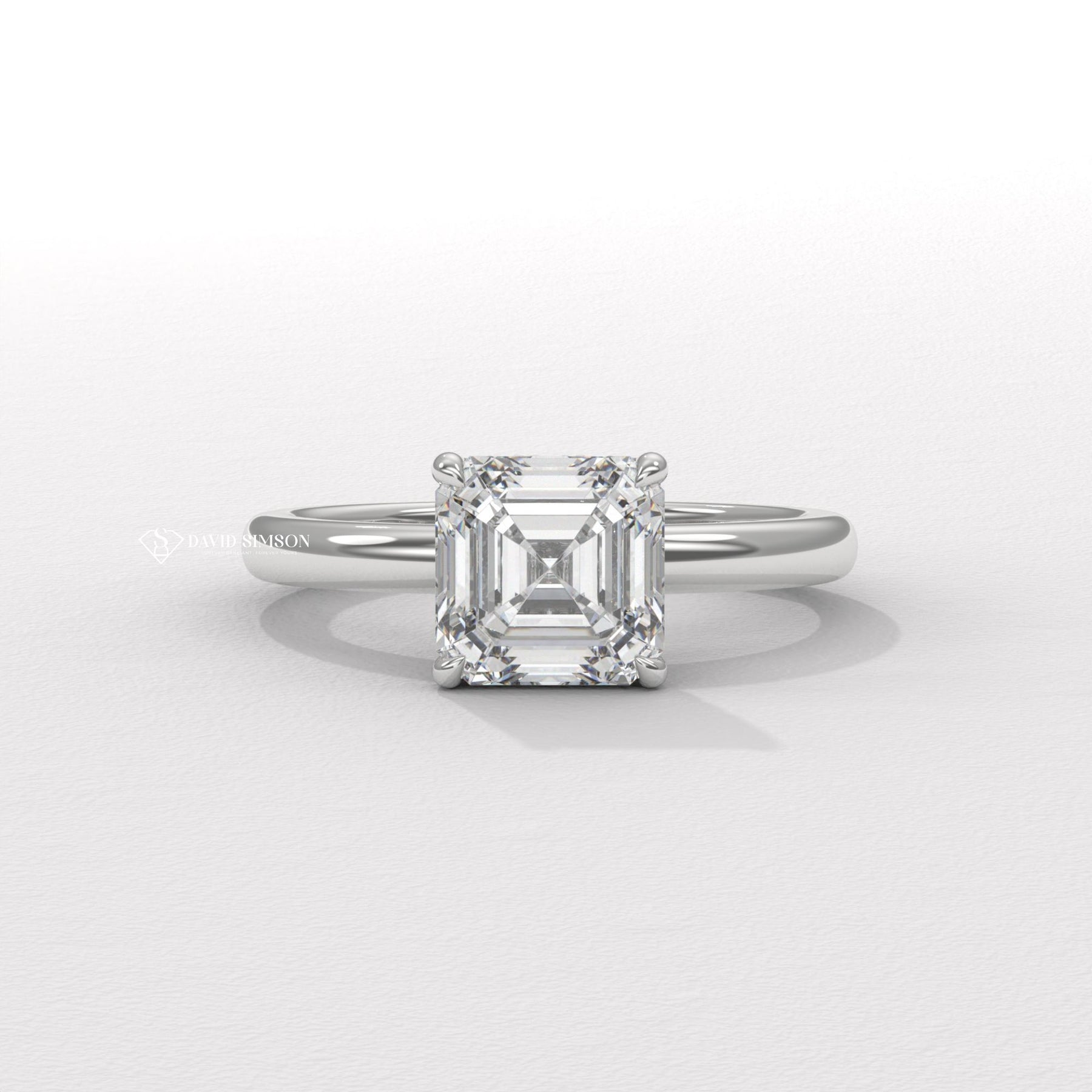 This 2.0CT to 3.0CT Asscher moissanite diamond hidden halo engagement ring is a stunning blend of vintage elegance and modern luxury. The iconic Asscher cut moissanite center stone showcases crisp step facets and mesmerizing depth, creating a bold yet refined look. A delicate hidden halo of sparkling diamonds beneath the center stone enhances brilliance from every angle while preserving the clean, sophisticated silhouette. Expertly crafted for durability, comfort, and lasting beauty, this engagement ring offers ethical luxury, timeless charm, and exceptional sparkle, making it a perfect choice for a memorable proposal and a lifetime of love.