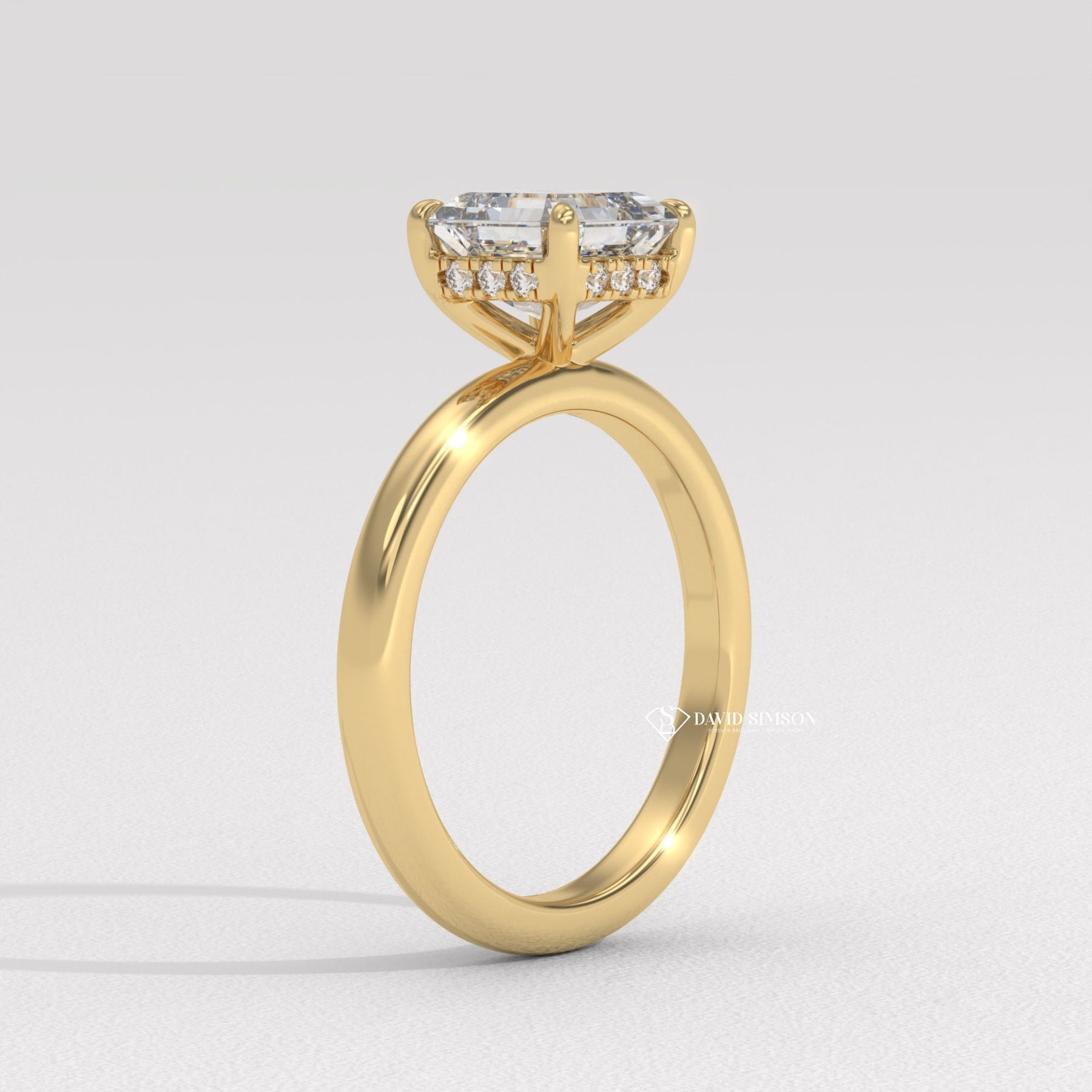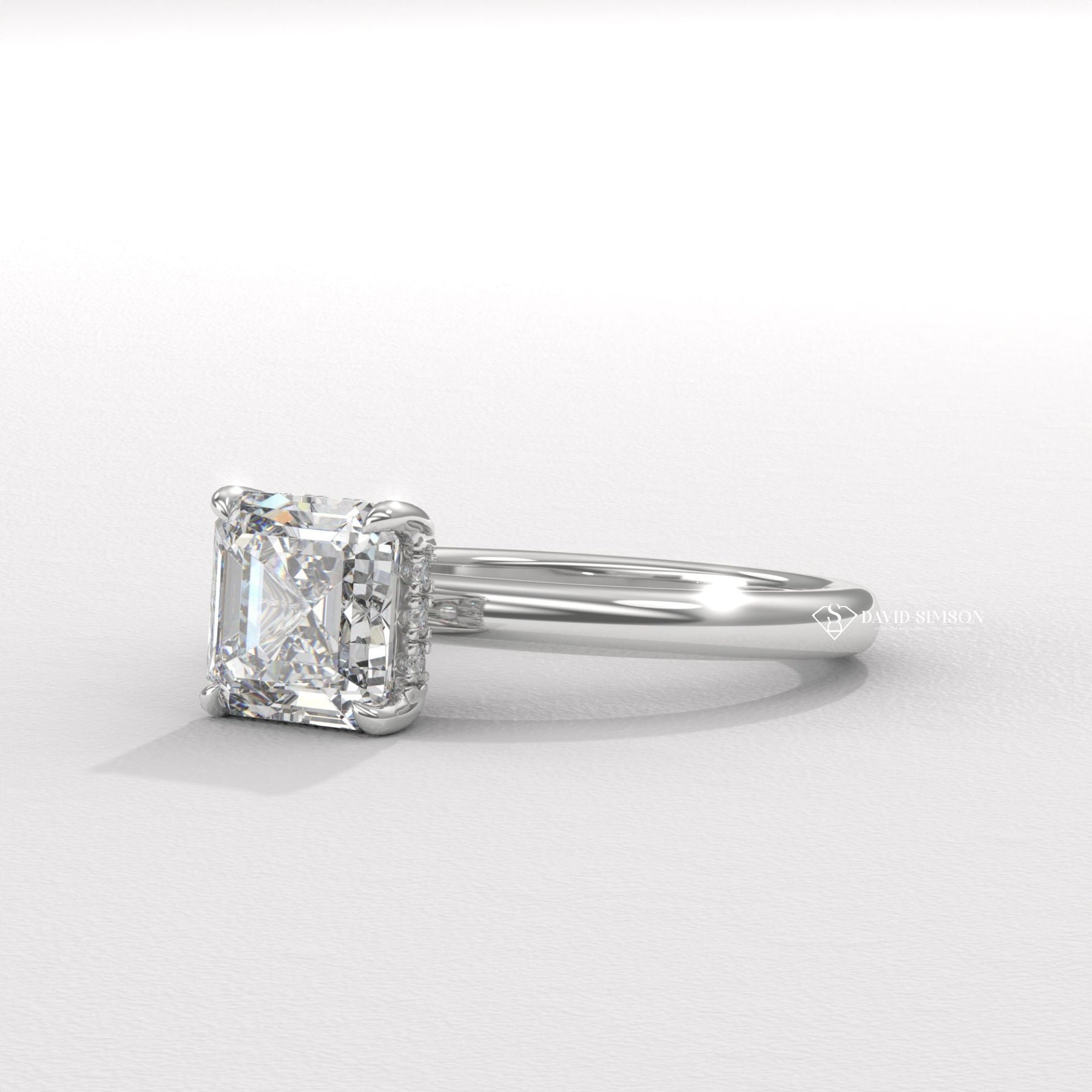 2.0CT-3.0CT Asscher Moissanite Diamond Hidden Halo Engagement Ring