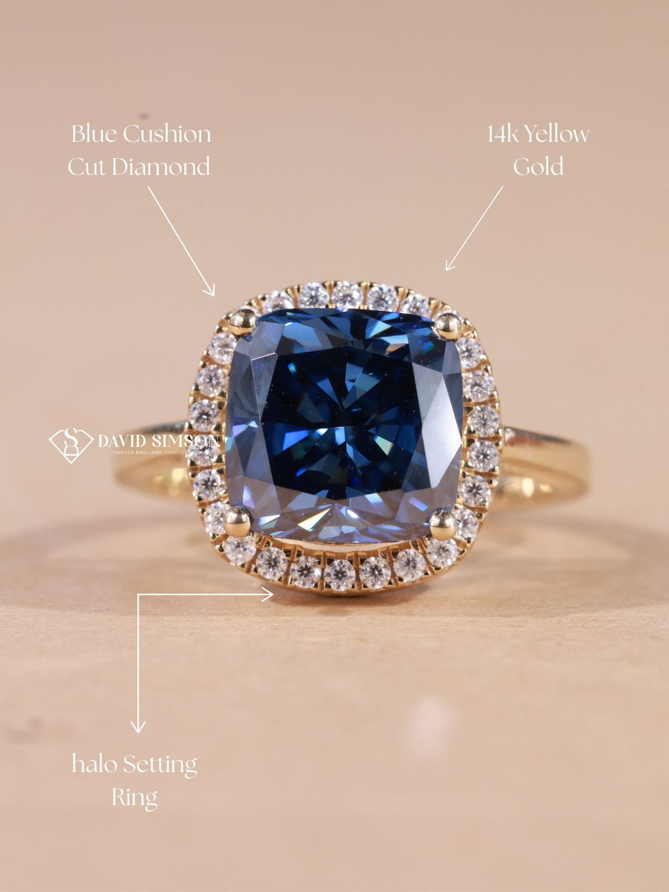 2.0CT-3.0CT Blue Cushion Cut Moissanite Diamond Halo Engagement Ring