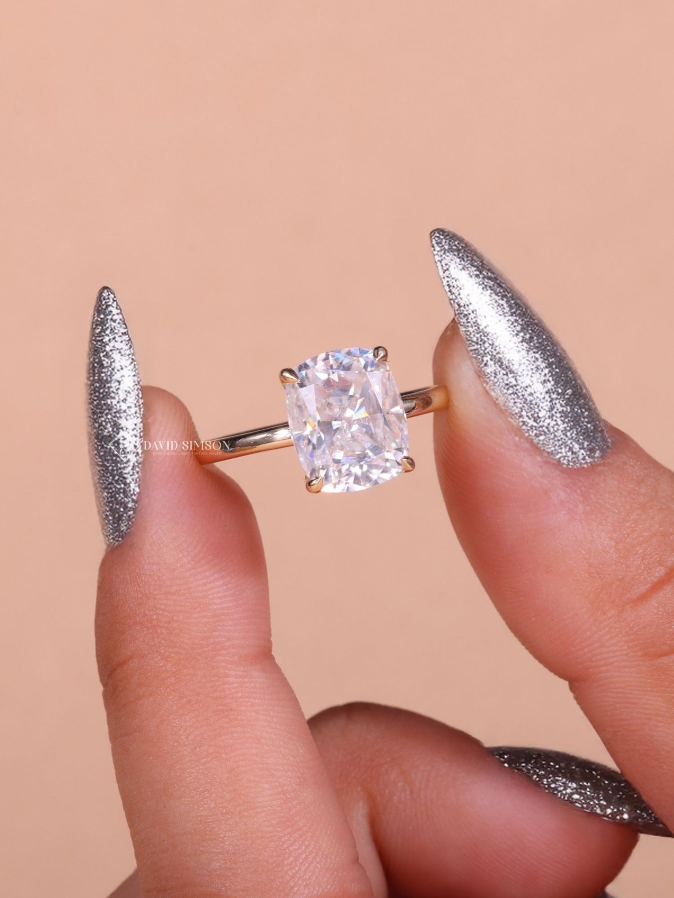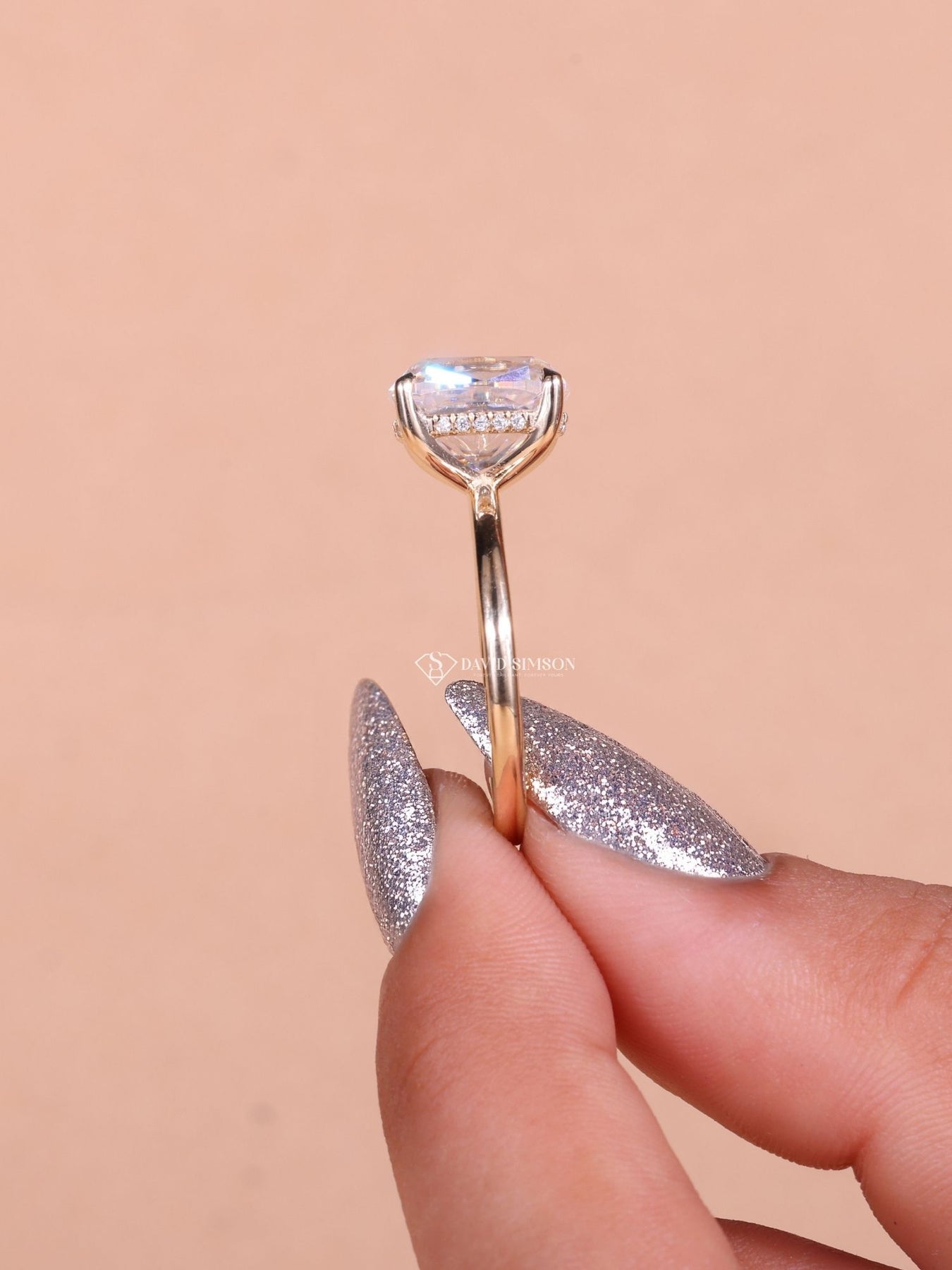 2.0CT-3.0CT Cushion Cut Moissanite Hidden Halo Diamond Engagement Ring