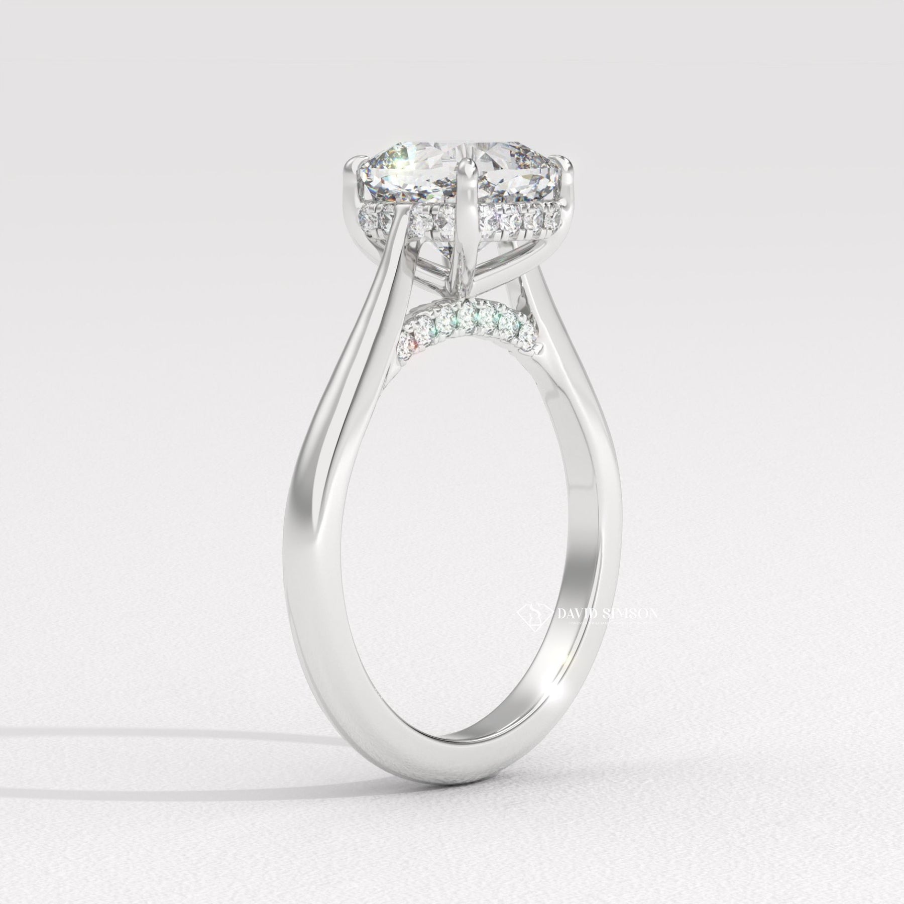 2.0CT-3.0CT Cushion Moissanite Diamond Hidden Halo Engagement Ring