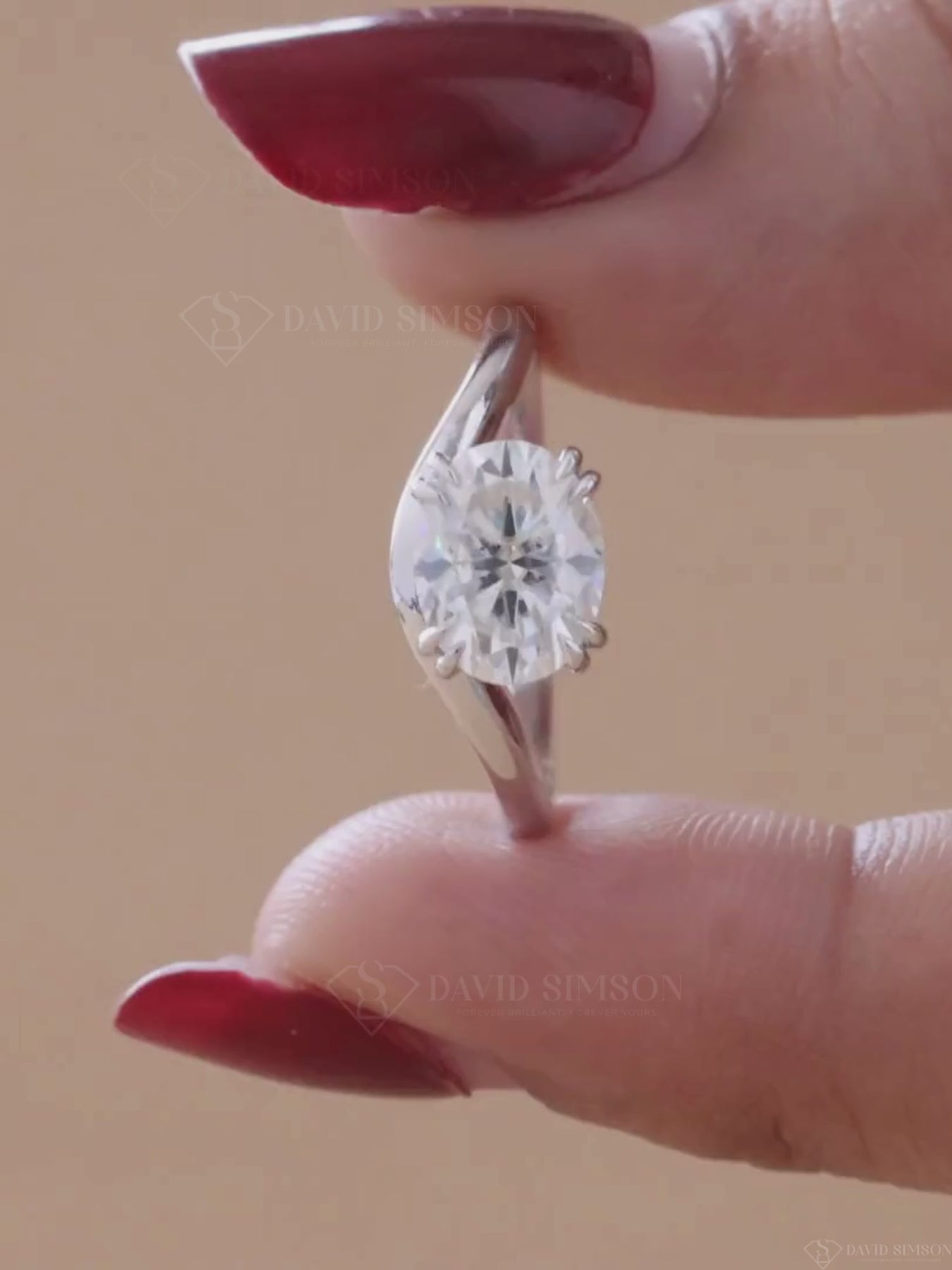 2.0CT-3.0CT East West Oval Cut Moissanite Diamond Wave Engagement Ring