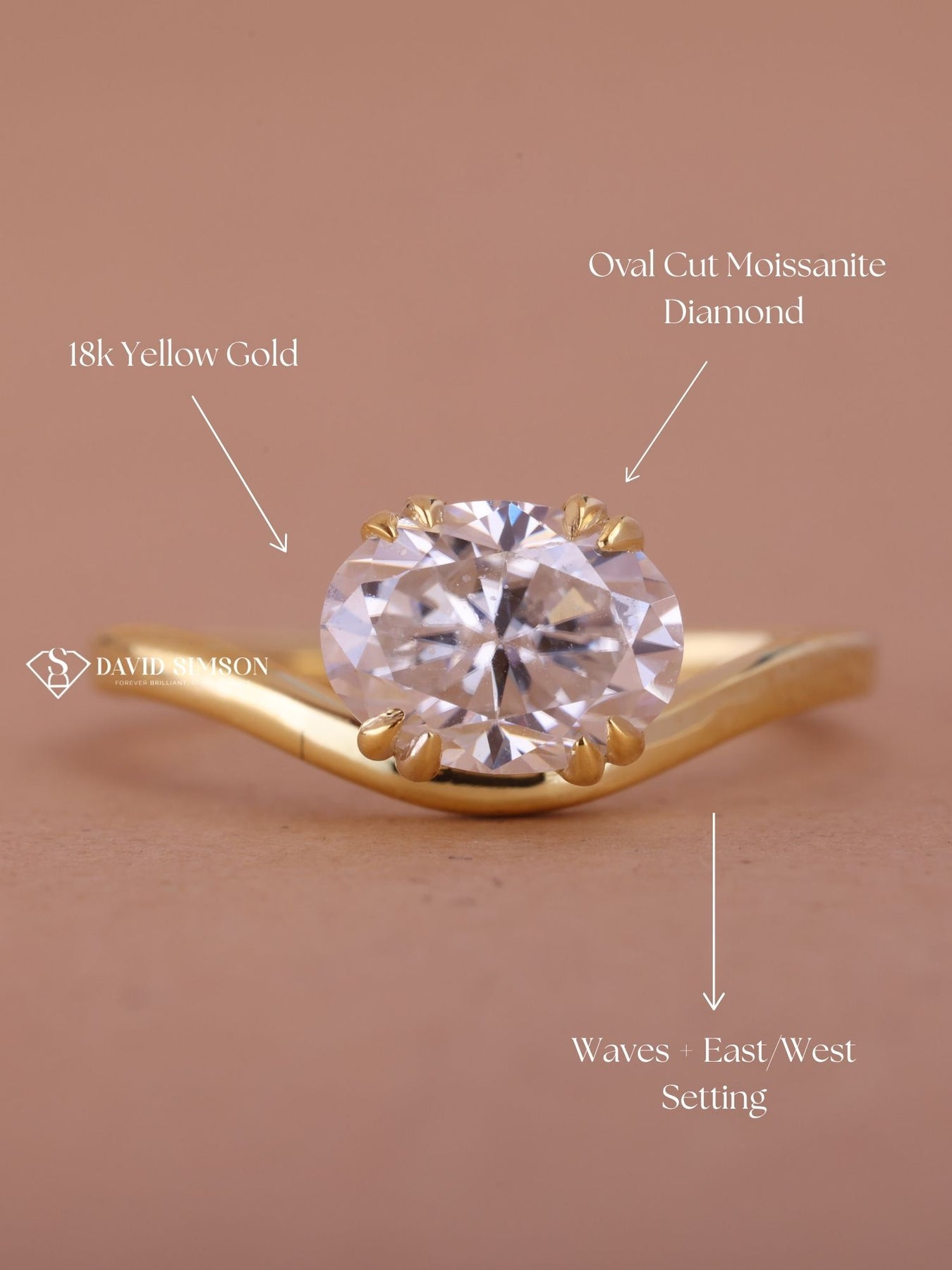 2.0CT-3.0CT East West Oval Cut Moissanite Diamond Wave Engagement Ring