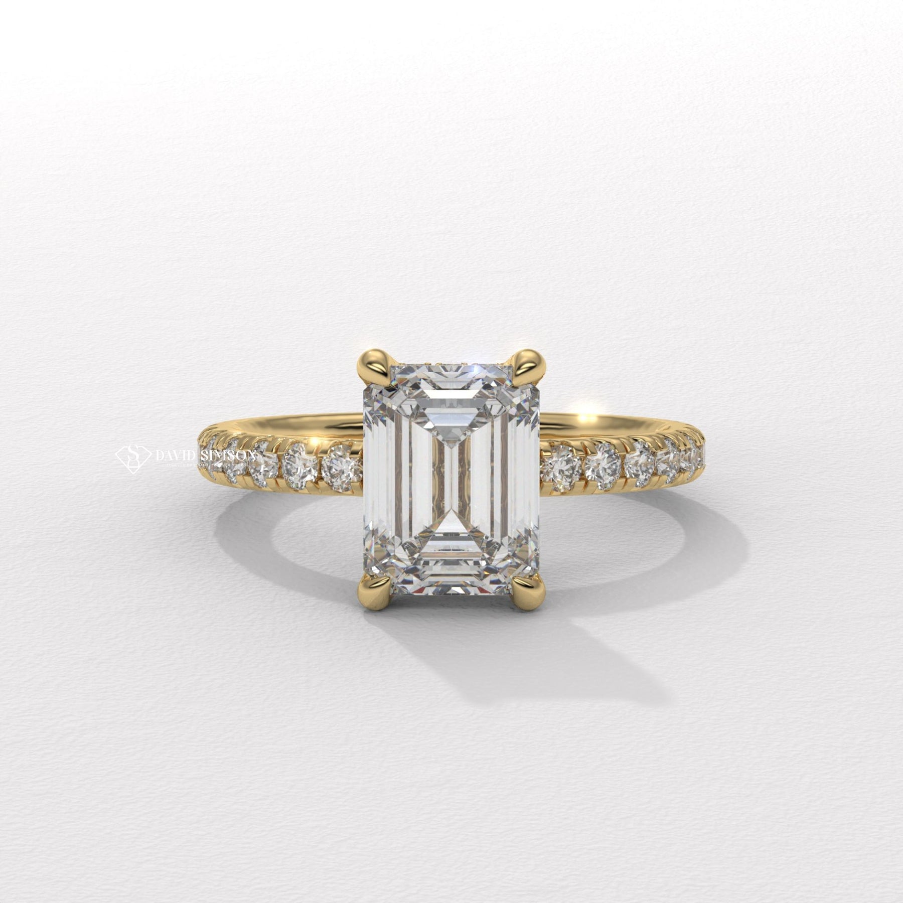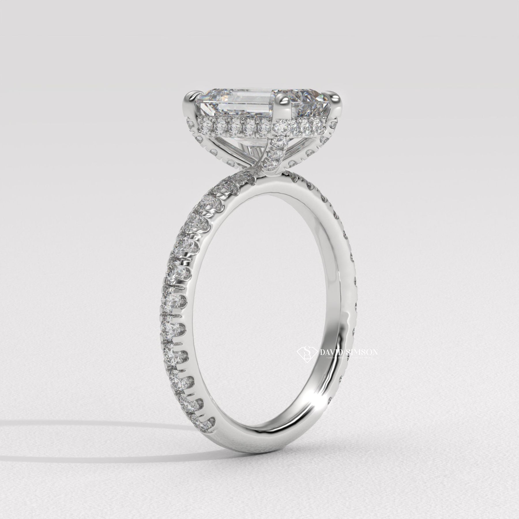 2.0CT-3.0CT Emerald Moissanite Hidden Halo Diomond Engagement Ring