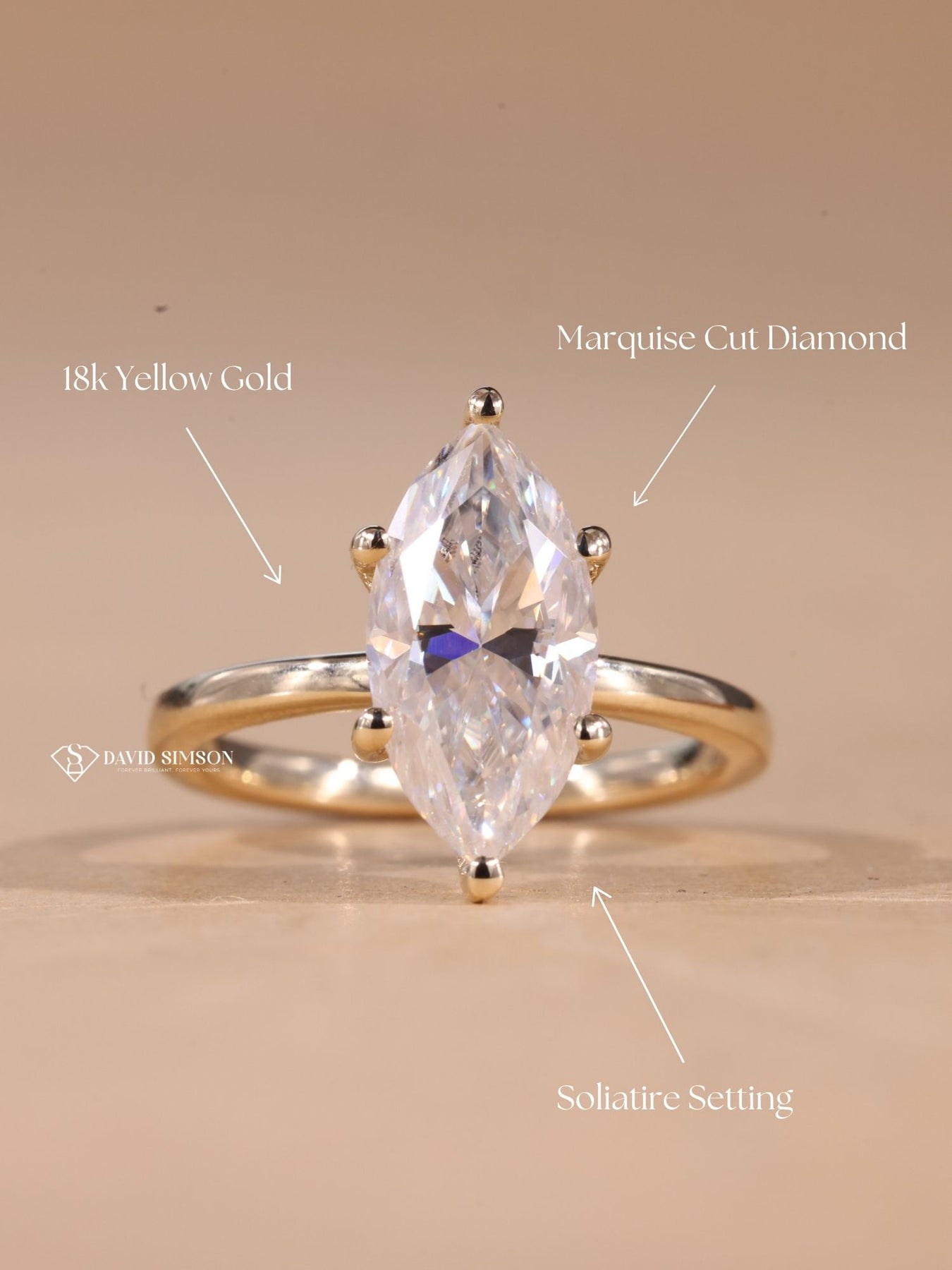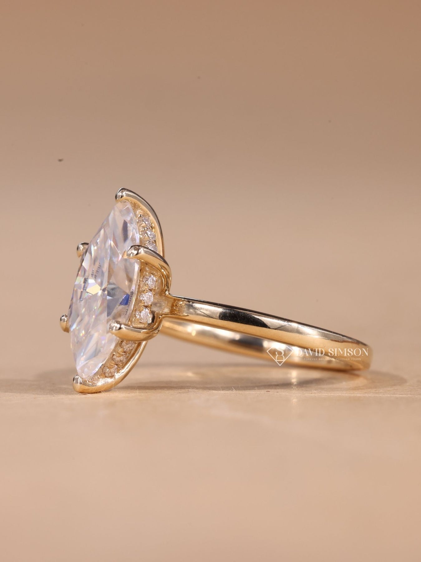 2.0CT-3.0CT Marquise Cut Moissanite Diamond Hidden Halo Engagement Ring