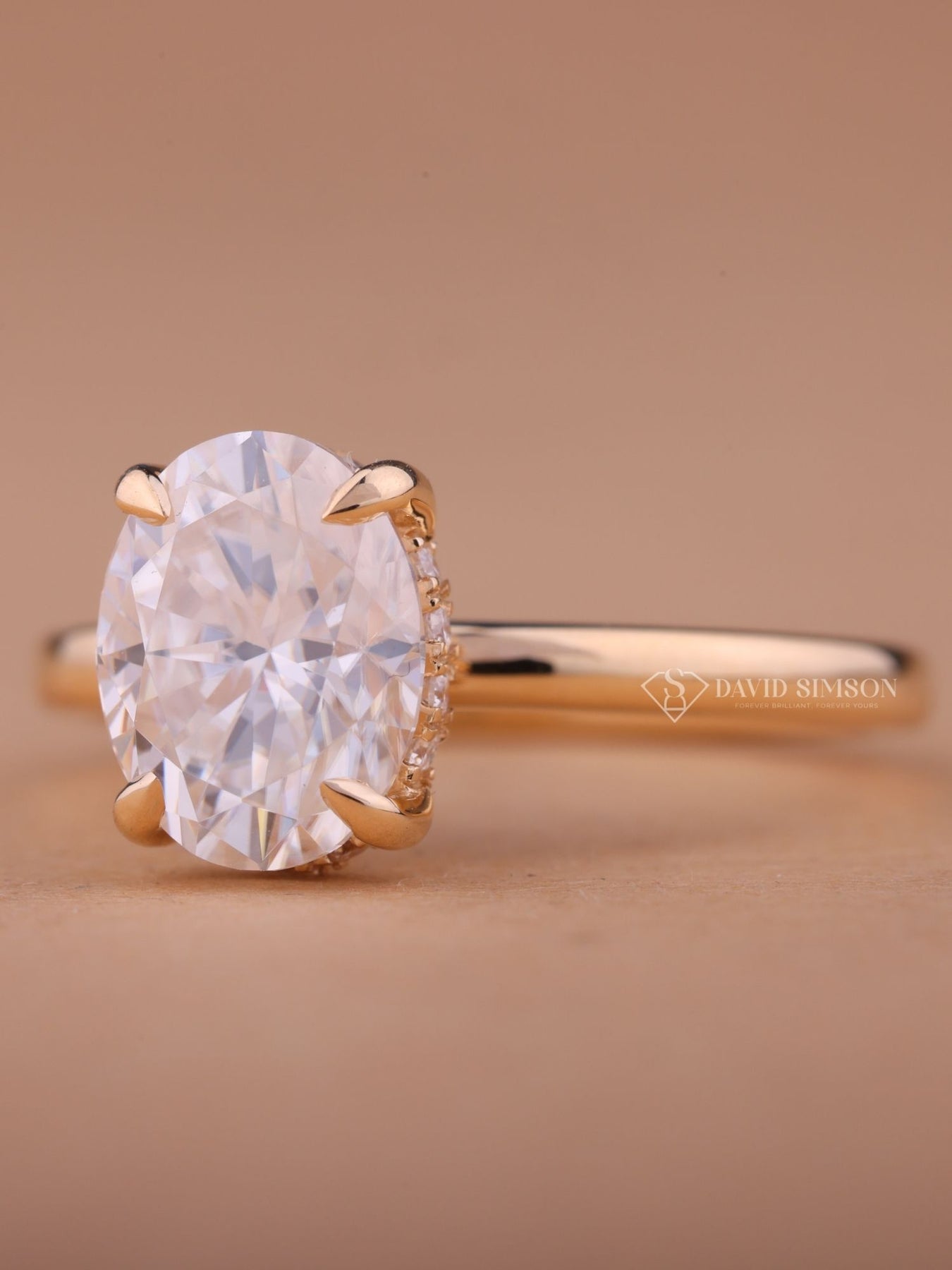 2.0CT-3.0CT Oval Cut Moissanite Diamond Hidden Halo Engagement Ring