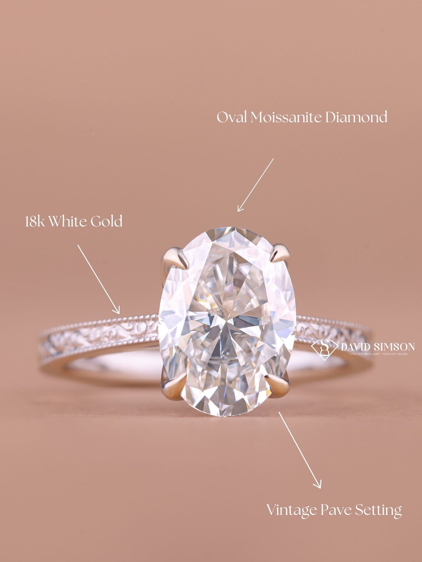 2.0CT-3.0CT Oval Cut Moissanite Vintage Milgrain Pave Diamond Engagement Ring