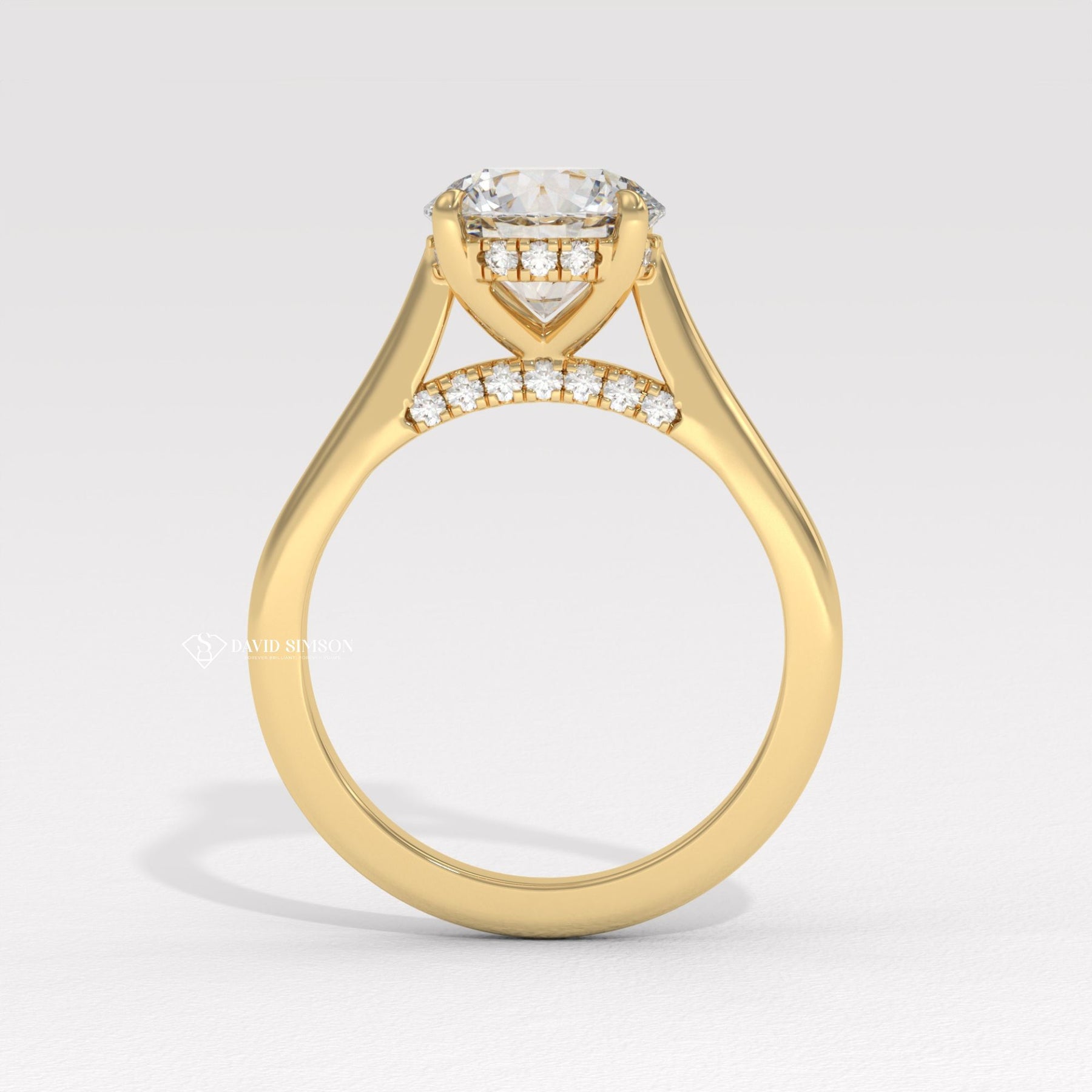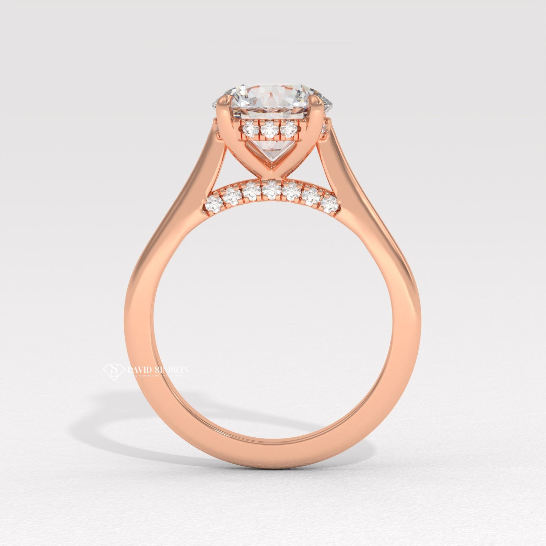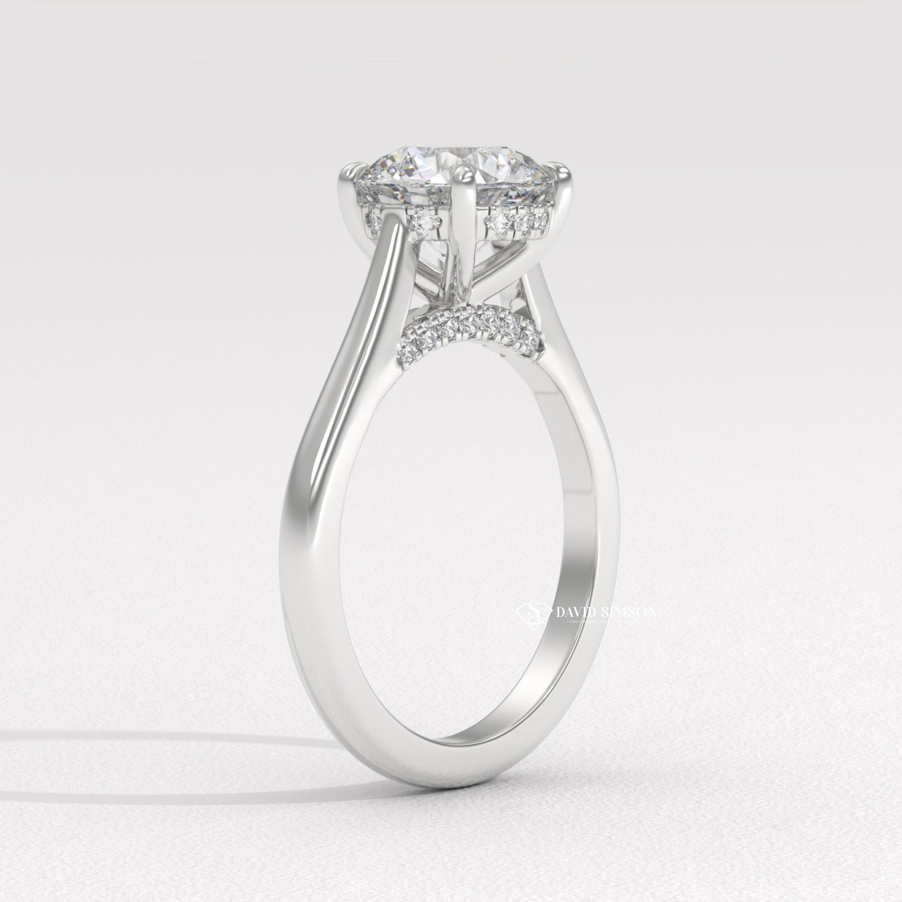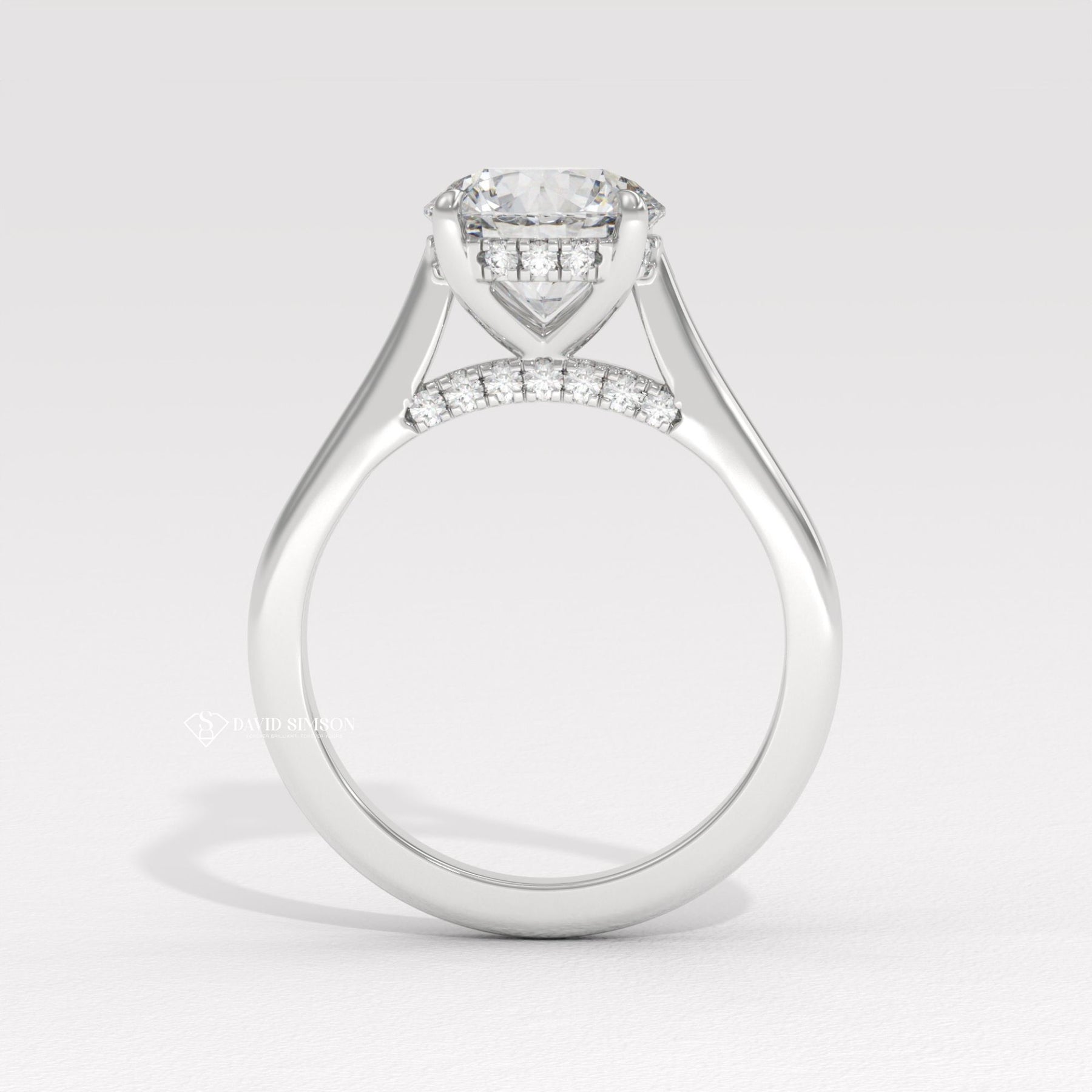 This 2.0CT to 3.0CT round moissanite diamond hidden halo bridge set engagement ring is a stunning expression of elegance and modern romance. The brilliant round cut moissanite center stone delivers exceptional fire and sparkle, creating a radiant focal point. A delicate hidden halo of shimmering diamonds beneath the center stone enhances brilliance, while the diamond bridge setting adds refined structure and graceful detail from every angle. Expertly crafted for durability and everyday comfort, this engagement ring blends timeless design with contemporary sophistication, making it a perfect choice for a meaningful proposal and a lifetime of cherished moments.