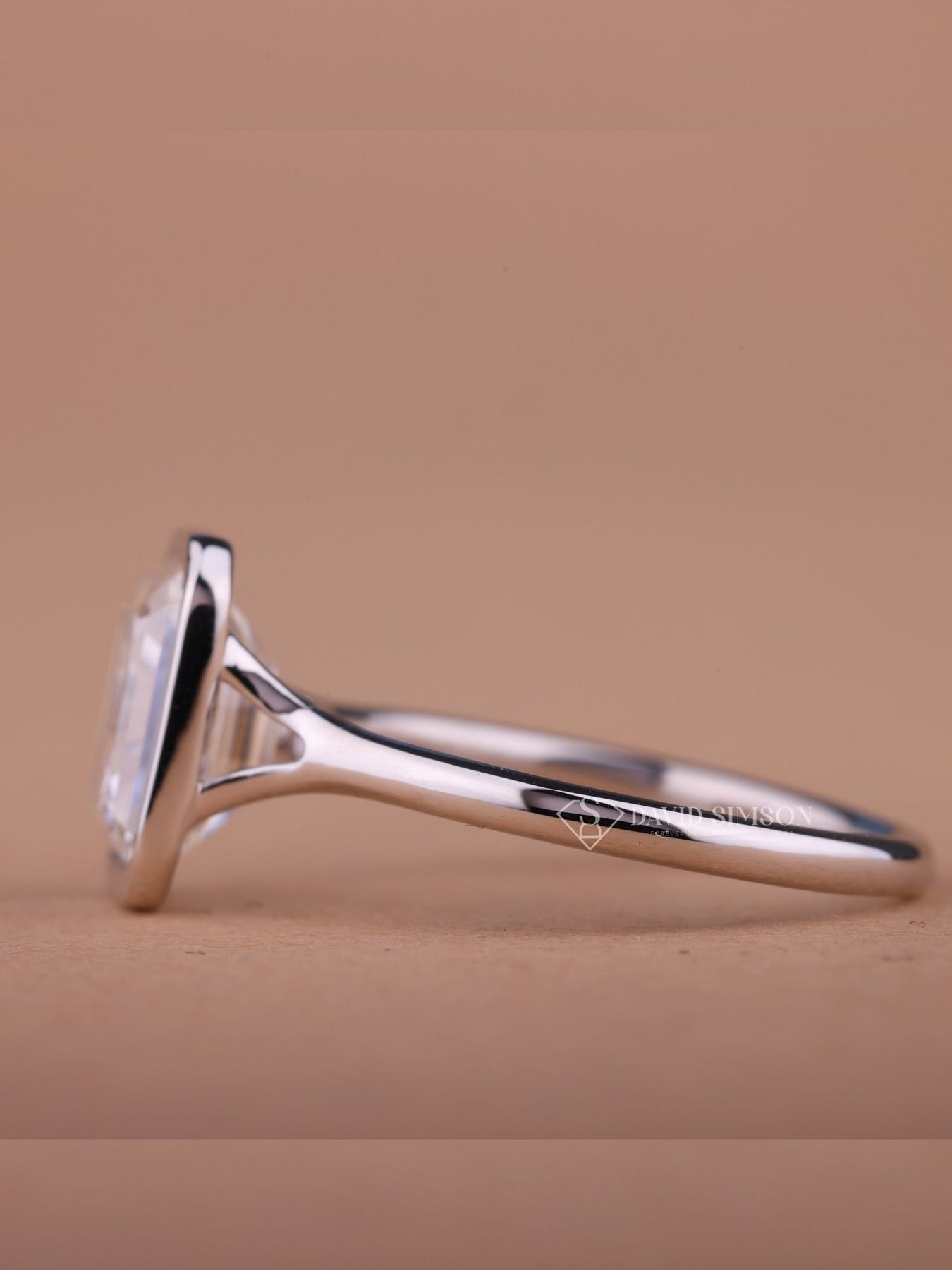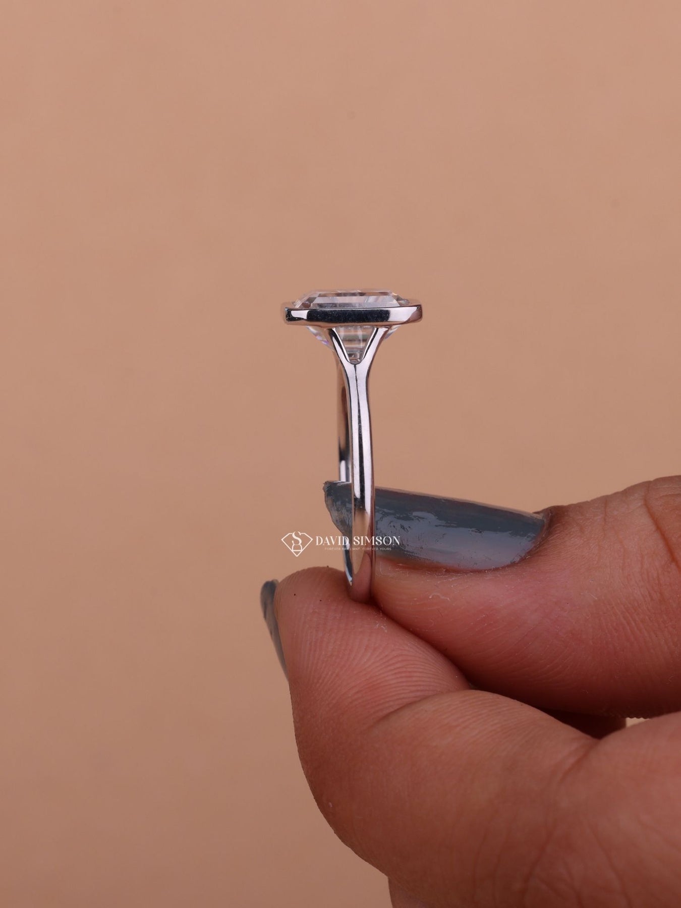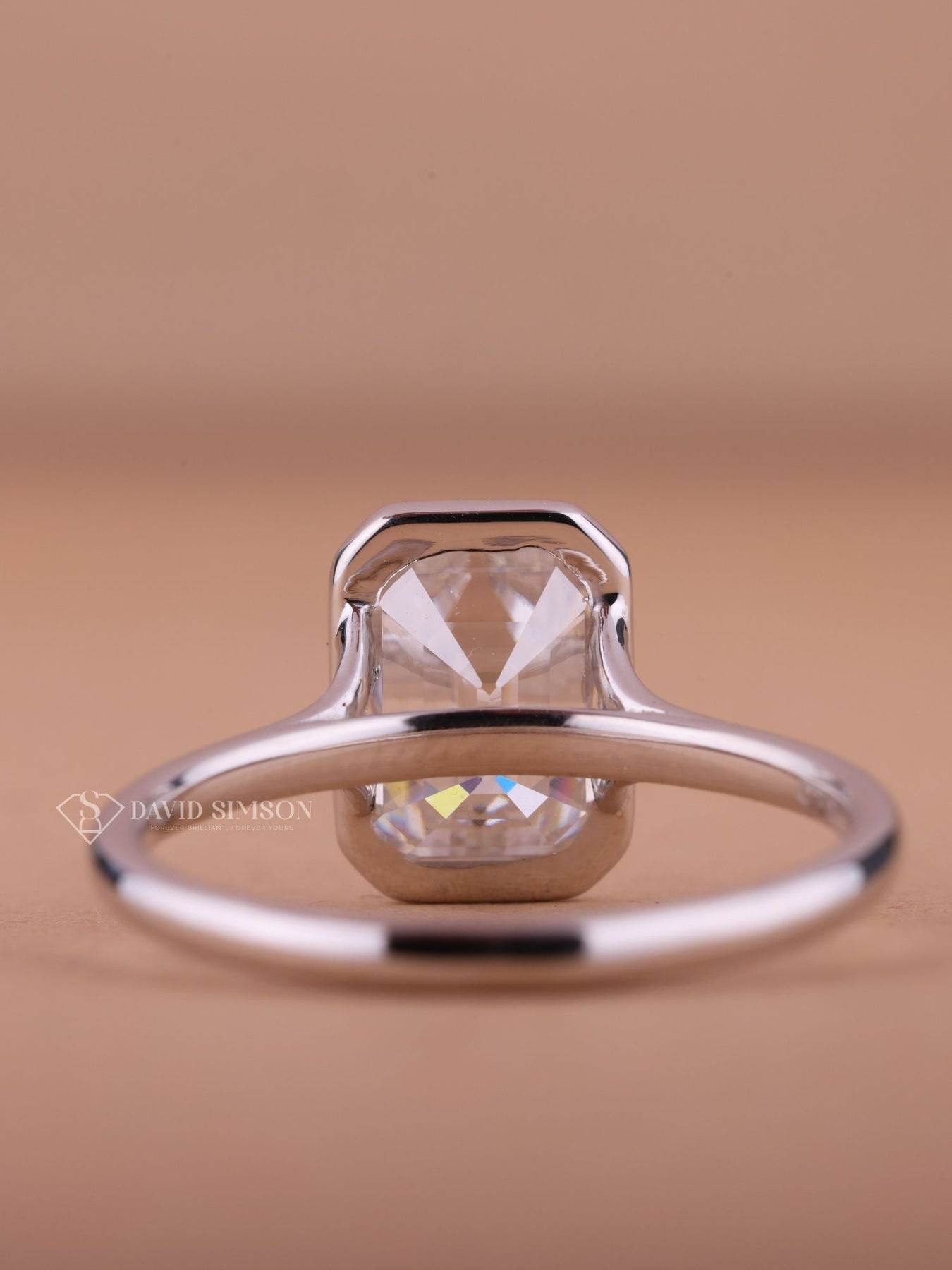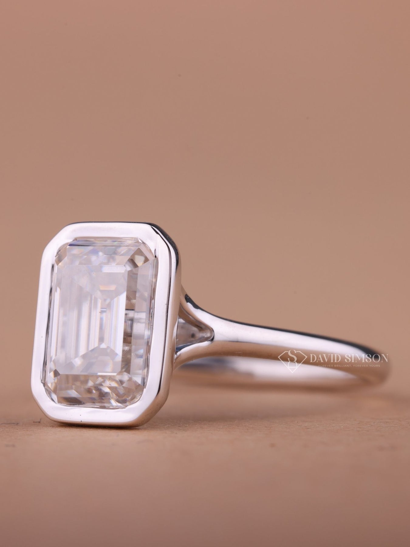 2.0CT-4.0CT Bezel Set Emerald Cut Moissanite Diamond Engagement Ring