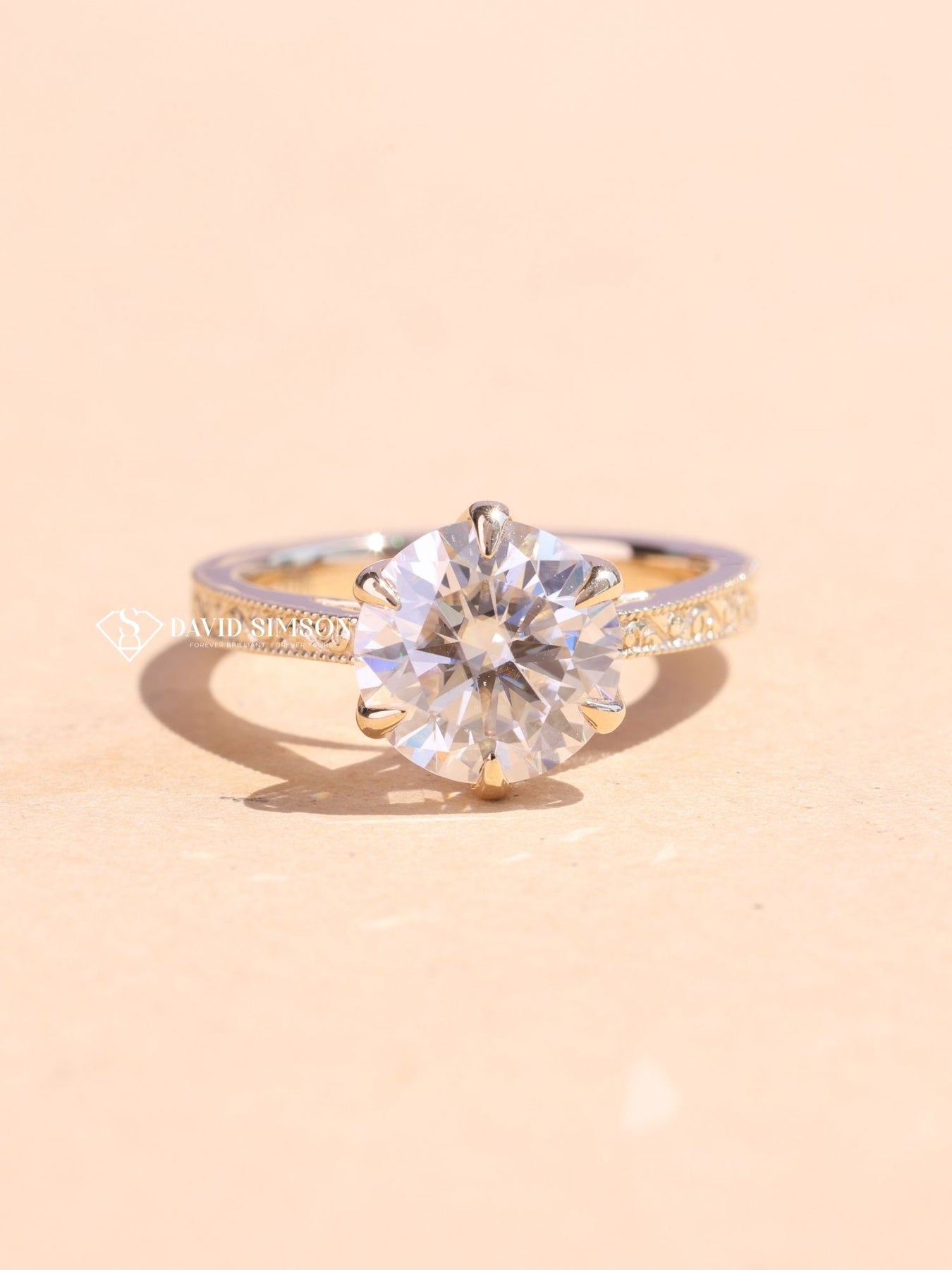 2.0CT-4.0CT Round Cut Vintage Pave Moissanite Engagement Ring