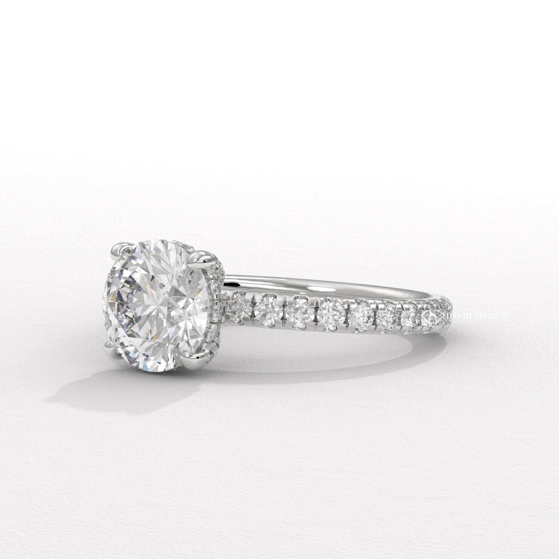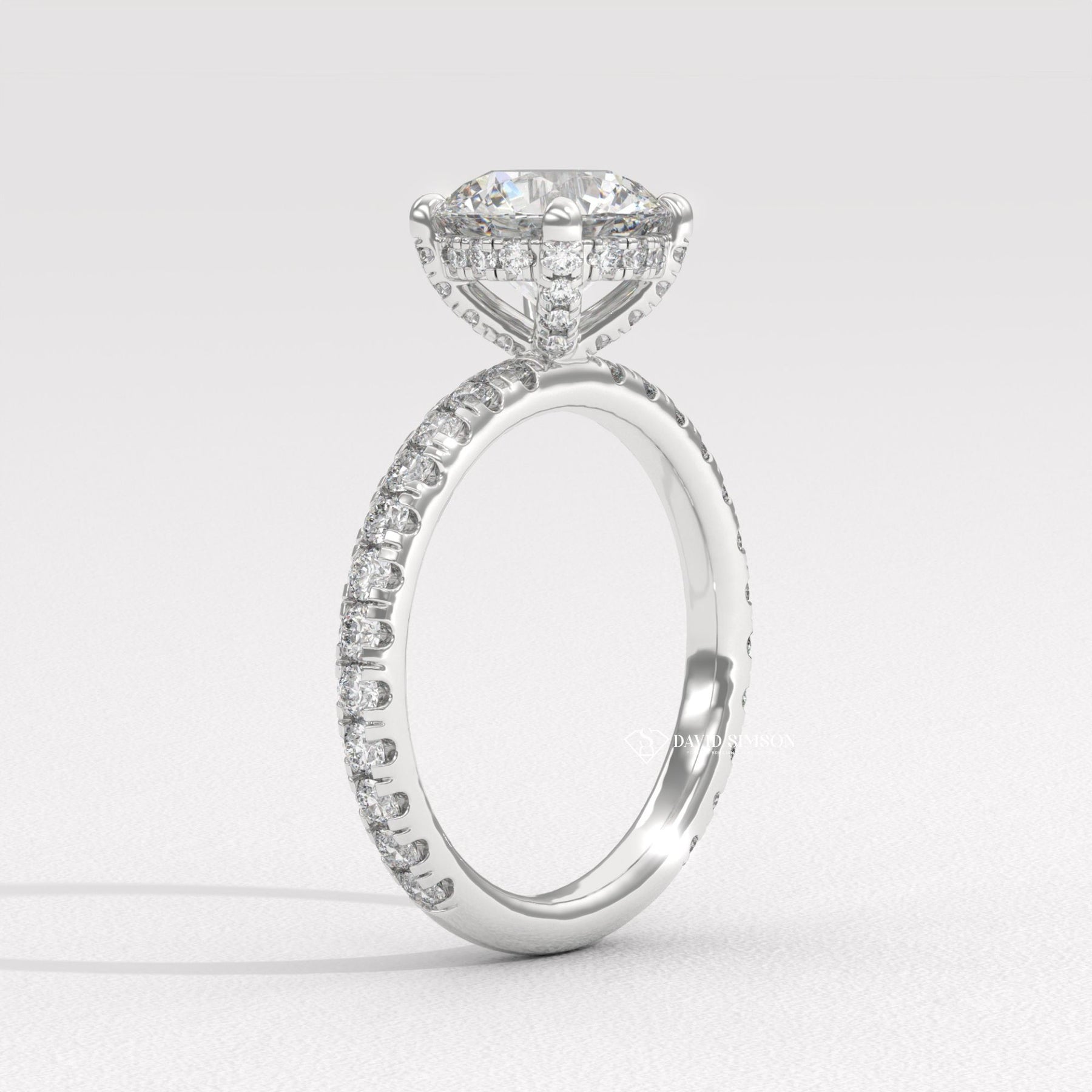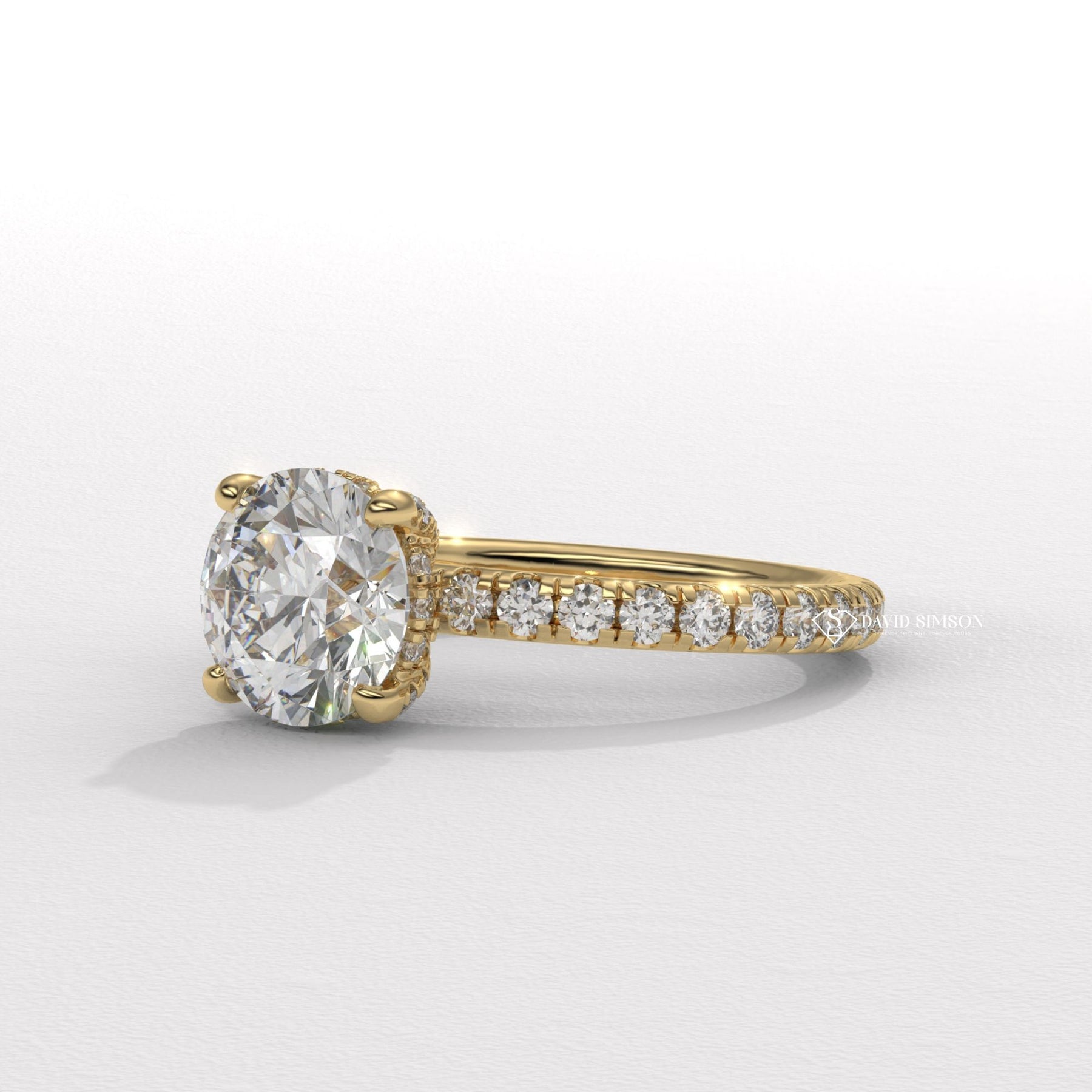 2.0CT-4.0CT Round Moissanite Pave Diomond Hidden Halo Engagement Ring
