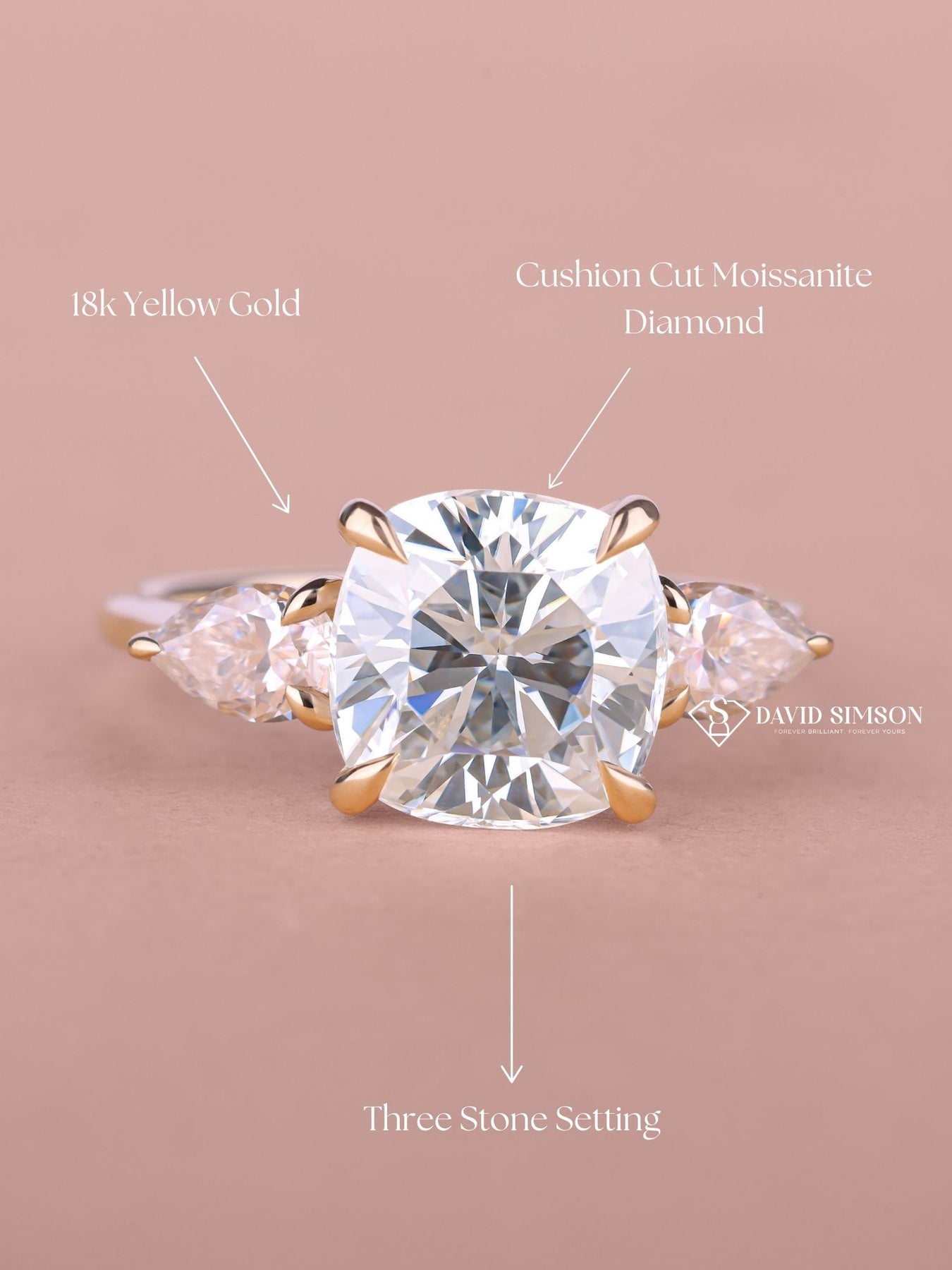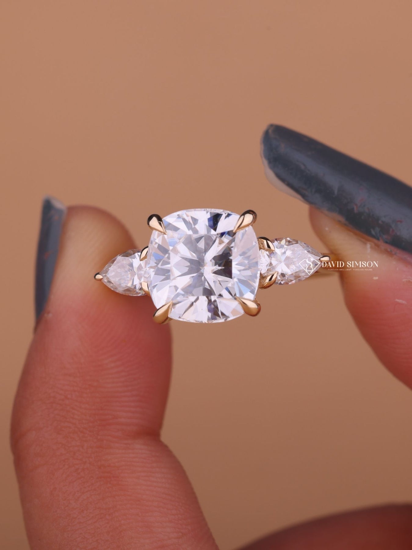 2.50CT-3.50CT Cushion Cut Moissanite Diamond Trilogy Engagement Ring