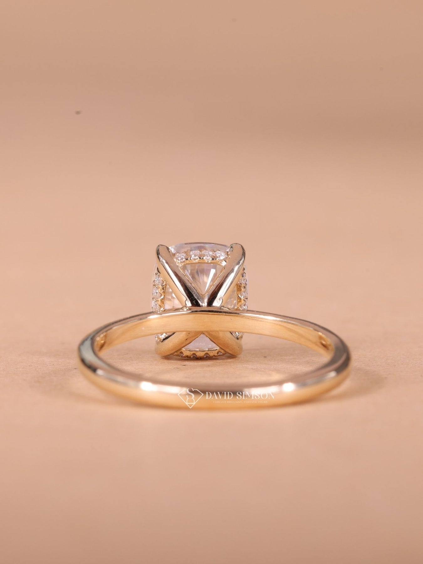 2.50CT-3.50CT Cushion Cut Moissanite Hidden Halo Diamond Engagement Ring