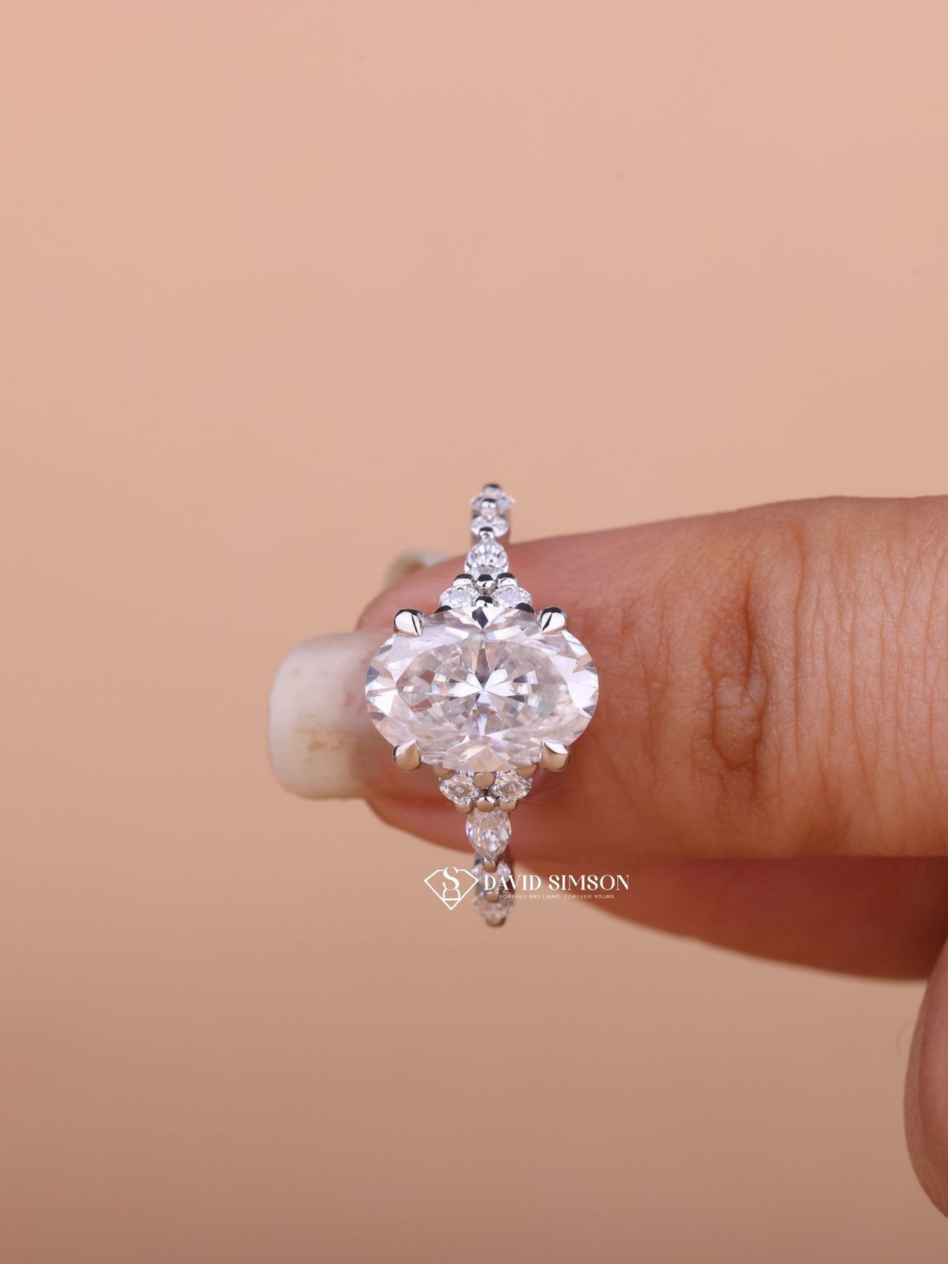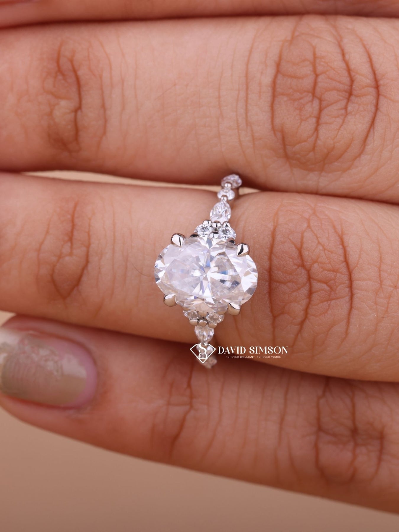 2.50CT-3.50CT Oval Cut Moissanite Cluster Diamond Engagement Ring