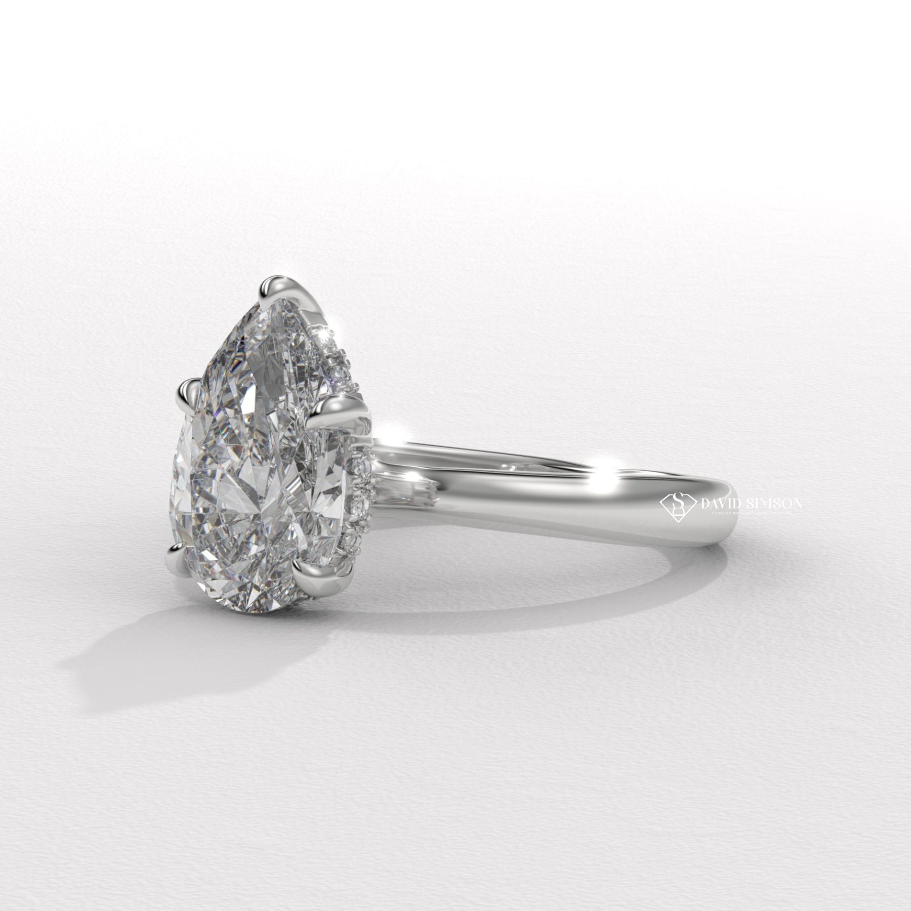 2.50CT-3.50CT Pear Moissanite Hidden Halo Diamond Engagement Ring