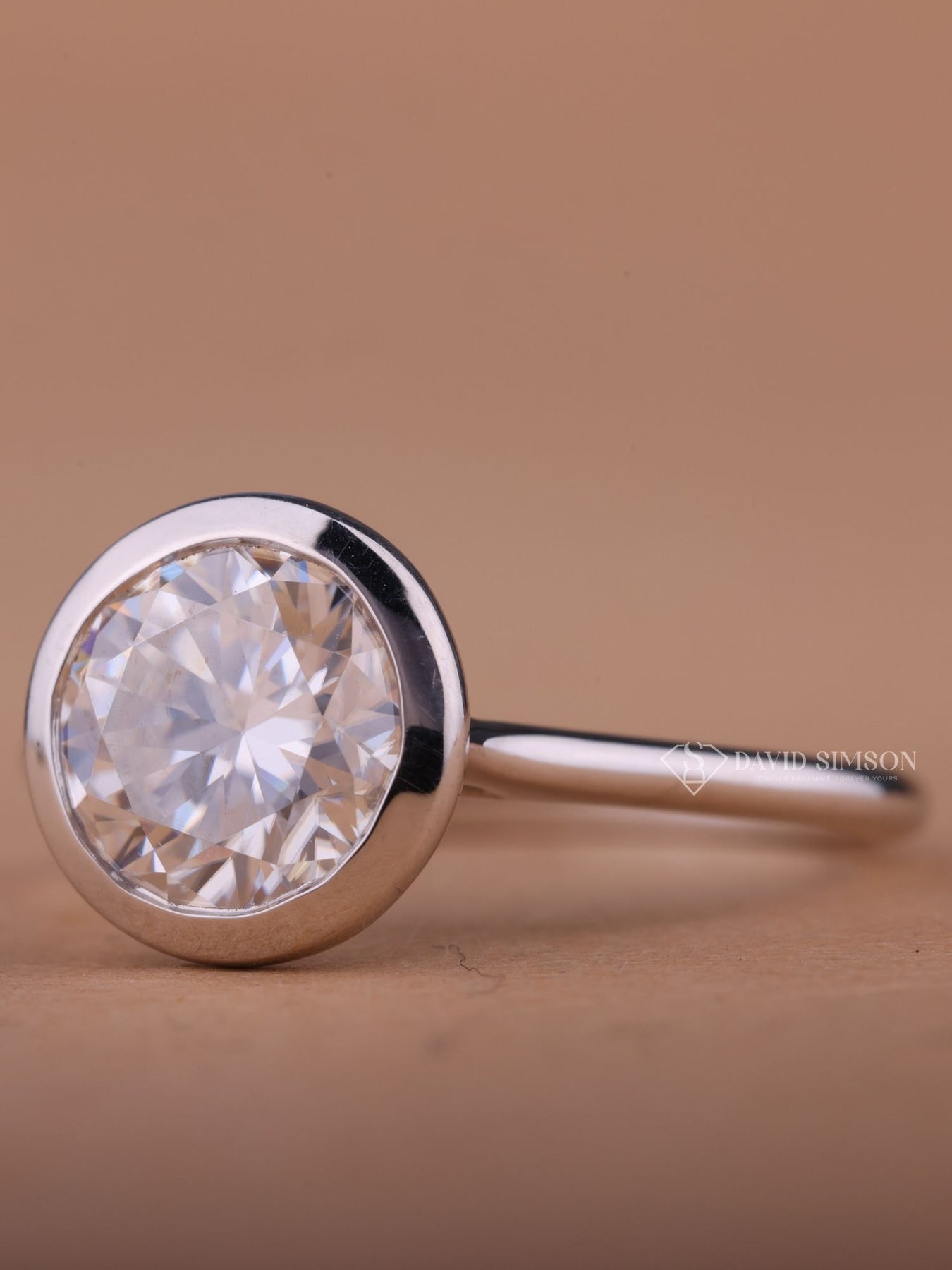 2.50CT-3.50CT Round Cut Moissanite Diamond Bezel Set Engagement Ring