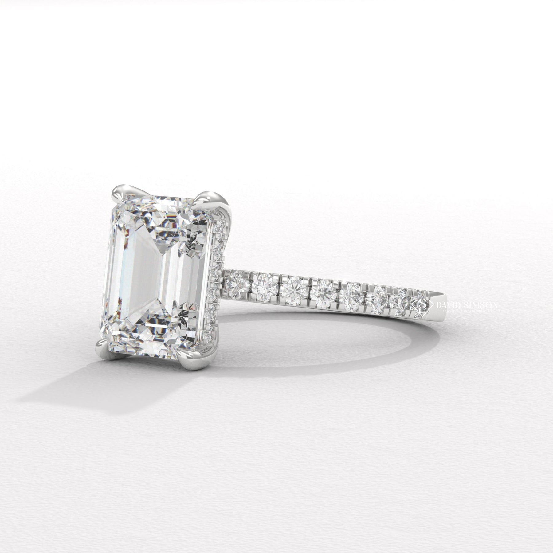 3.0CT-4.0CT Emerald Moissanite Diamond Hidden Halo Engagement Ring