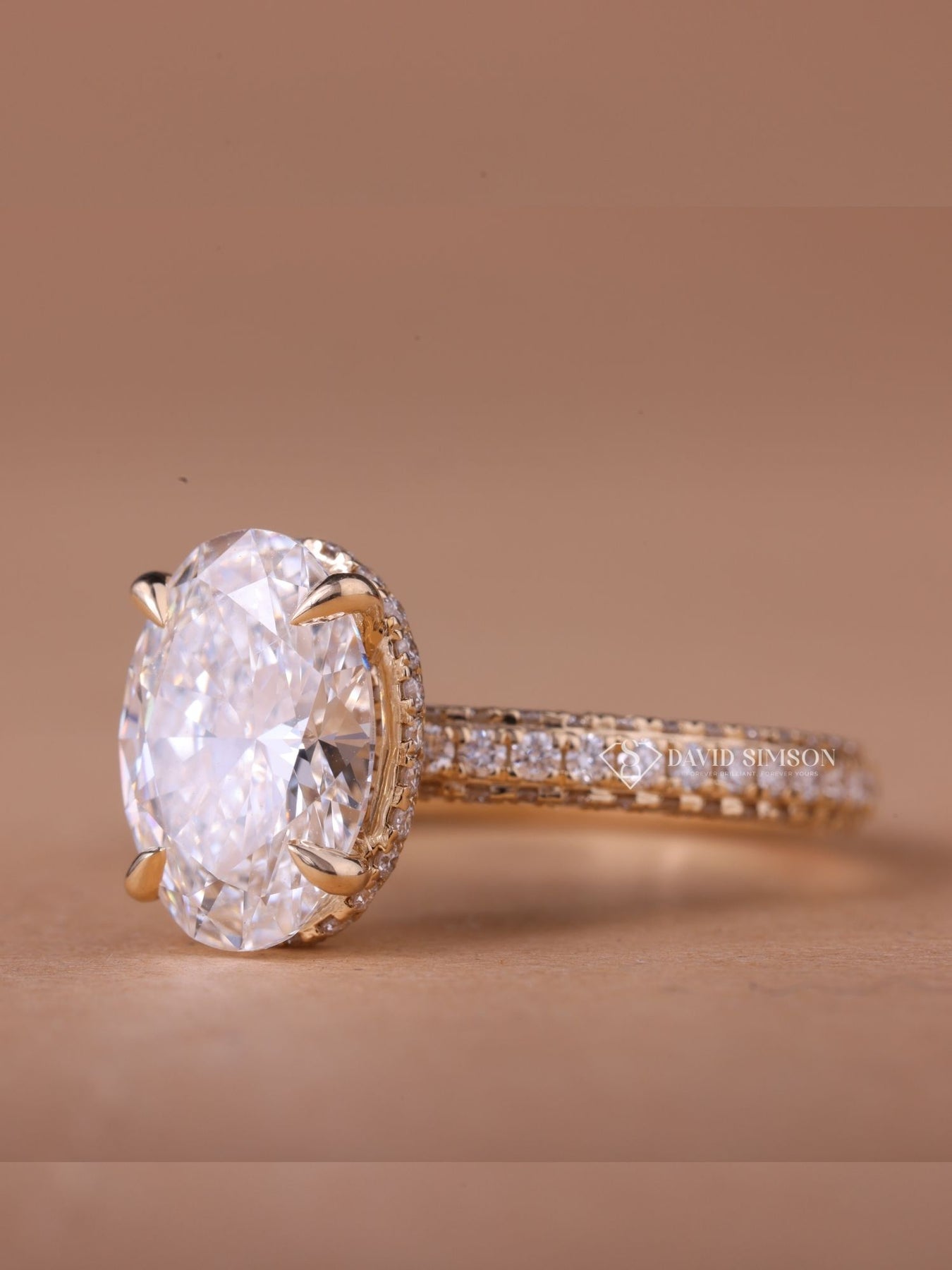 3.0CT-4.0CT Oval Cut Moissanite Diamond Hidden Halo & Pave Engagement Ring