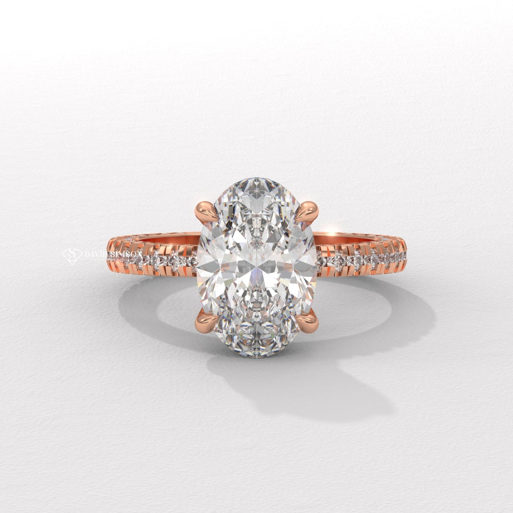 3.0CT-4.0CT Oval Moissanite Diamond Micro Pave Engagement Ring