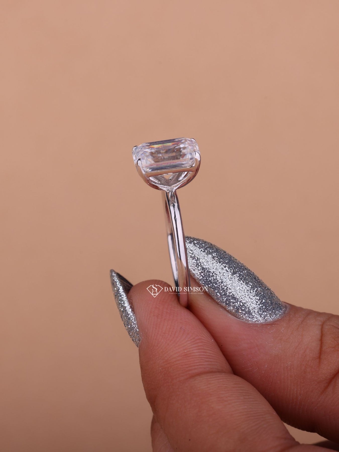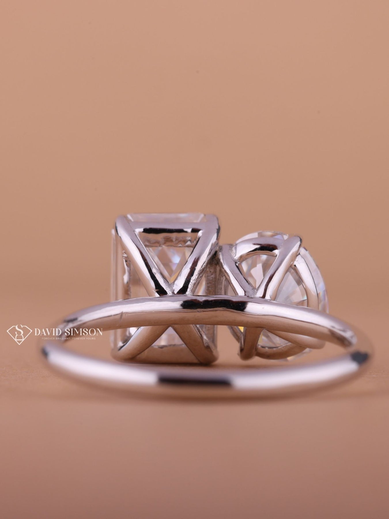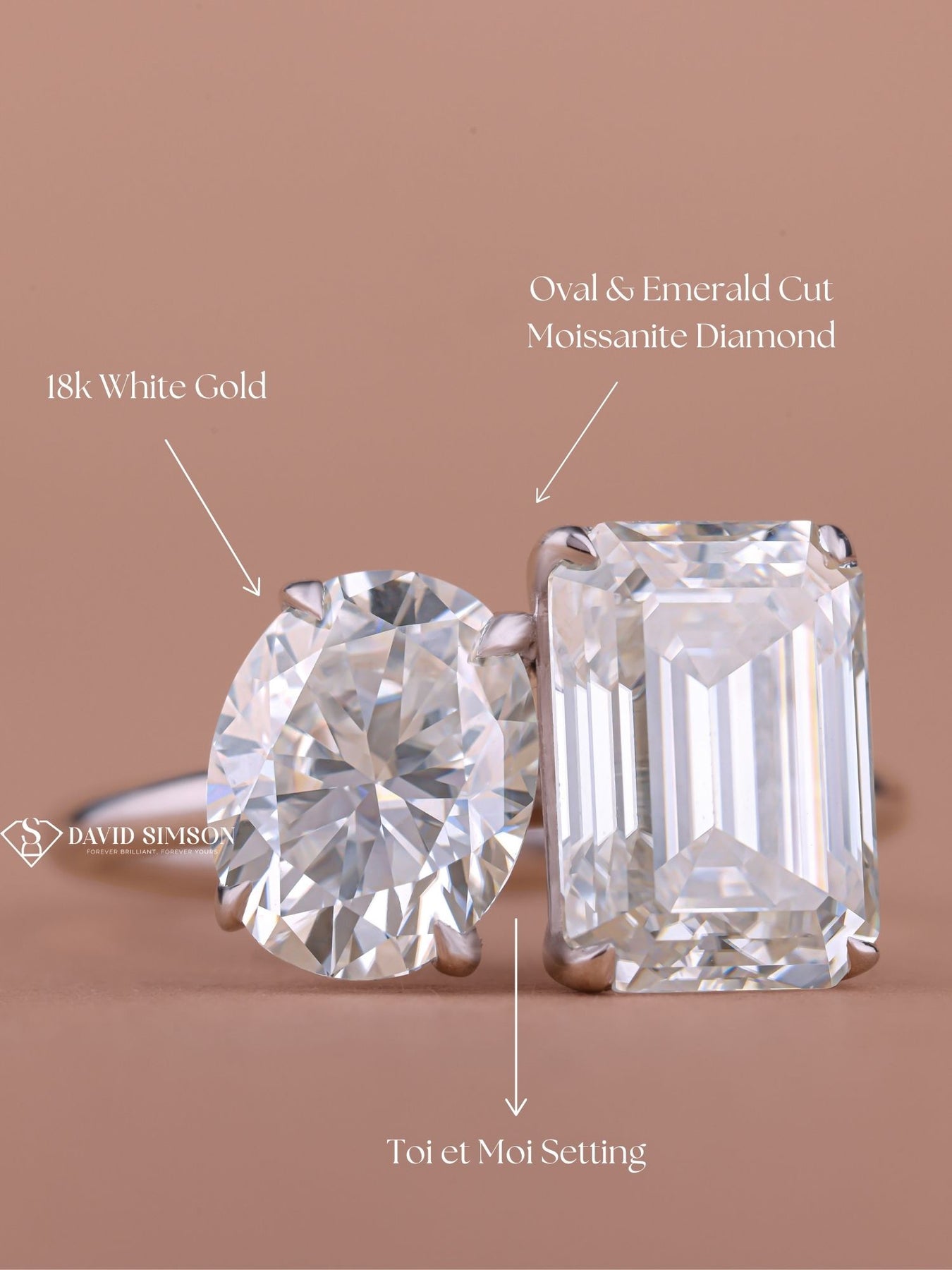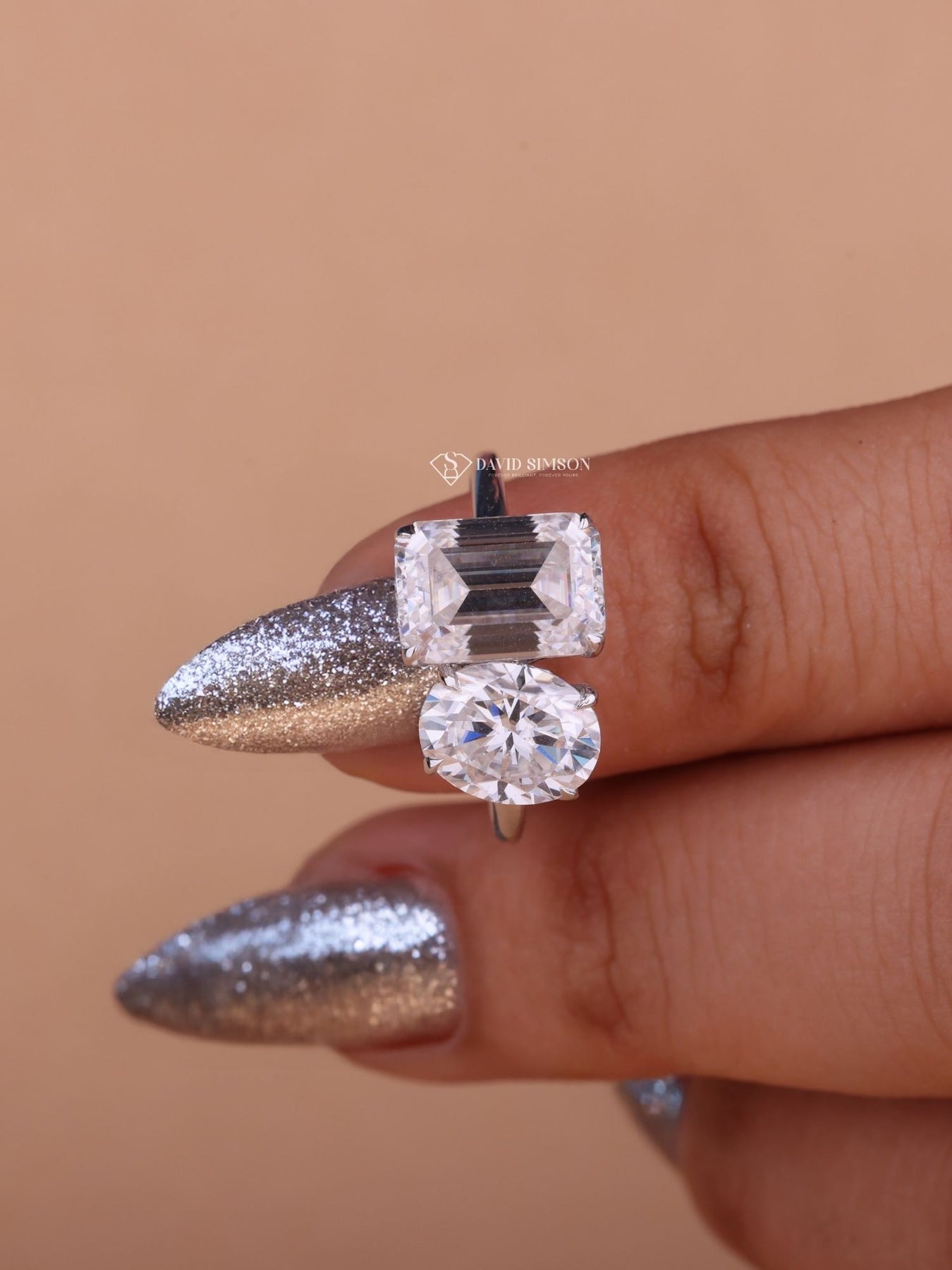 3.0CT Emerald & 2.0CT Oval Cut Moissanite Two Stone Diamond Engagement Ring