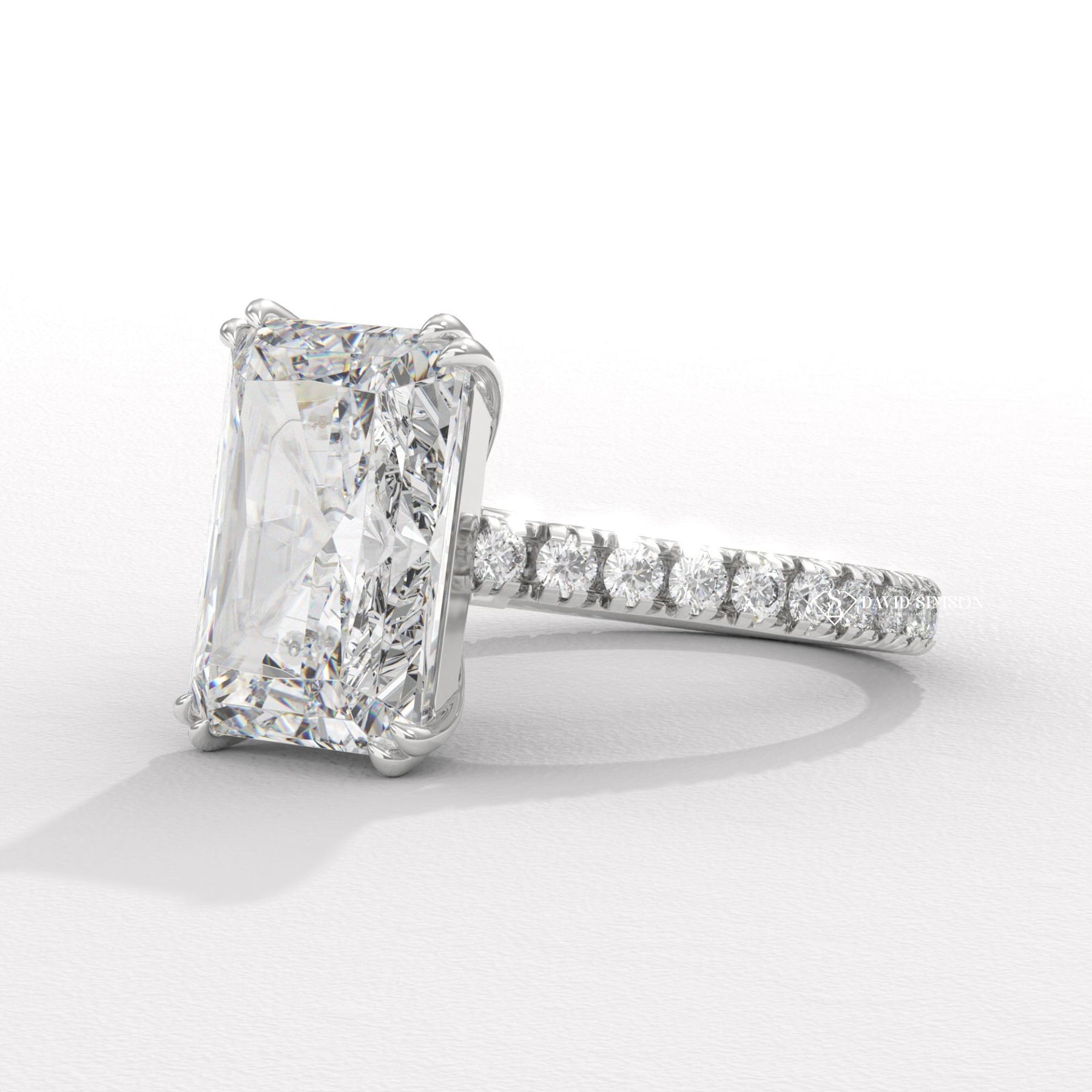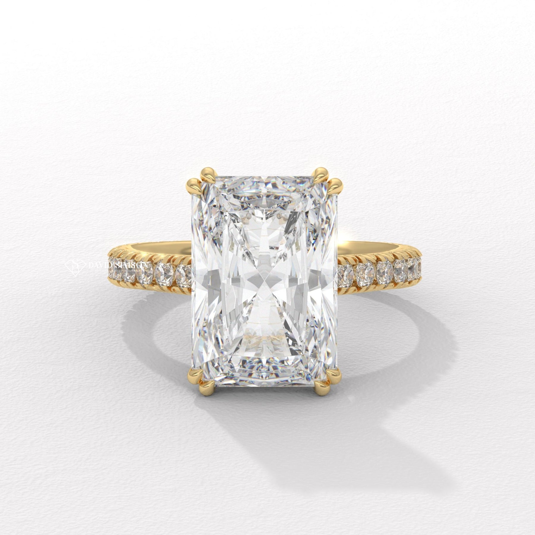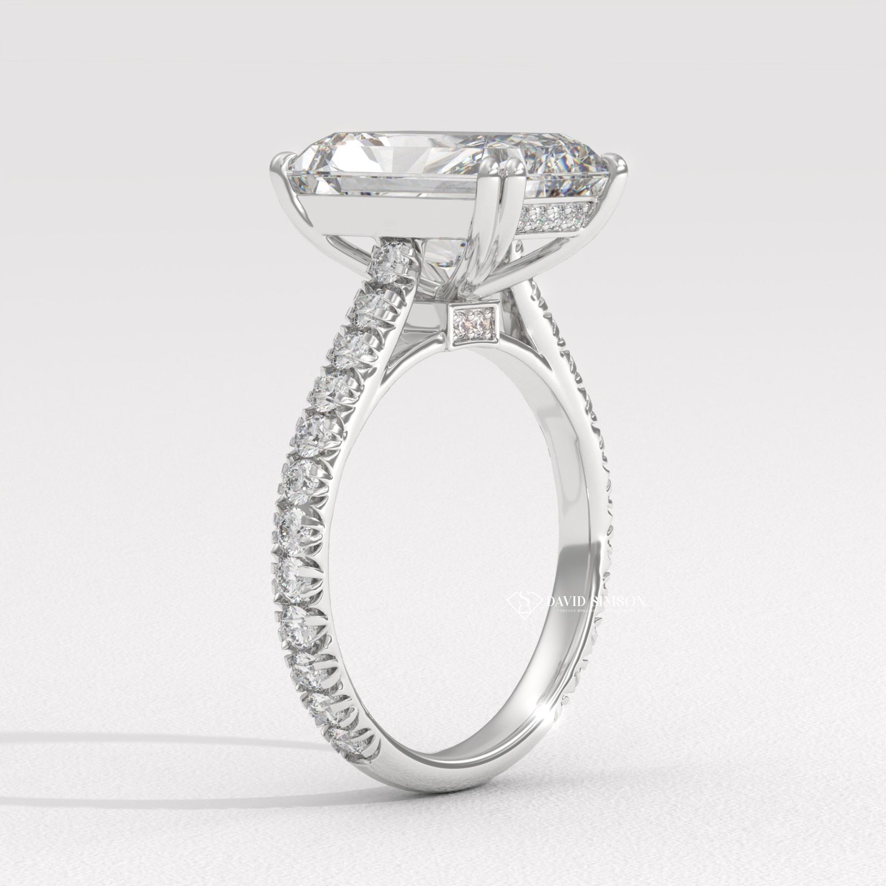 4.0CT-5.0CT Radiant Moissanite Diamond Cathedral set Pave Engagement Ring