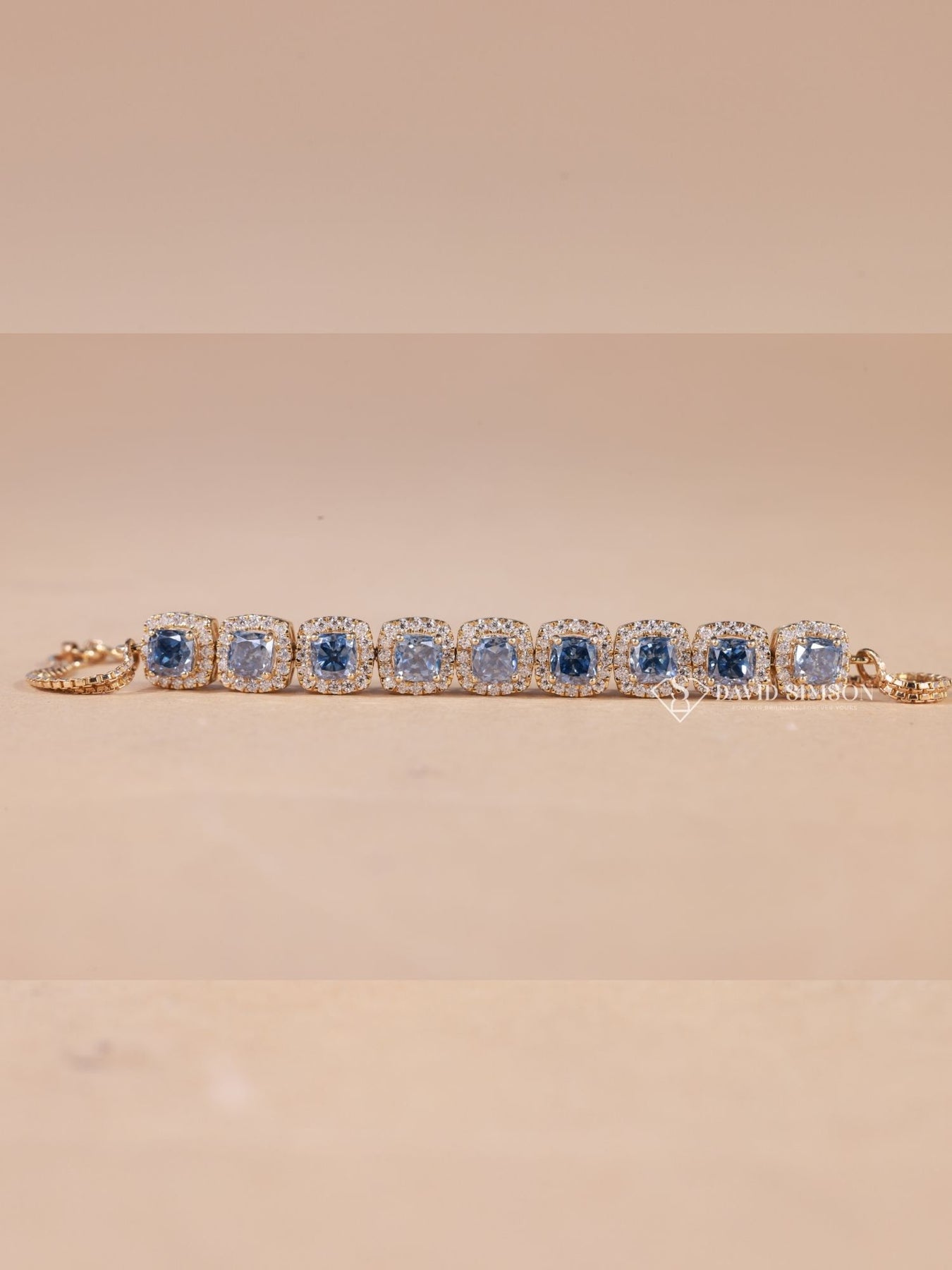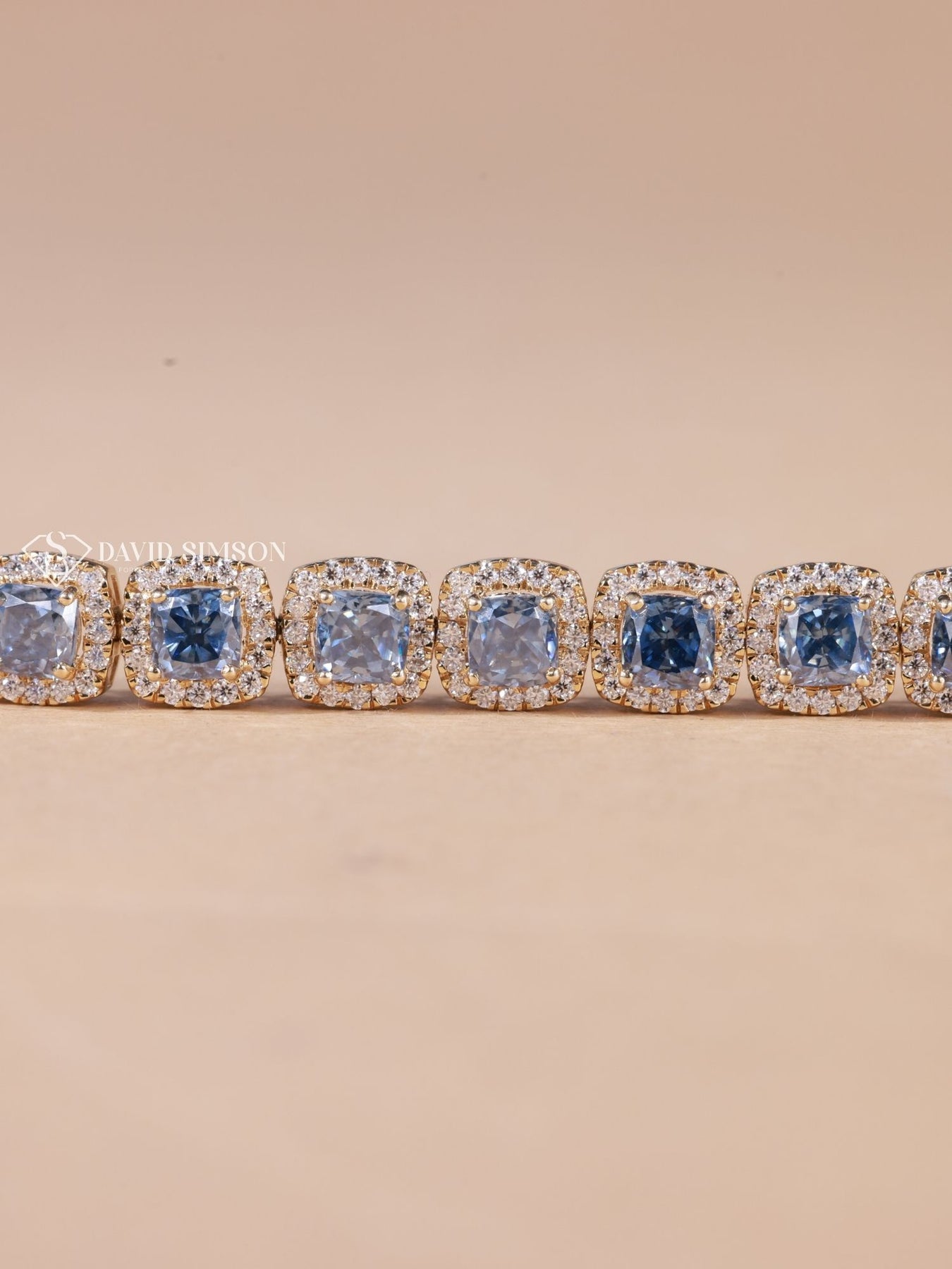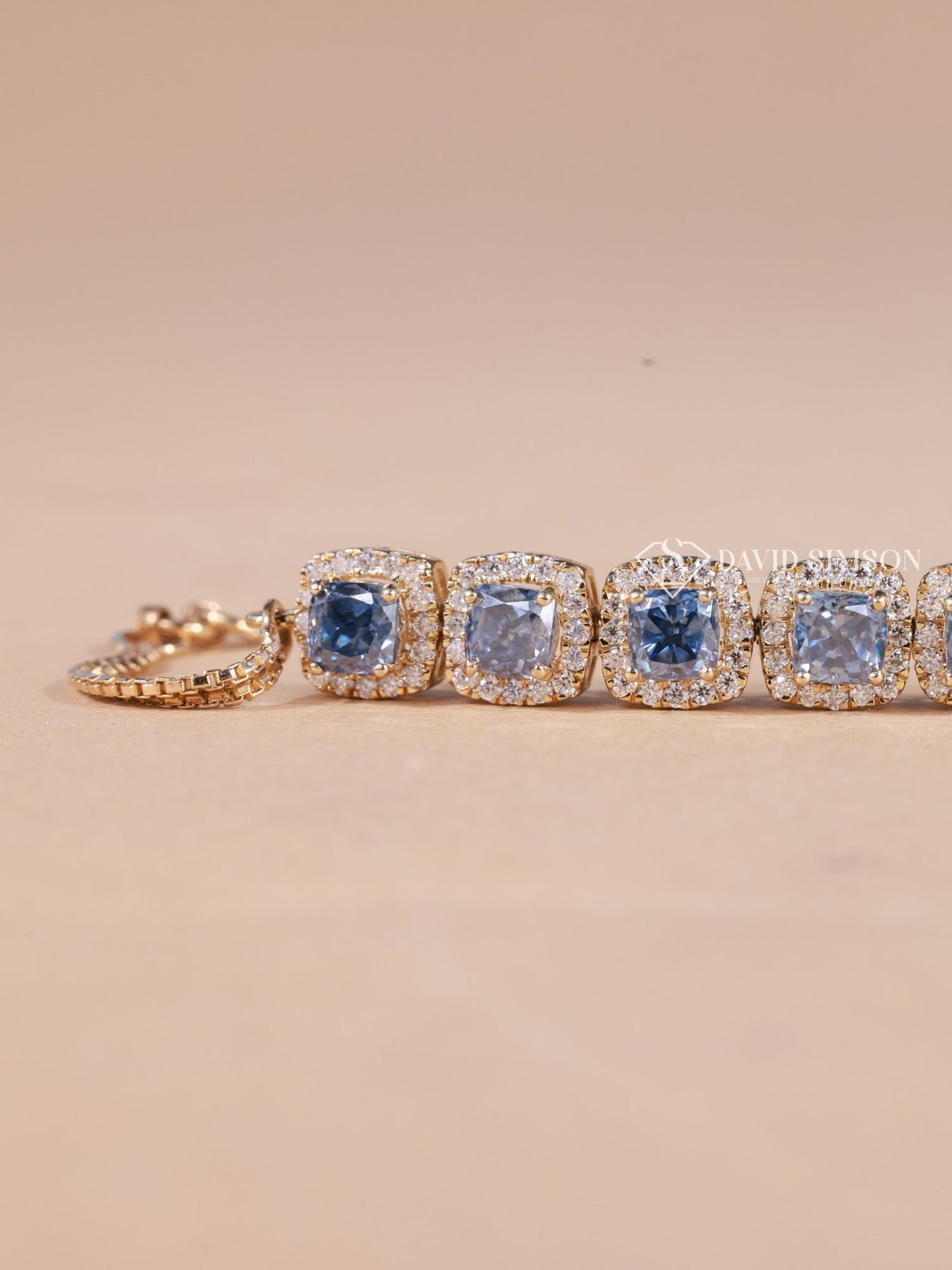 Blue Cushion Cut Moissanite Diamond Halo Bracelet for Women