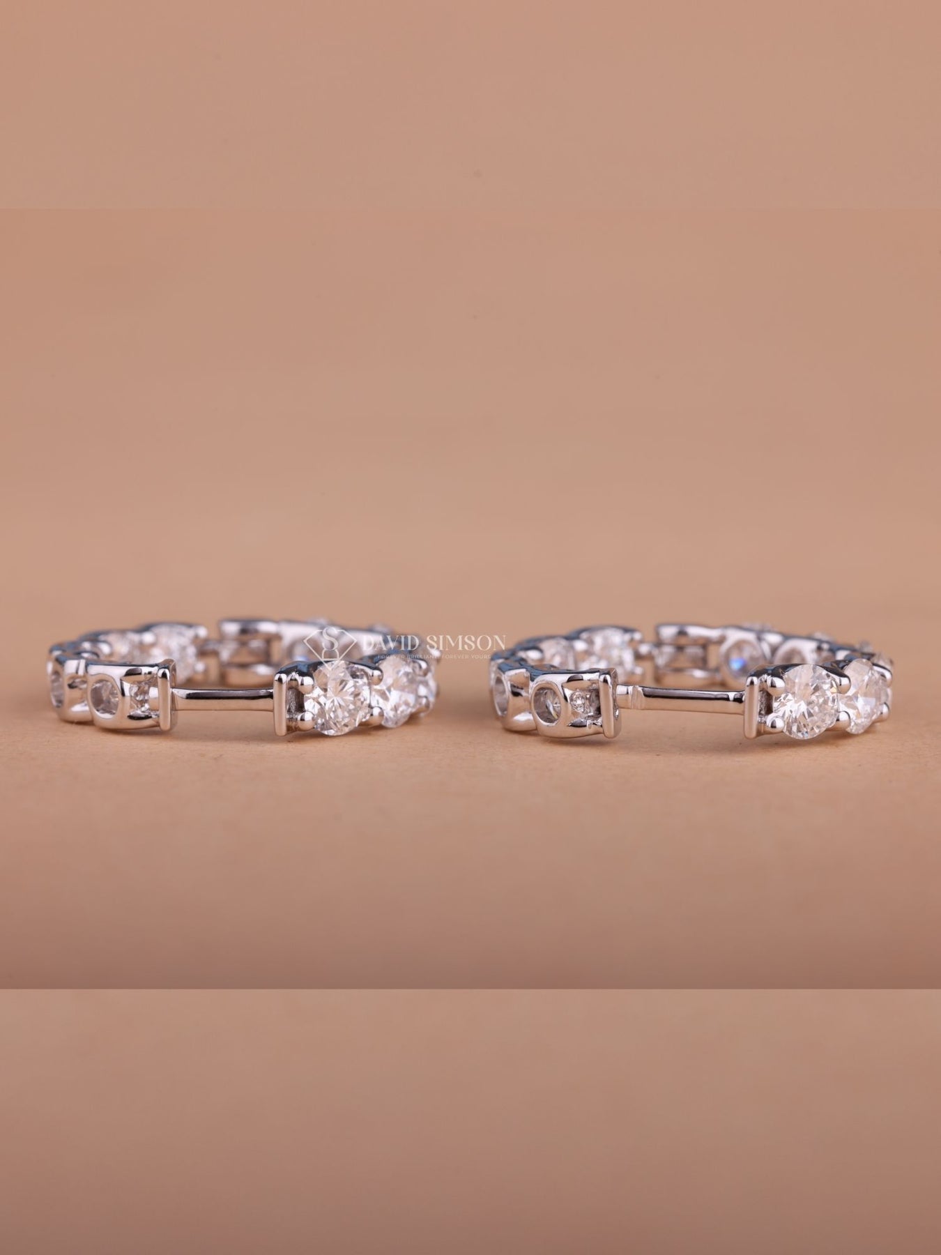 These Round Cut Moissanite Diamond Hoops Earrings for Women feature a stunning design that adds a touch of elegance to any outfit. Perfect for everyday wear or special occasions, these earrings showcase sparkling brilliance, making them an ideal accessory for those who appreciate timeless beauty and sophistication.