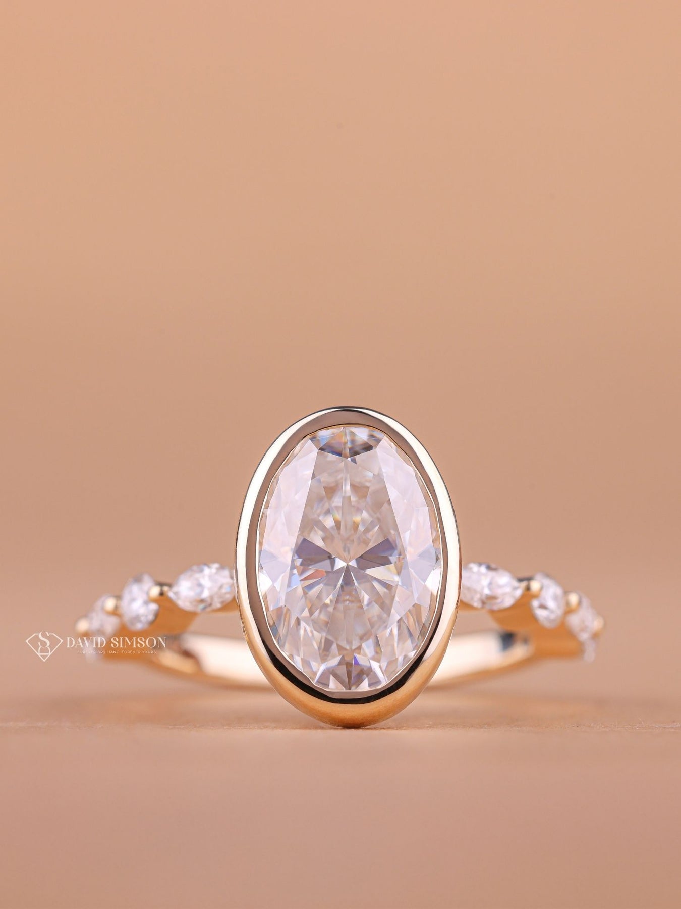 3.50CT-4.50CT Bezel Set Oval Cut Moissanite Pave Diamond Engagement Ring