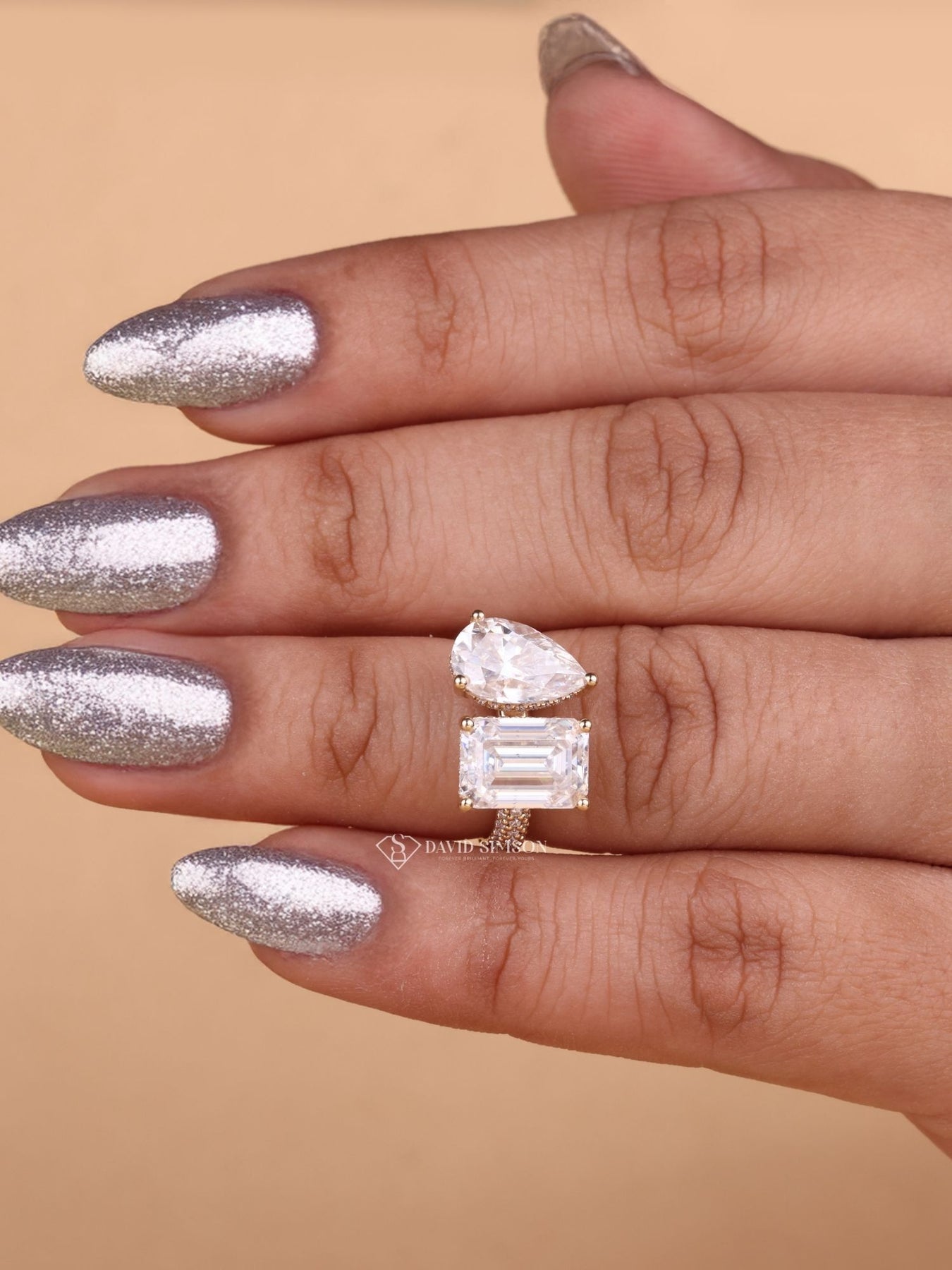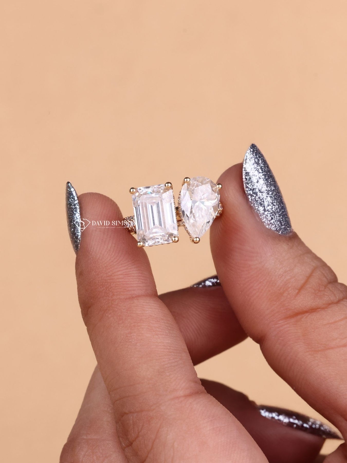 2.0CT Pear & 2.0CT Emerald Cut Moissanite Diamond Toi et Moi Engagement Ring