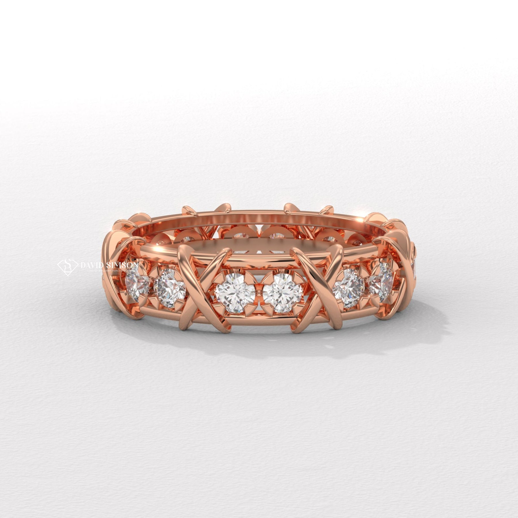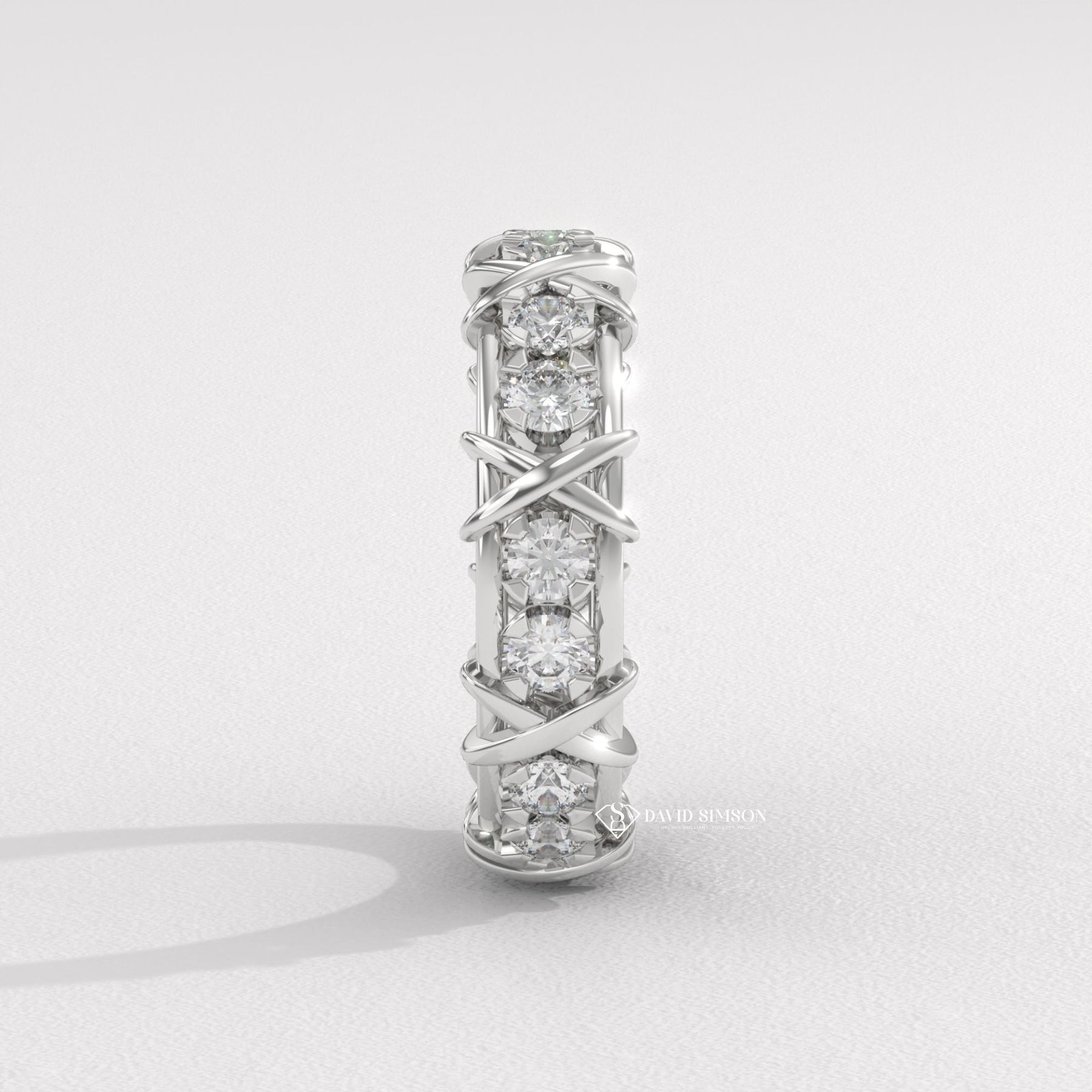 4.0mm Round Cut Moissanite Diamond Cross Style Wedding Band