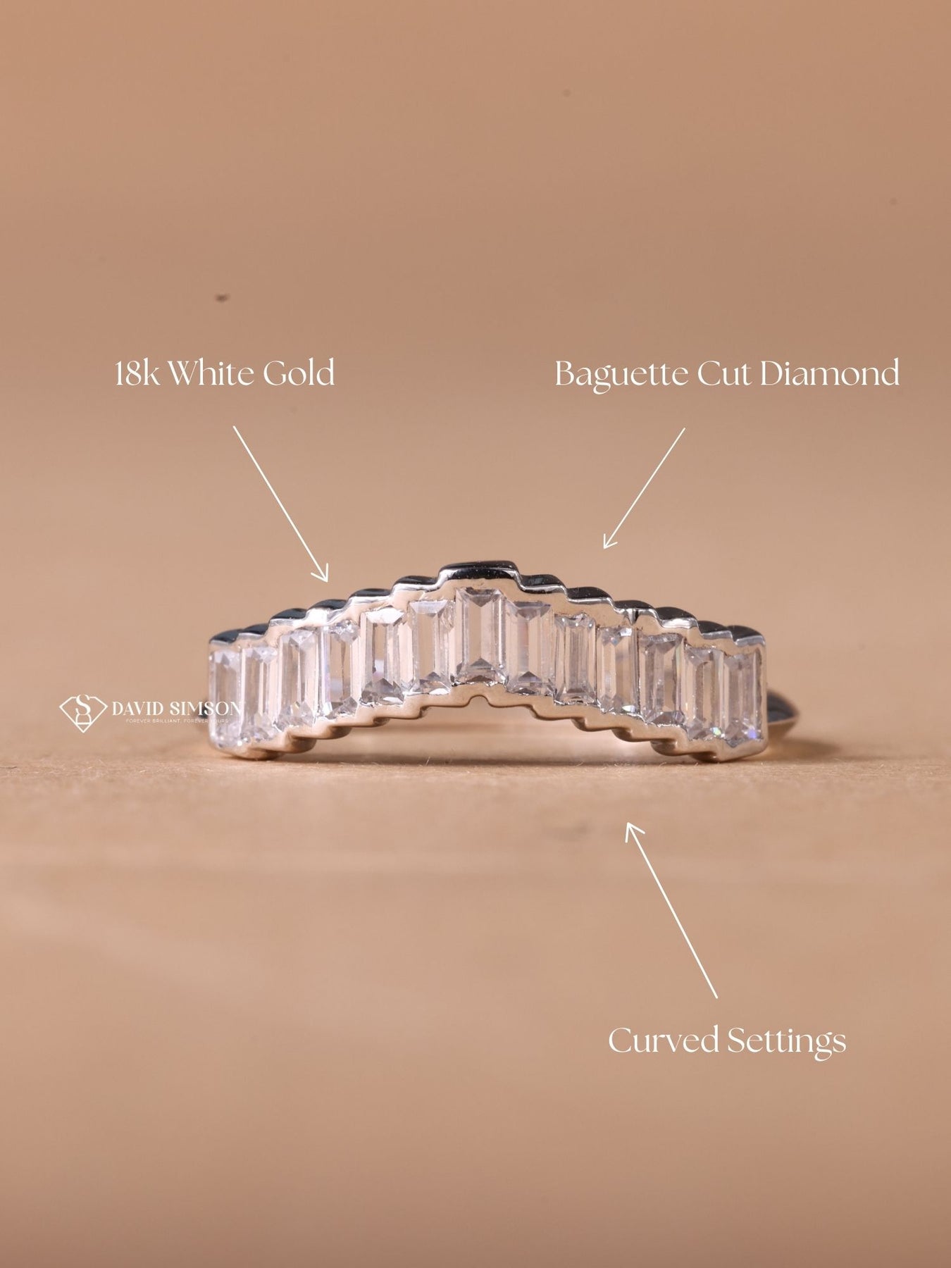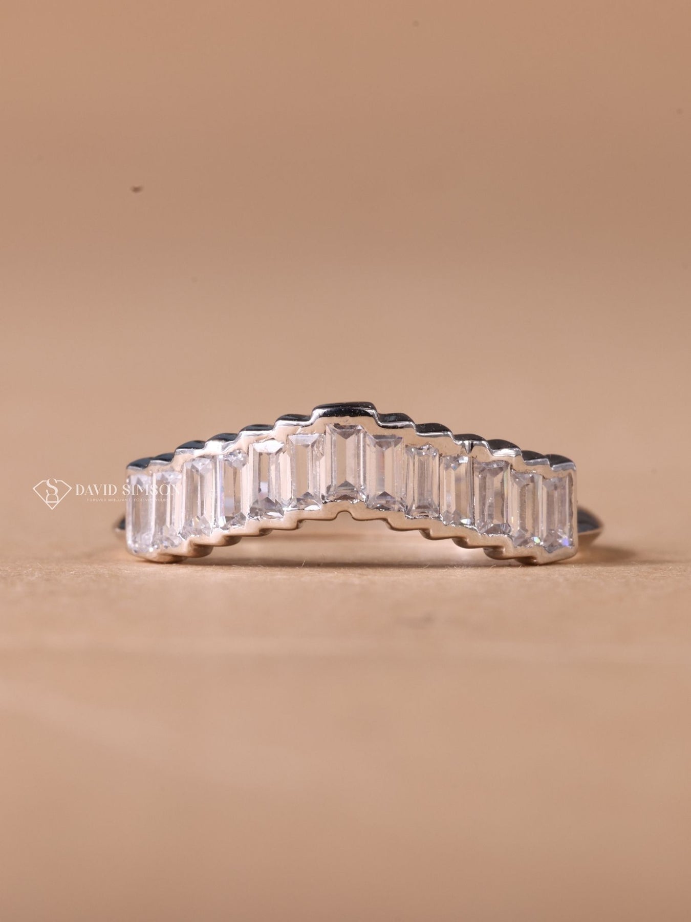 Baguette Cut Moissanite Diamond Unique Curved Wedding Band