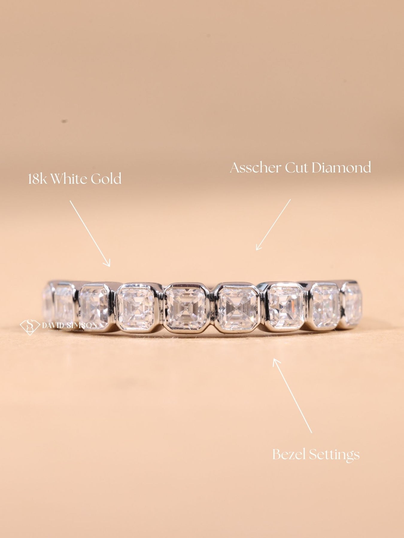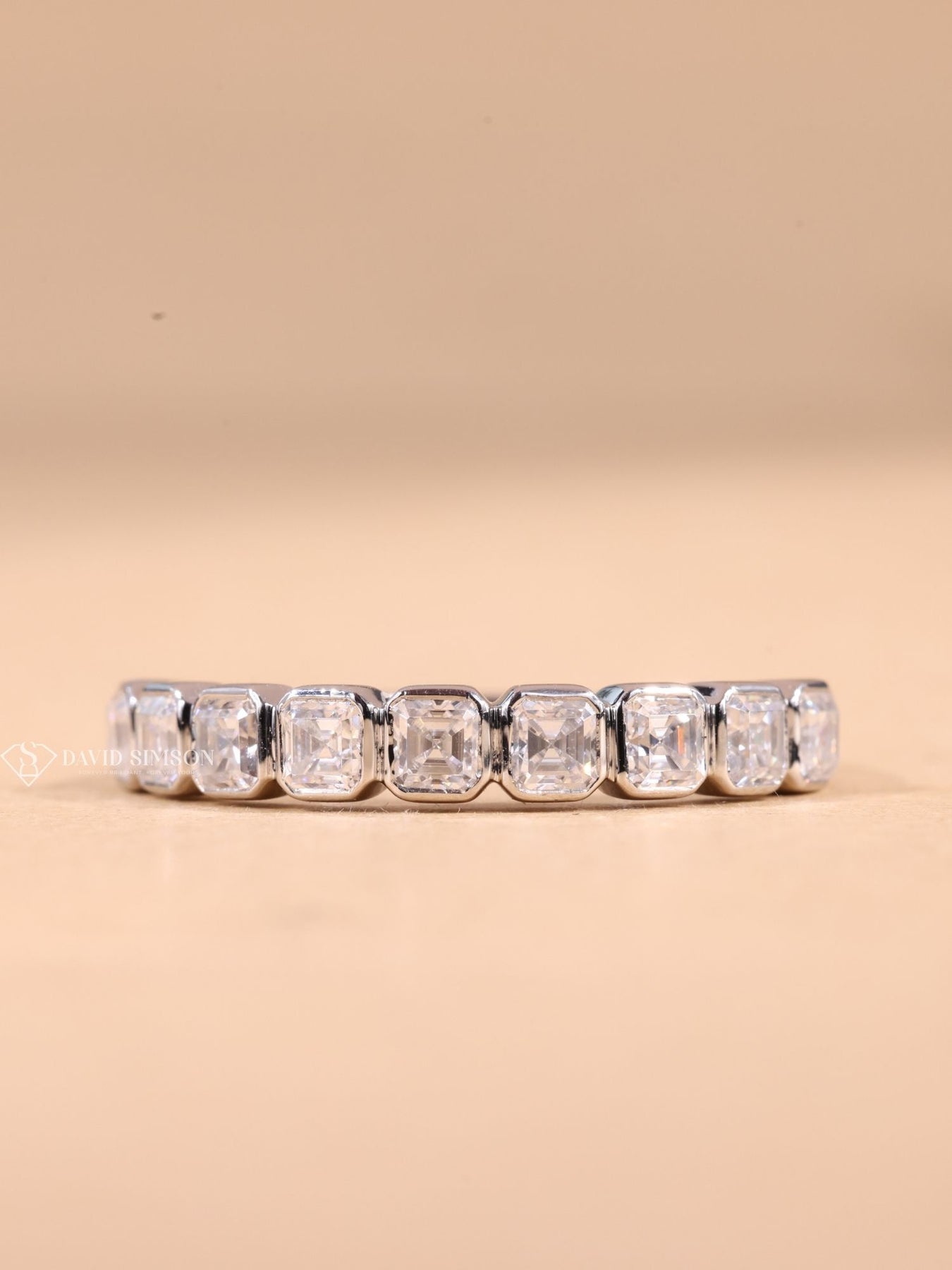 Bezel Set Asscher Cut Moissanite Diamond Half Eternity Wedding Band