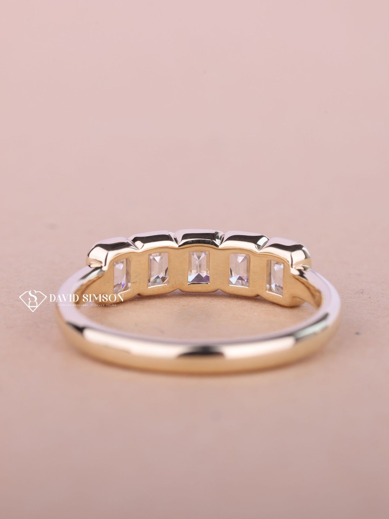 Bezel Set Emerald Cut Moissanite Diamond Five Stone Wedding Band