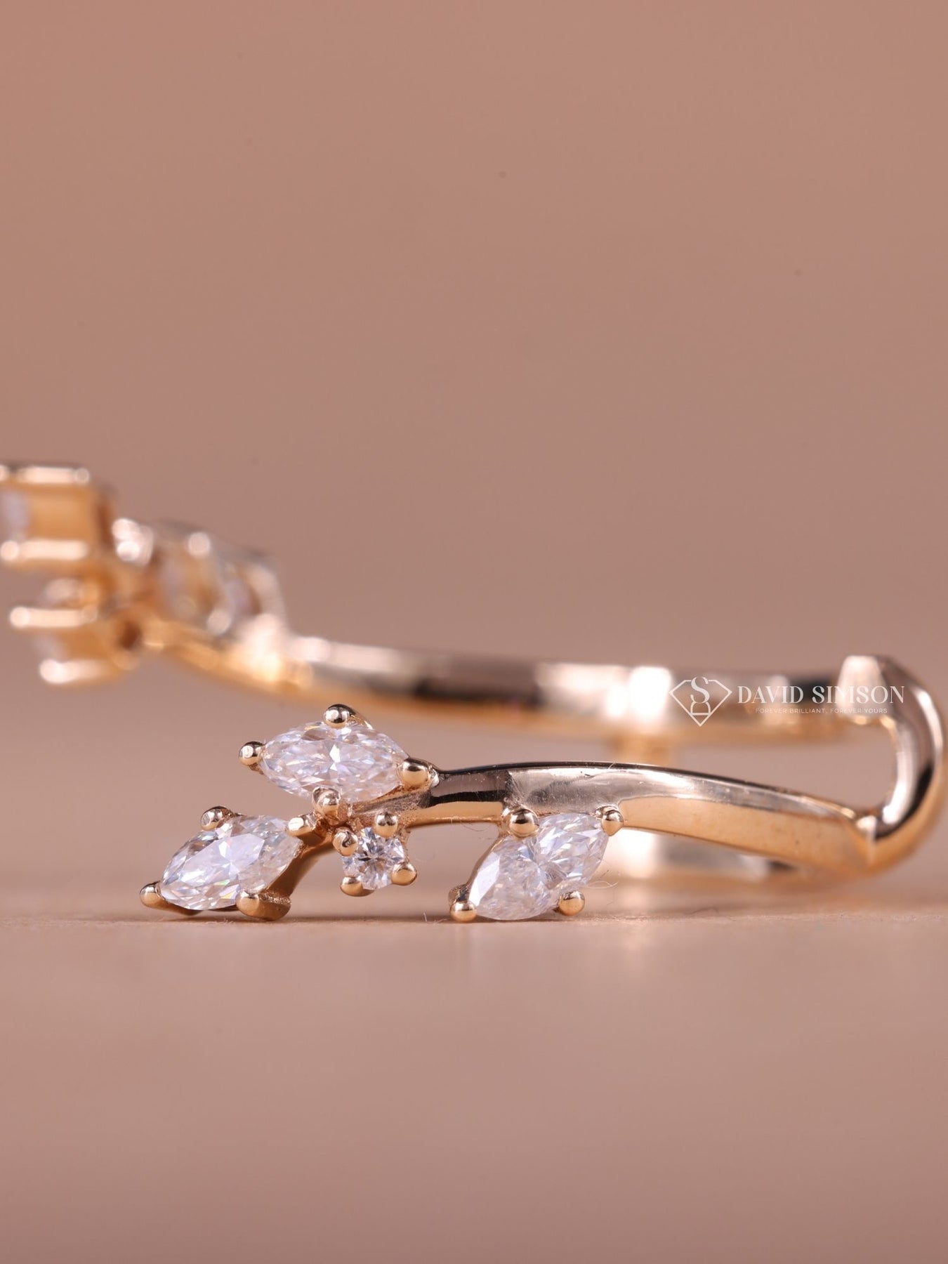 This nature-inspired wedding band features open round and marquise cut moissanite diamonds, creating a unique and elegant design. Perfect to pair with an engagement ring simple or engagement ring gold, it enhances any engagement ring stack with beautiful diamond rings designs for diamond rings for women seeking stylish diamond rings engagement and versatile diamond rings stack options.
