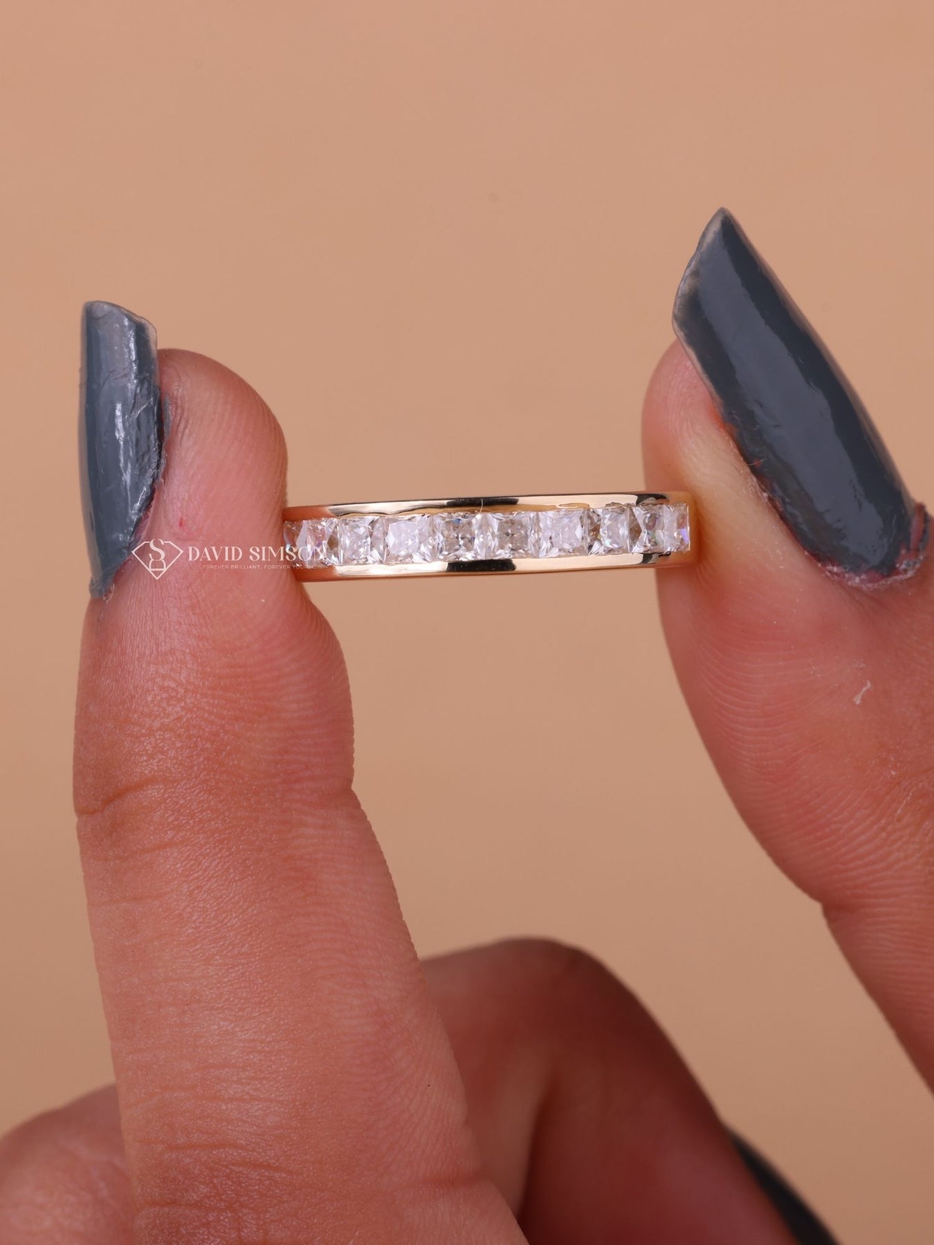 Princess Cut Moissanite Diamond Half Eternity Flush Set Wedding Band